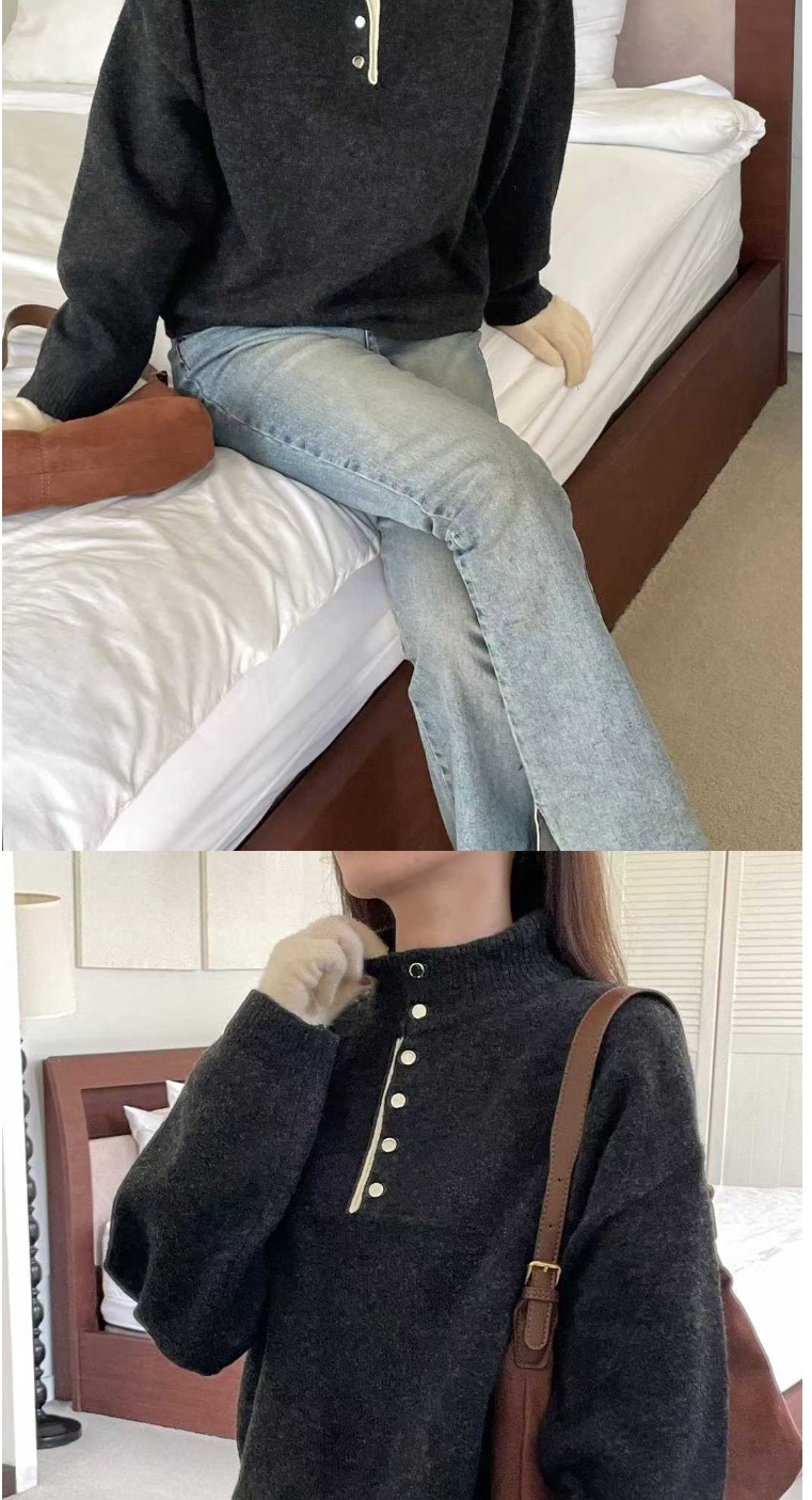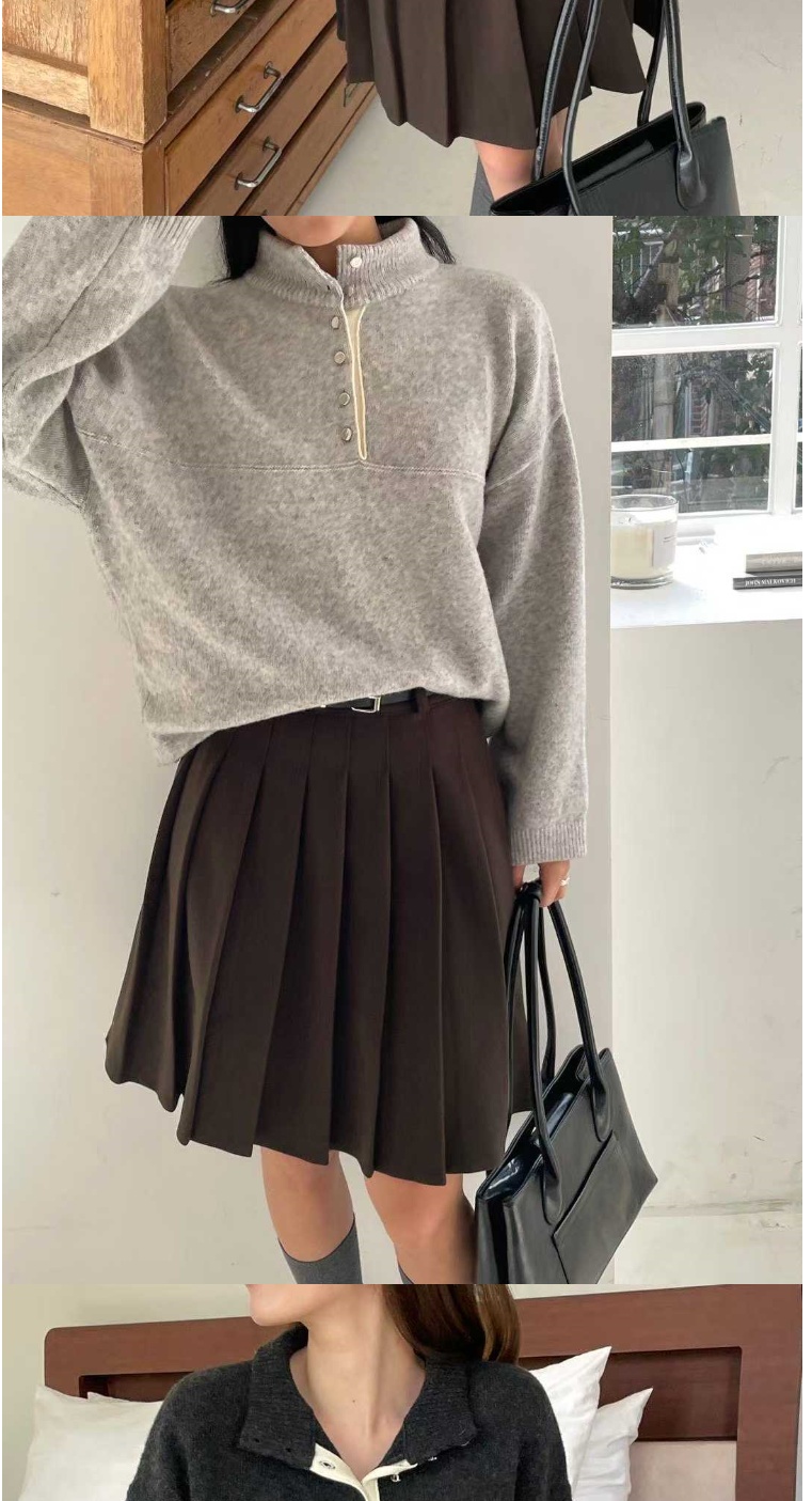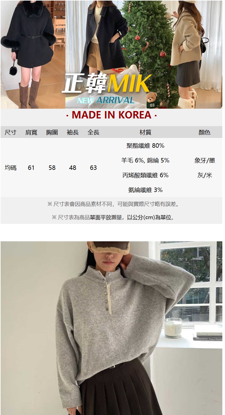 正韓針織上衣 翻領羊毛長袖針織衫WHN1011-創翊韓都
