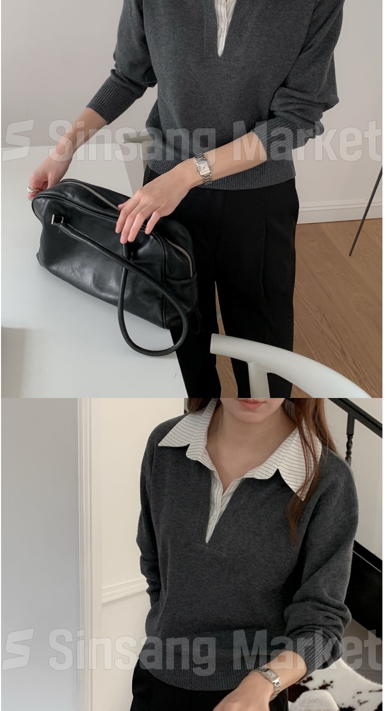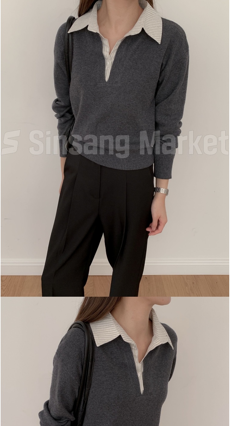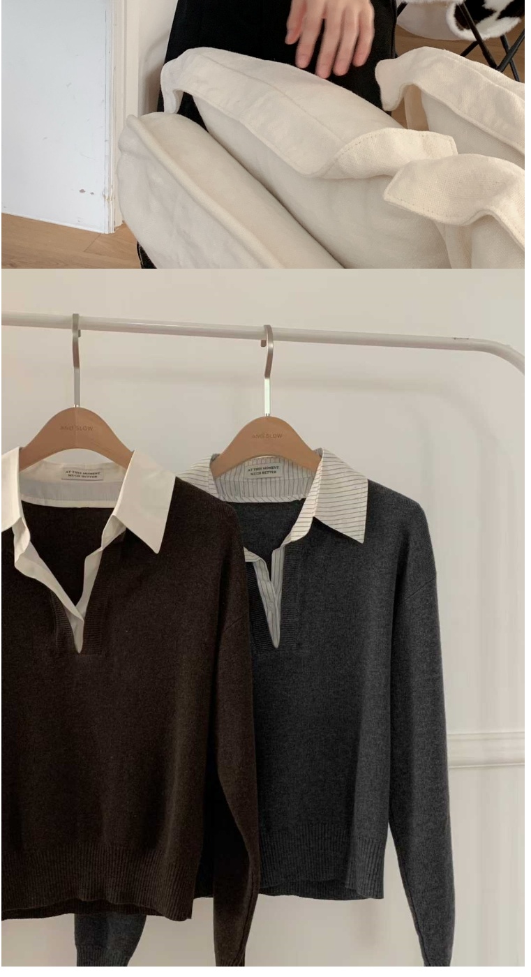 正韓女上衣 假兩件長袖針織衫ATM1104-創翊韓都