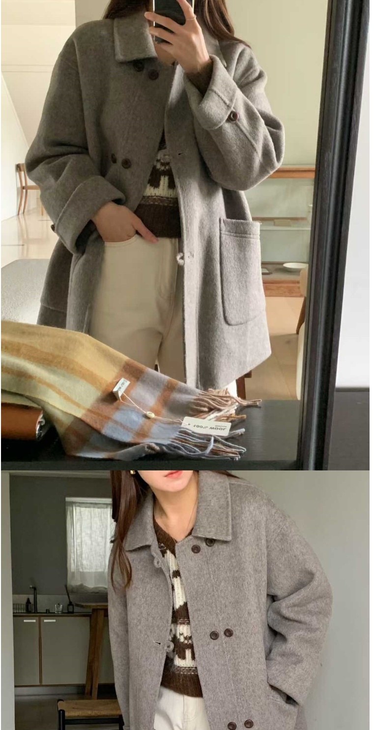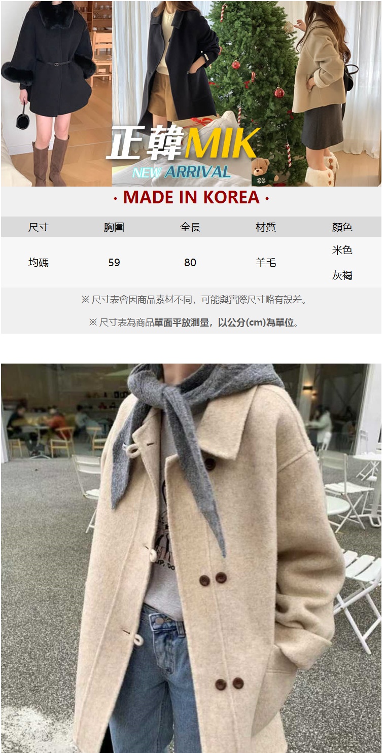 正韓外套 雙扣手工羊毛呢大衣ATM1111-創翊韓都