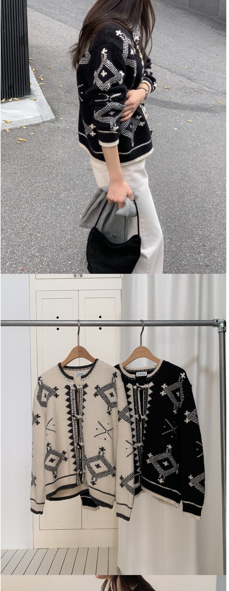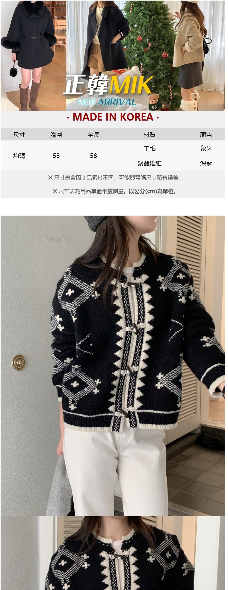 正韓罩衫 幾何羊毛衣外套ATM1126-創翊韓都