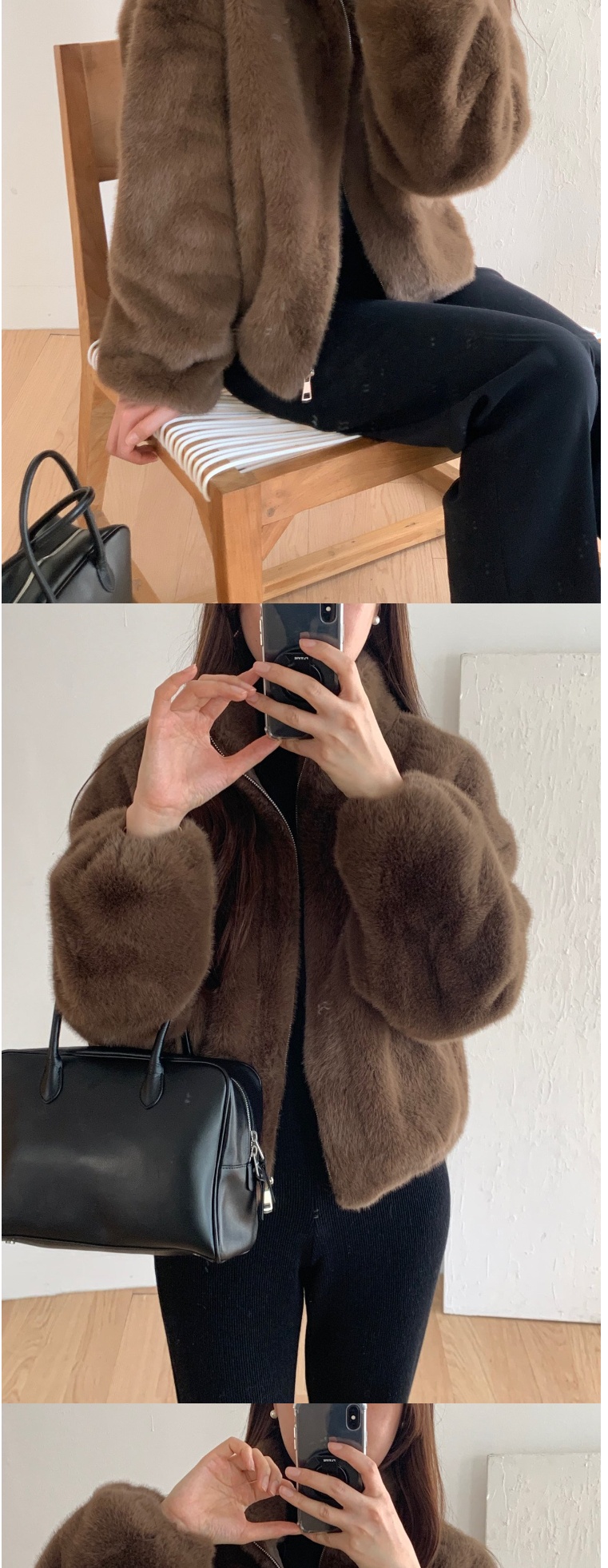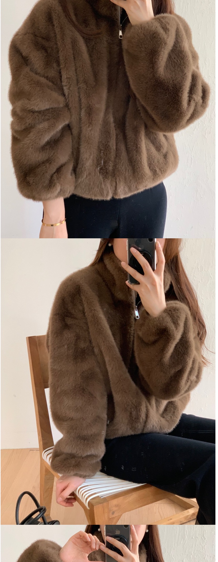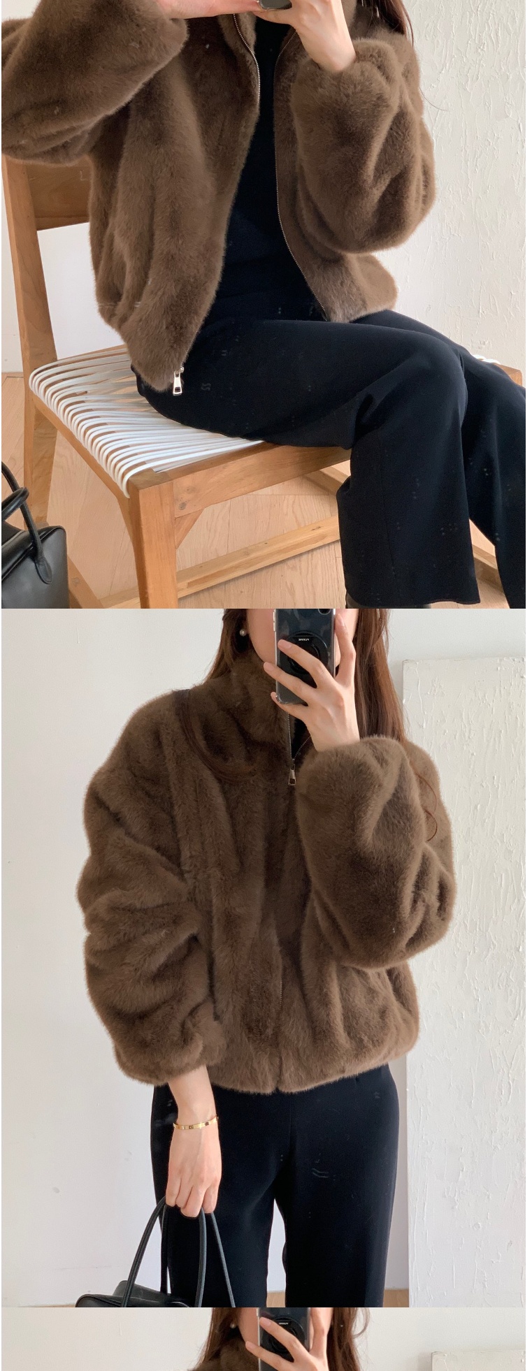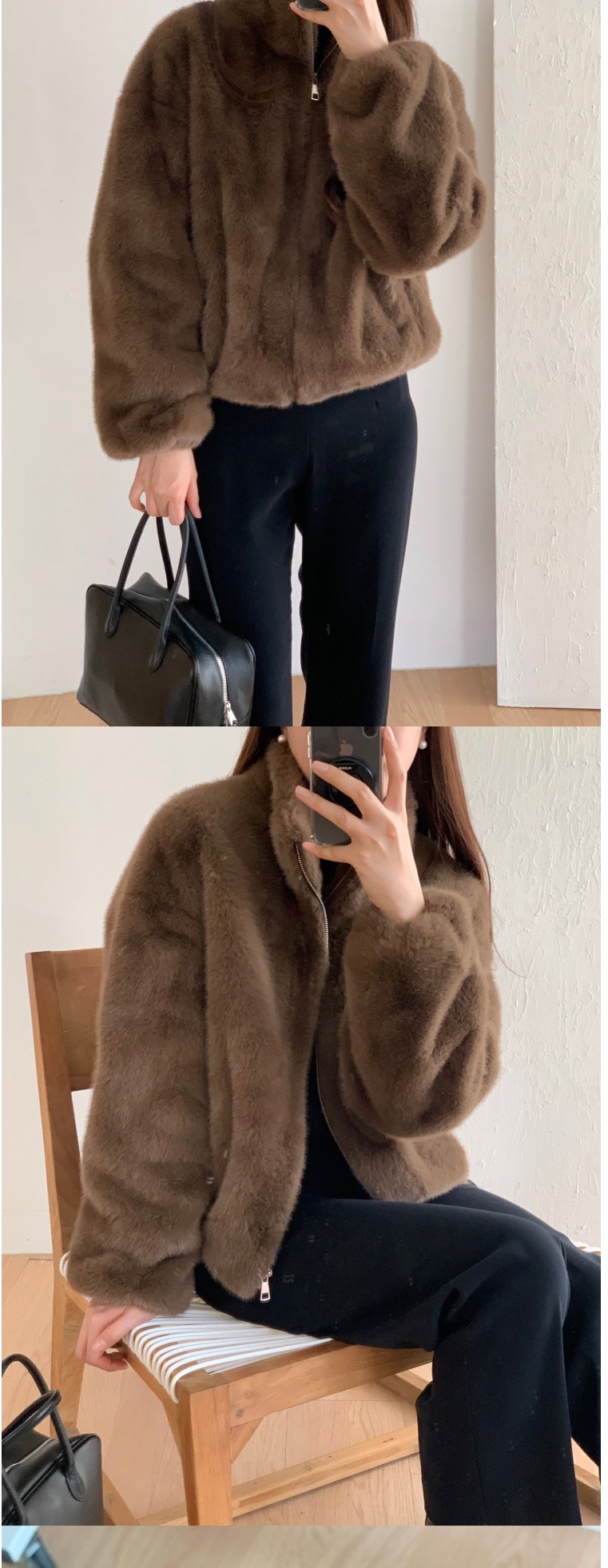 正韓外套 水貂皮羊毛呢夾克大衣ATM1131-創翊韓都