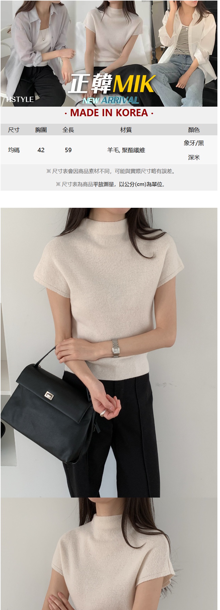正韓女上衣 喀什米爾羊毛短袖針織衫ATM1163-創翊韓都