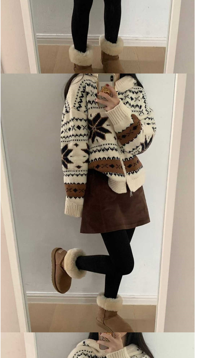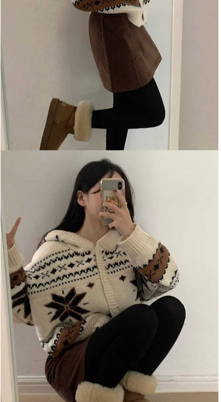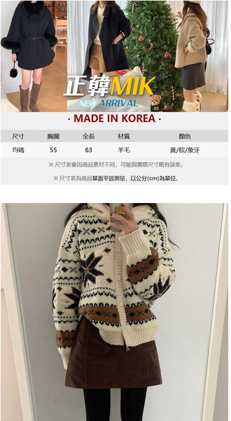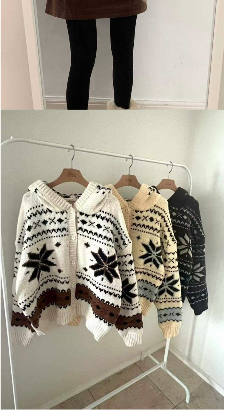正韓罩衫 雪花連帽羊毛衣外套BNF1008-創翊韓都