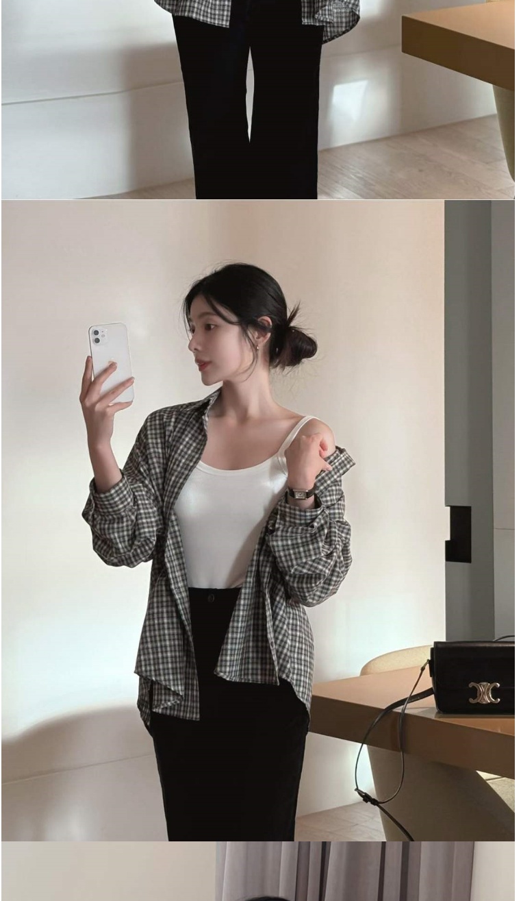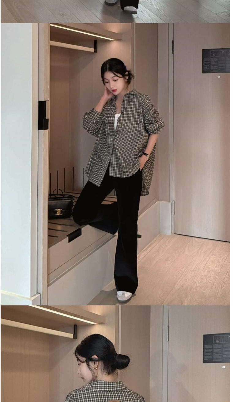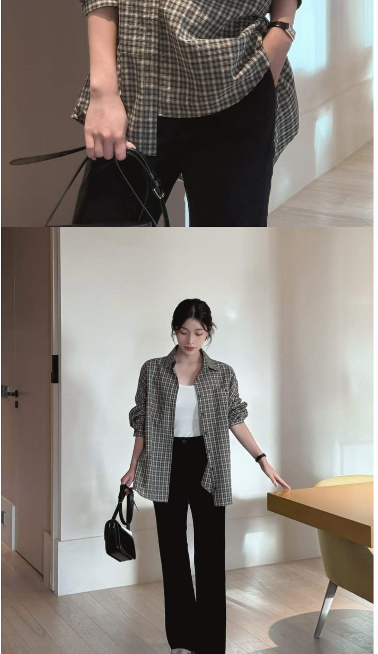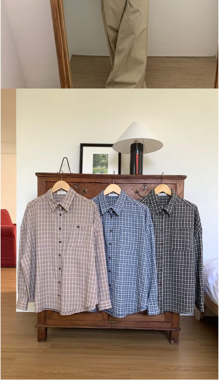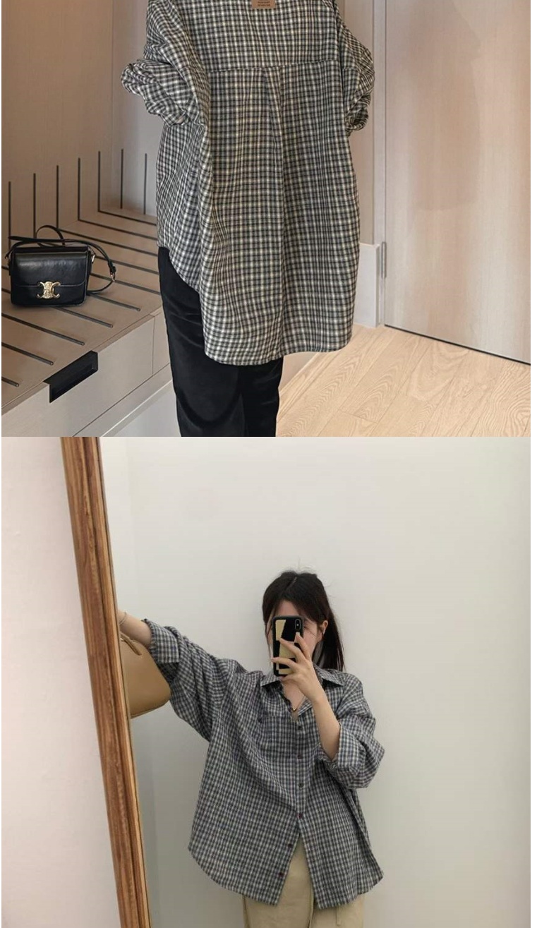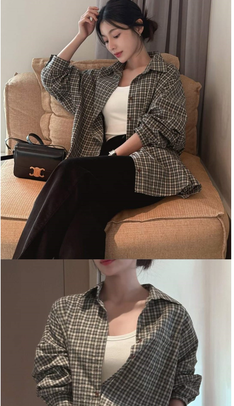 正韓女上衣 男友格紋長袖襯衫CPC1082-創翊韓都