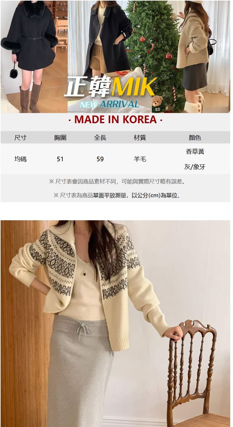 正韓罩衫 雪花羊毛衣夾克外套CPC1088-創翊韓都