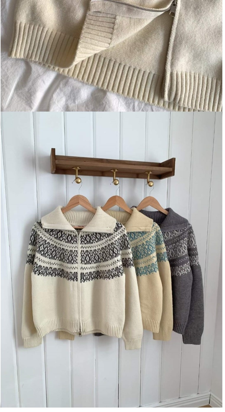 正韓針織夾克 口袋拉鏈針織外套BBO1028-創翊韓都