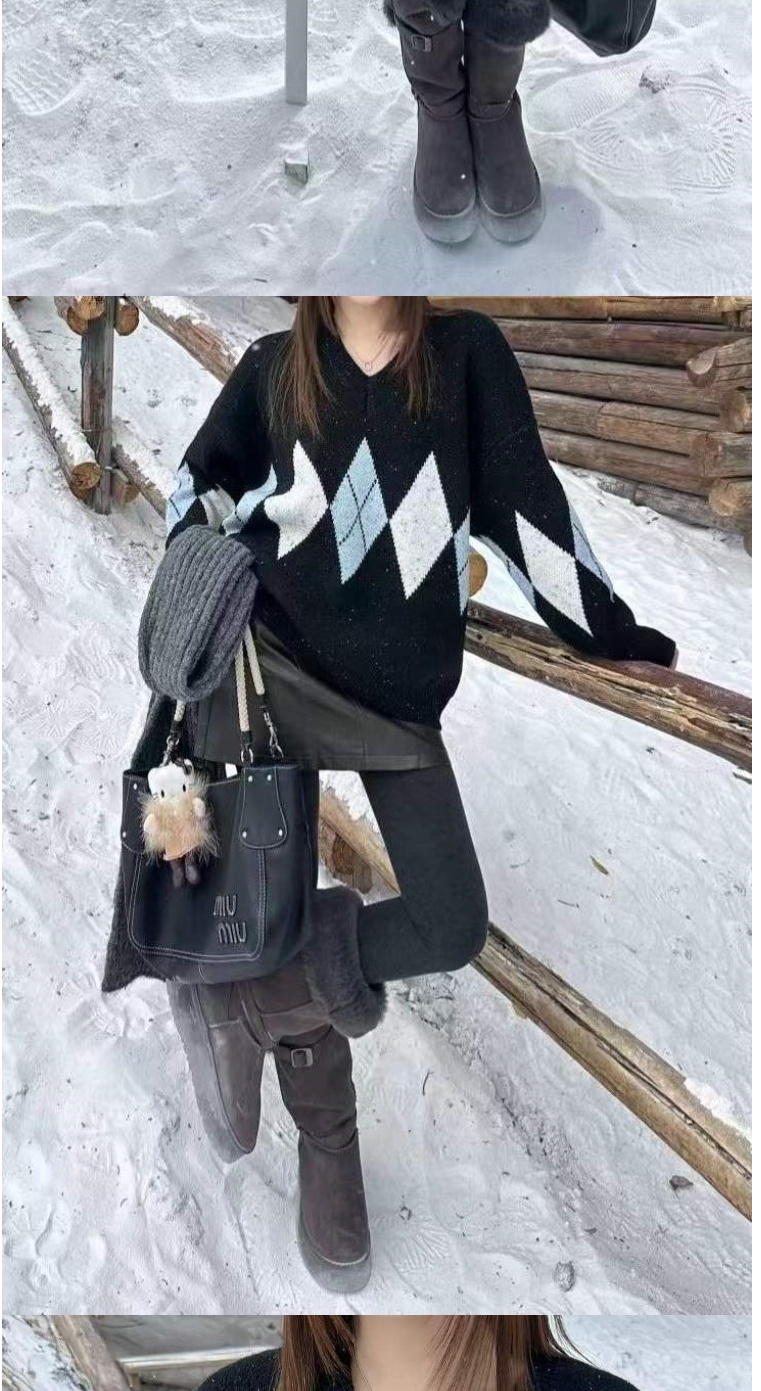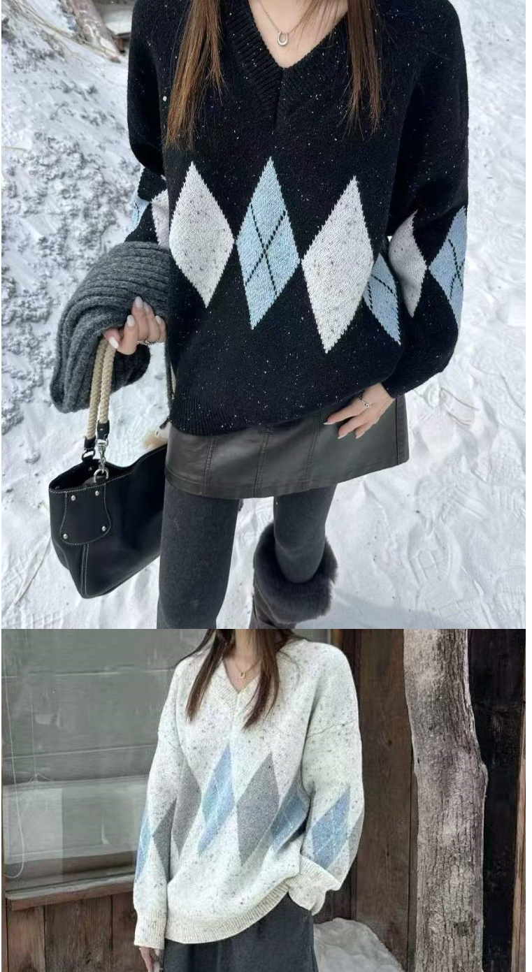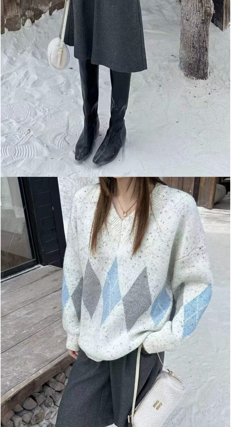 正韓女上衣 摩天岩格紋長袖羊毛衣CPC1092-創翊韓都