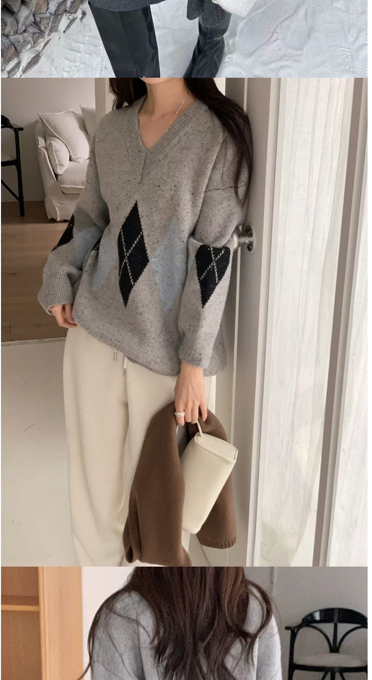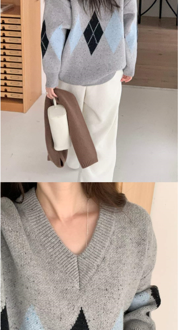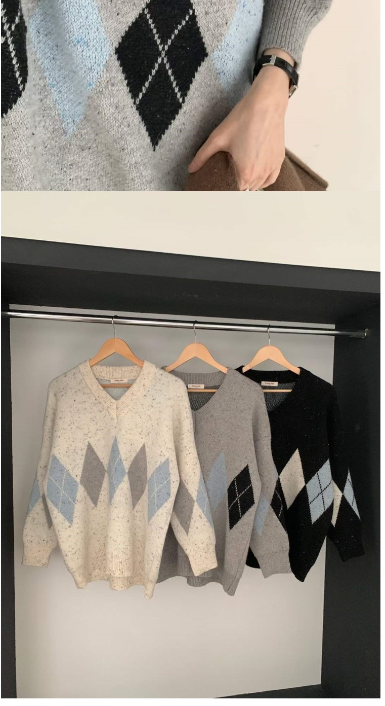正韓女上衣 摩天岩格紋長袖羊毛衣CPC1092-創翊韓都