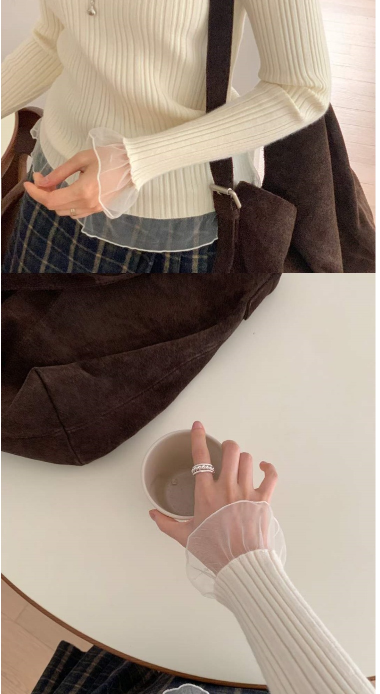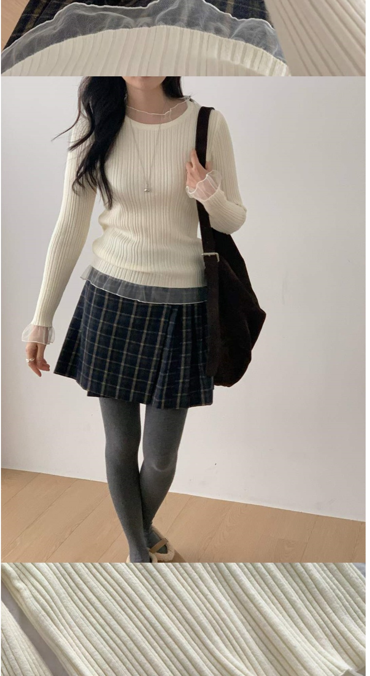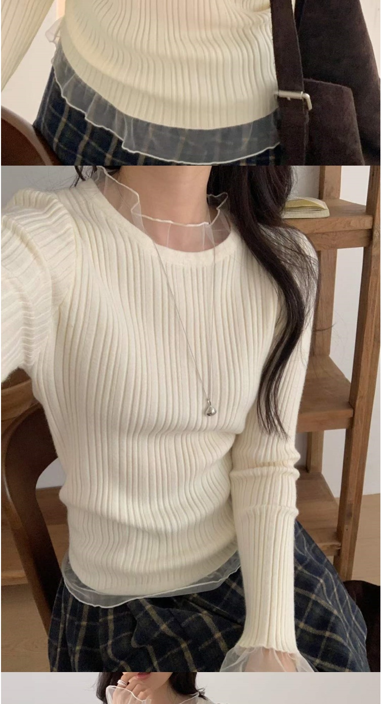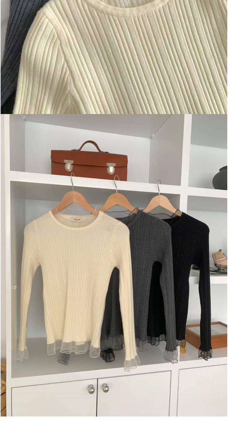 正韓女上衣 蕾絲羅紋長袖針織衫CPC1093-創翊韓都現貨