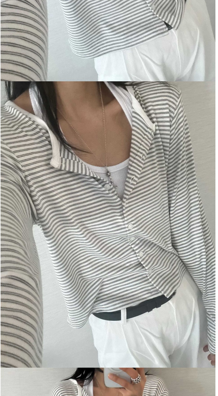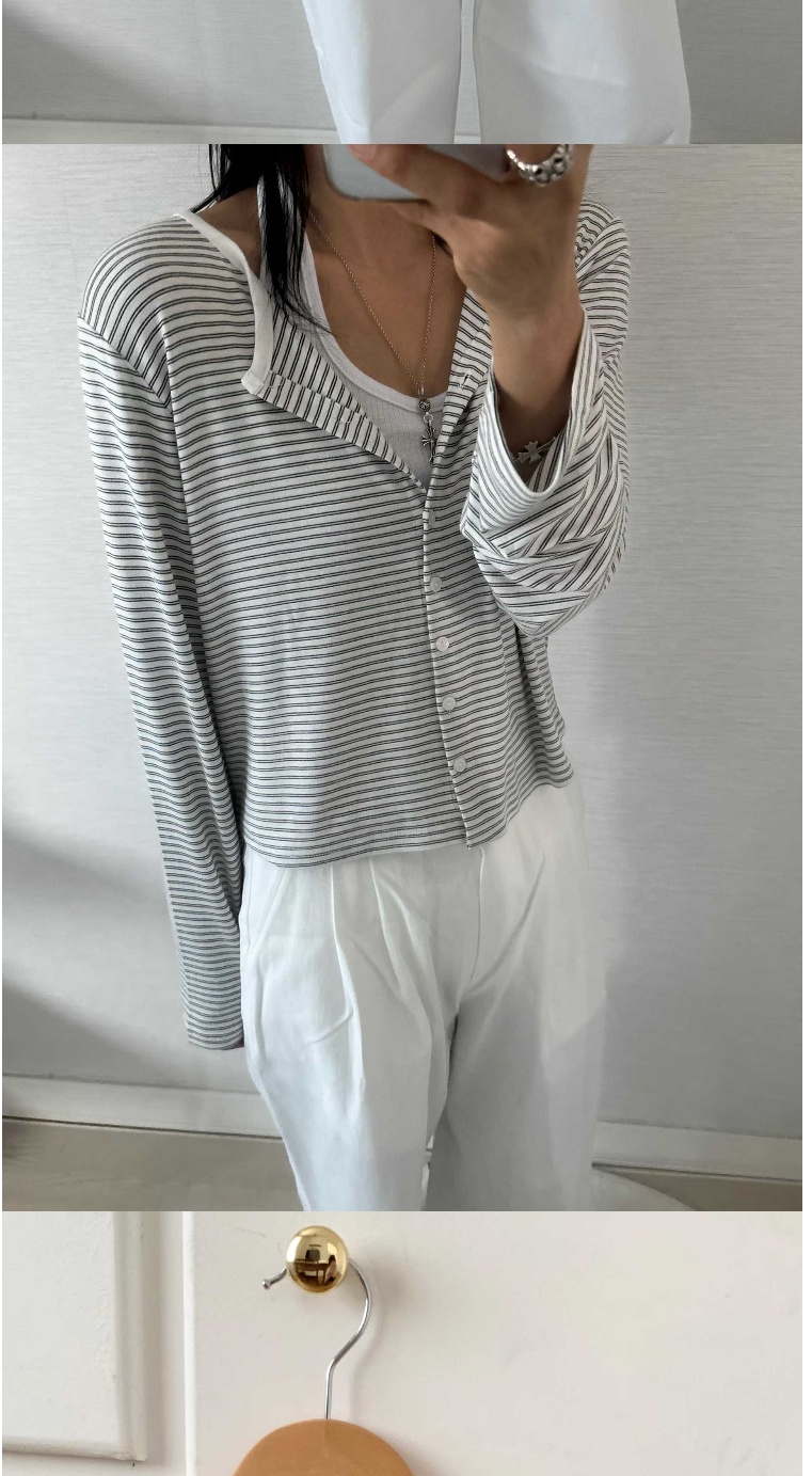 正韓罩衫 條紋針織短款外套CPC1094-創翊韓都