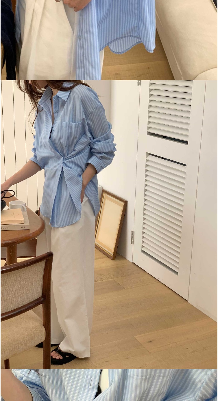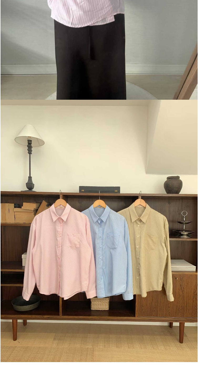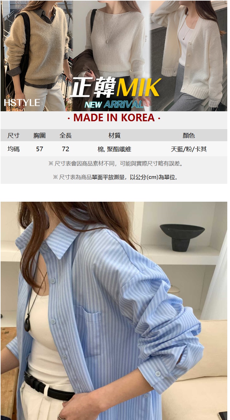 正韓女上衣 貝利條紋長袖襯衫CPC1096-創翊韓都