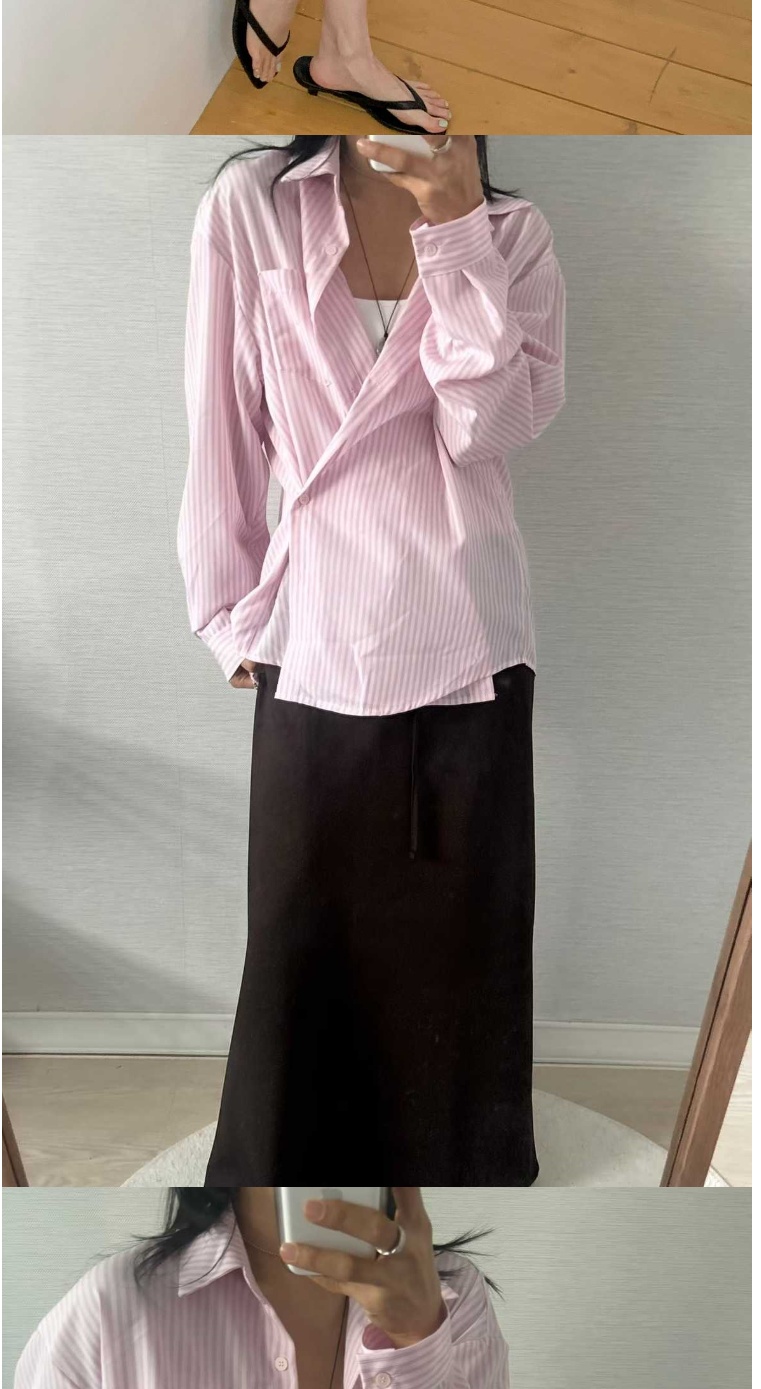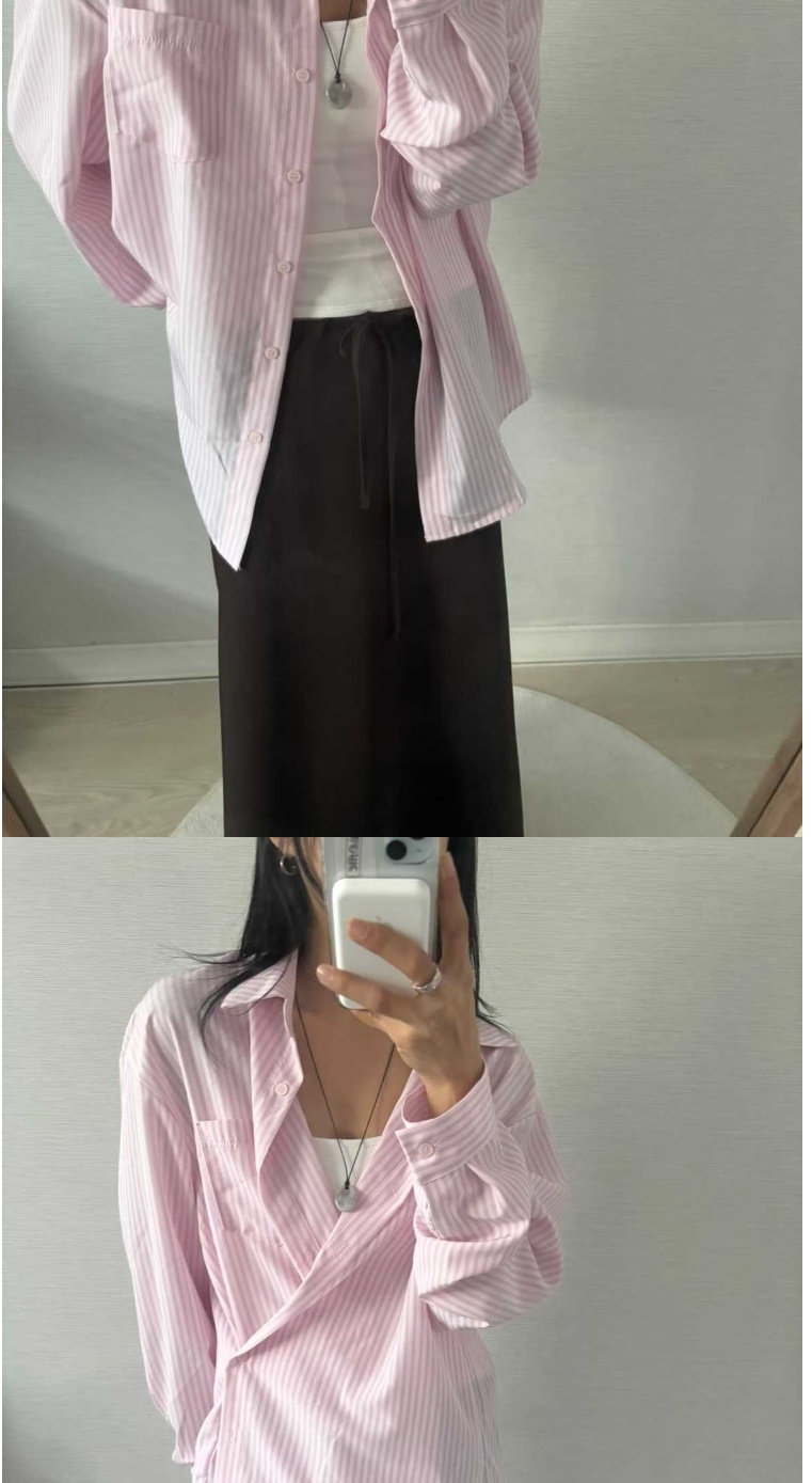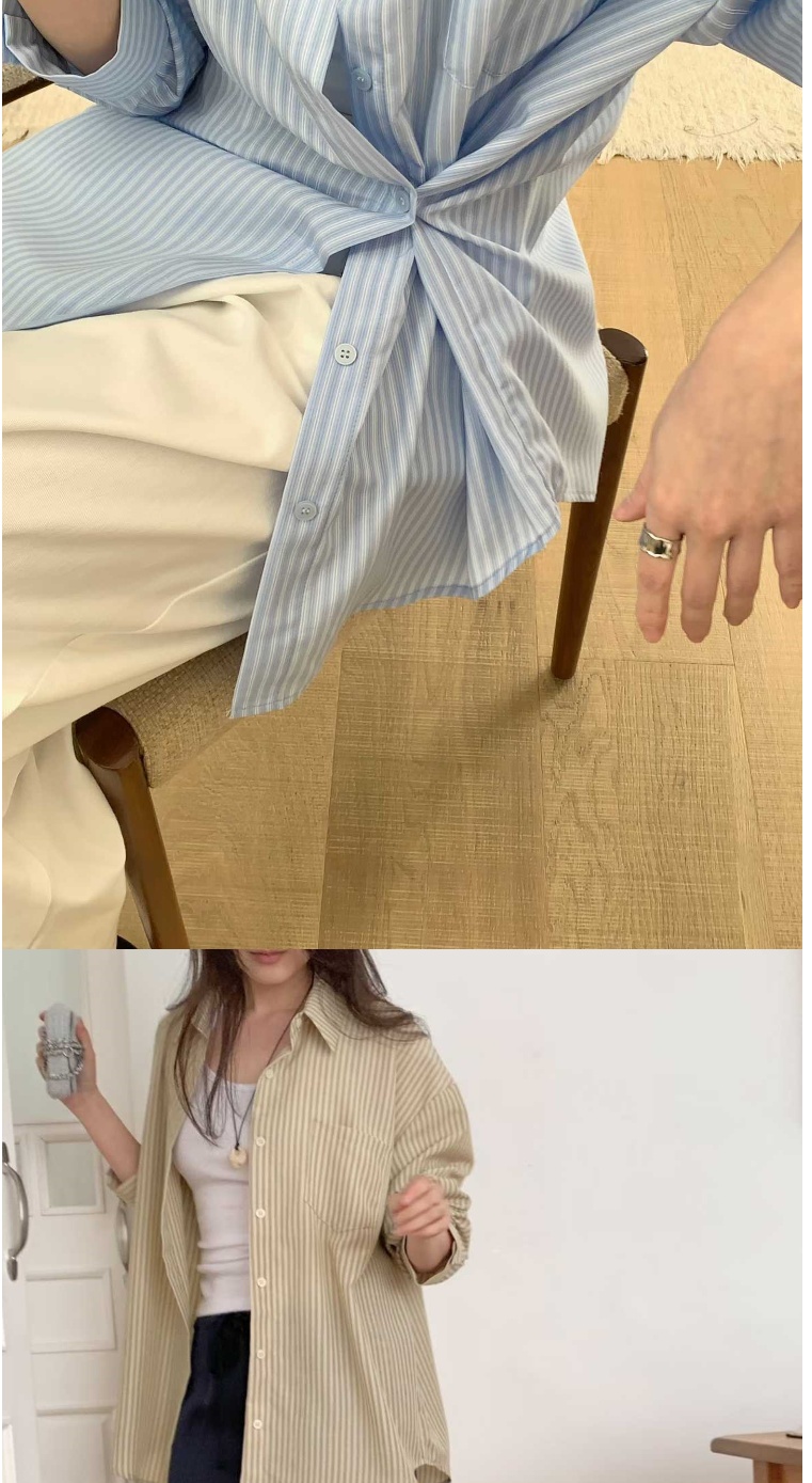 正韓女上衣 貝利條紋長袖襯衫CPC1096-創翊韓都