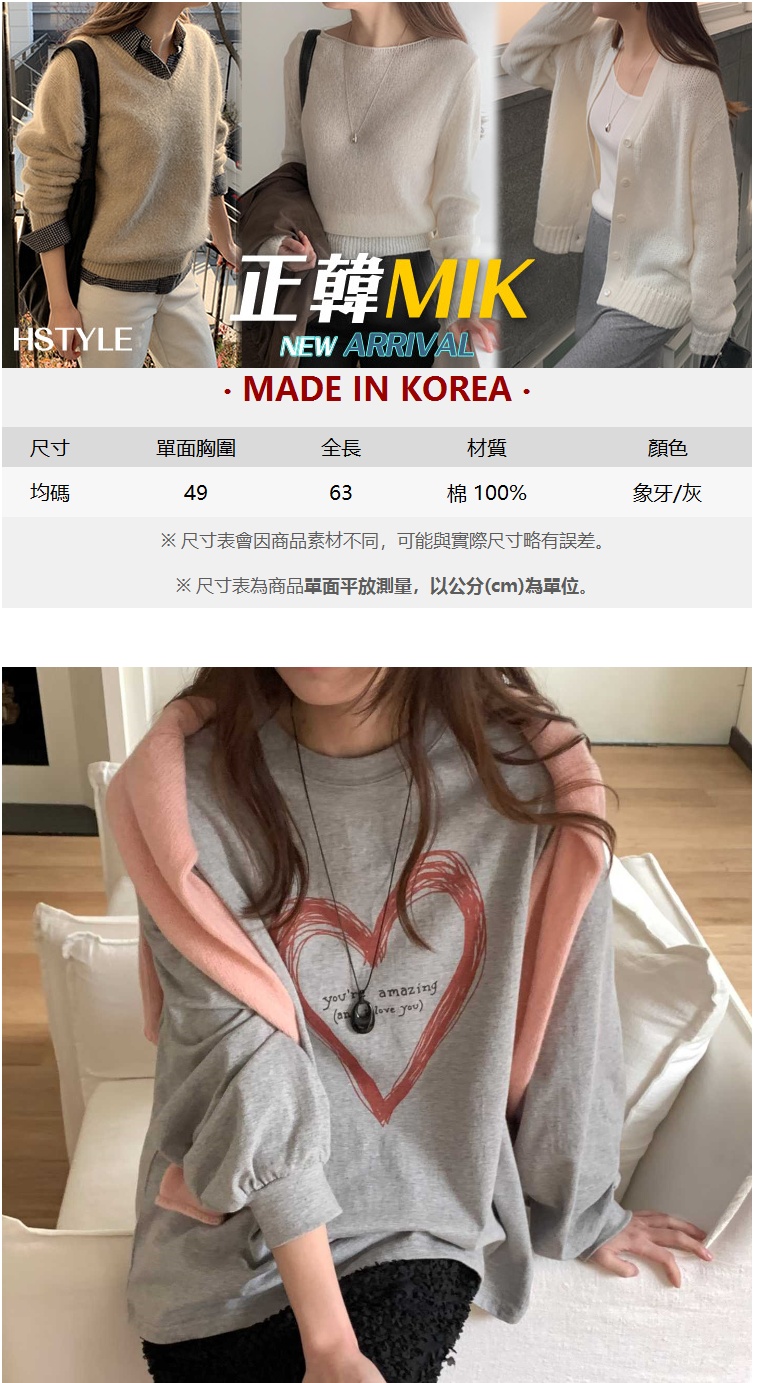 正韓女上衣 心形長袖T恤CPC1098-創翊韓都