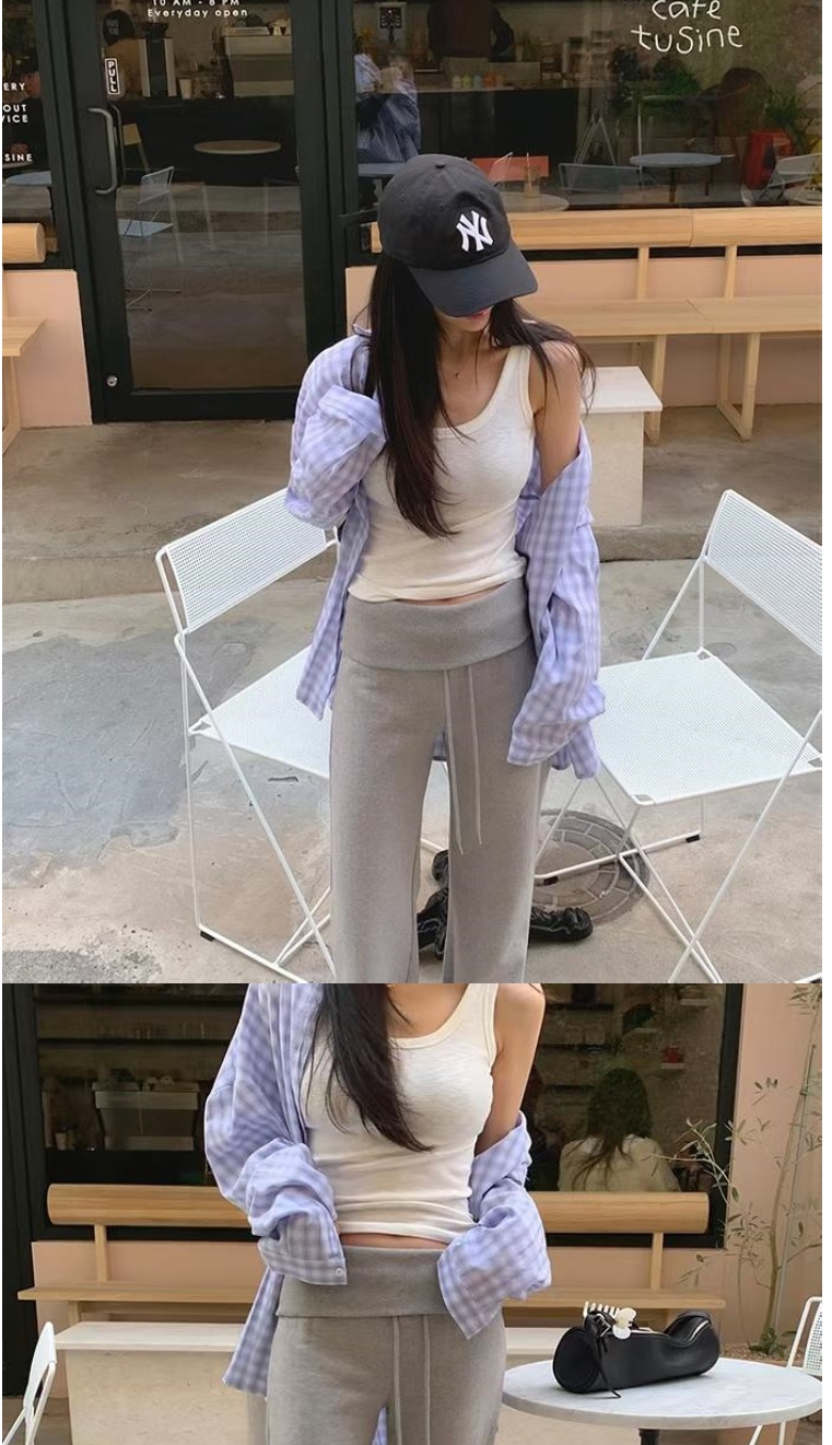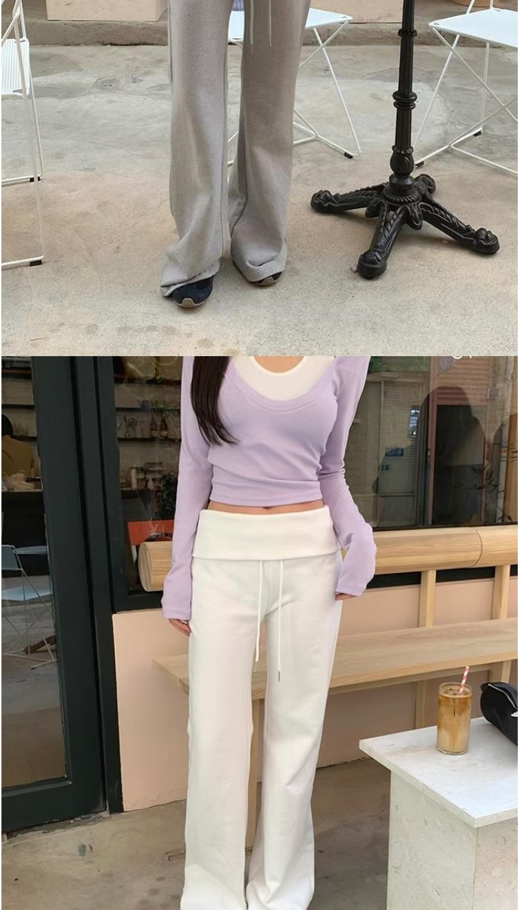 正韓運動褲 捲邊運動喇叭長褲CPC1100-創翊韓都