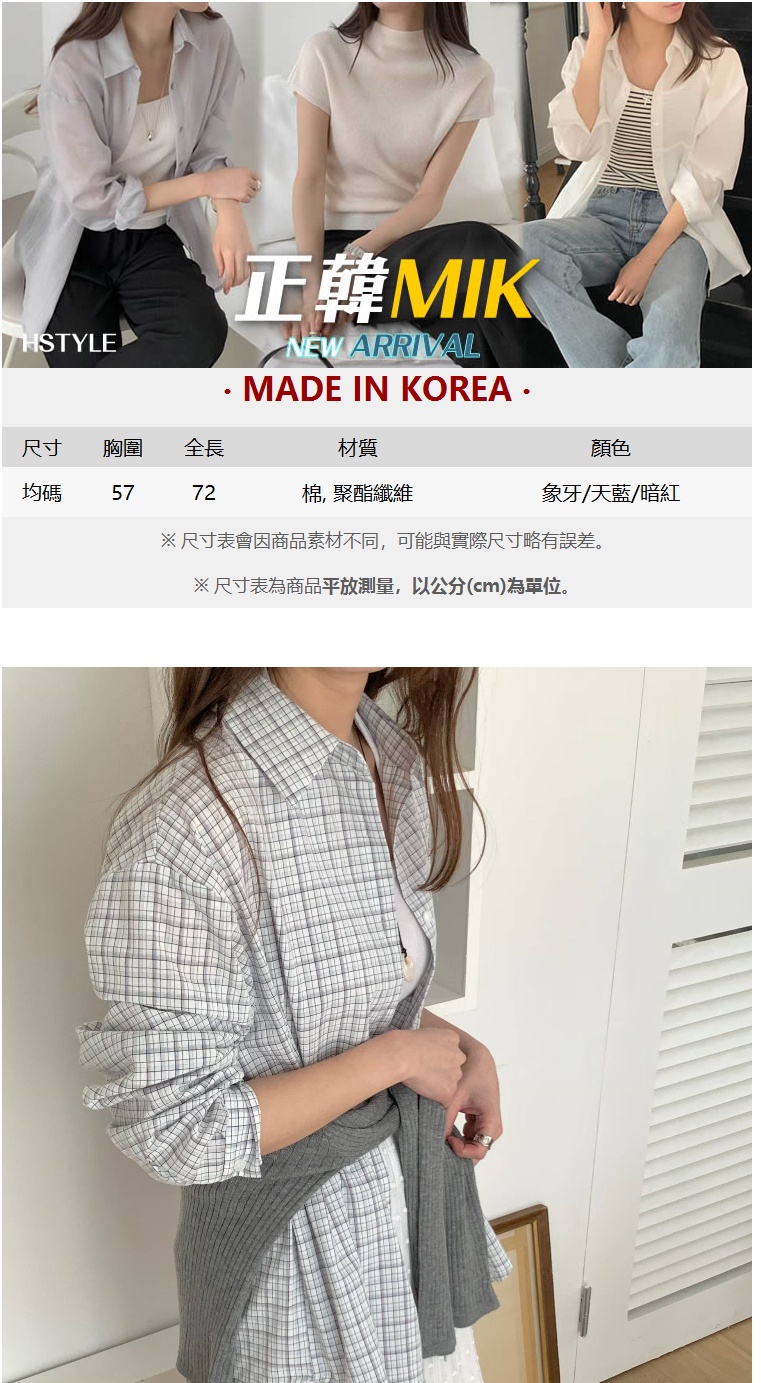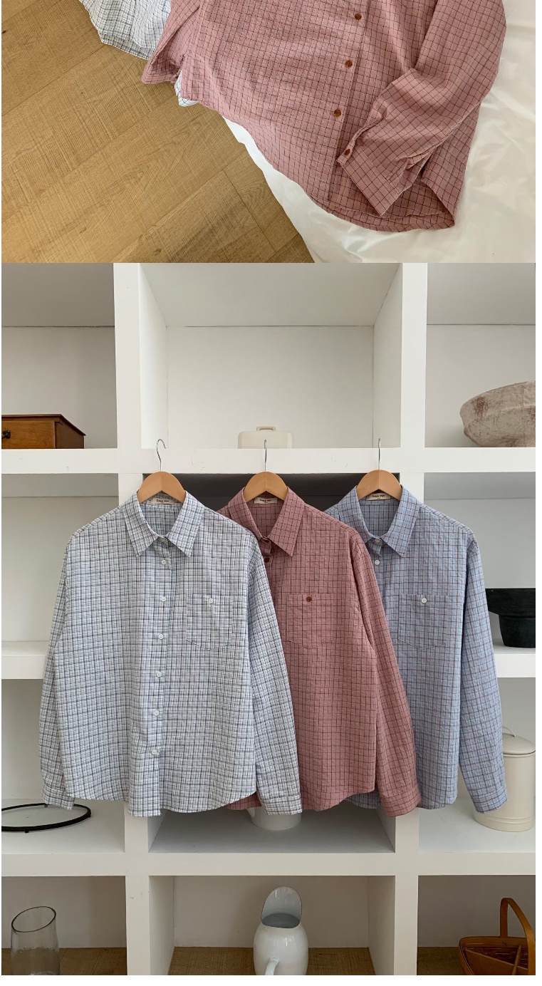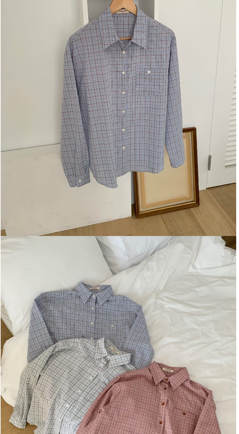 正韓女上衣 雪酪格紋長袖襯衫CPC1101-創翊韓都