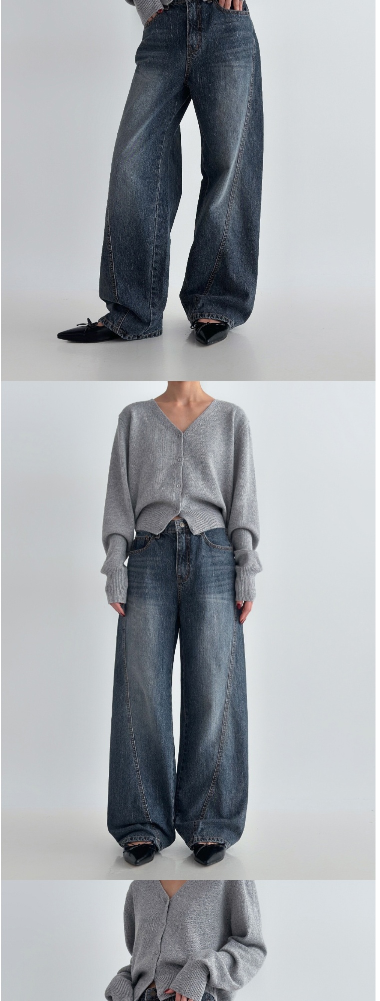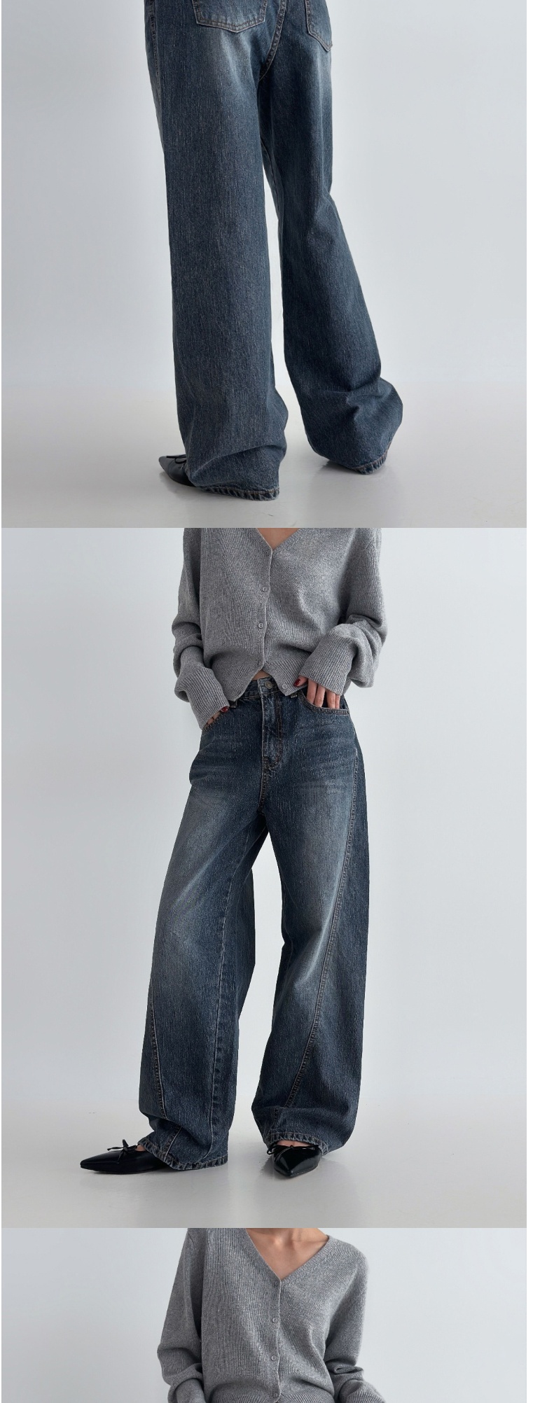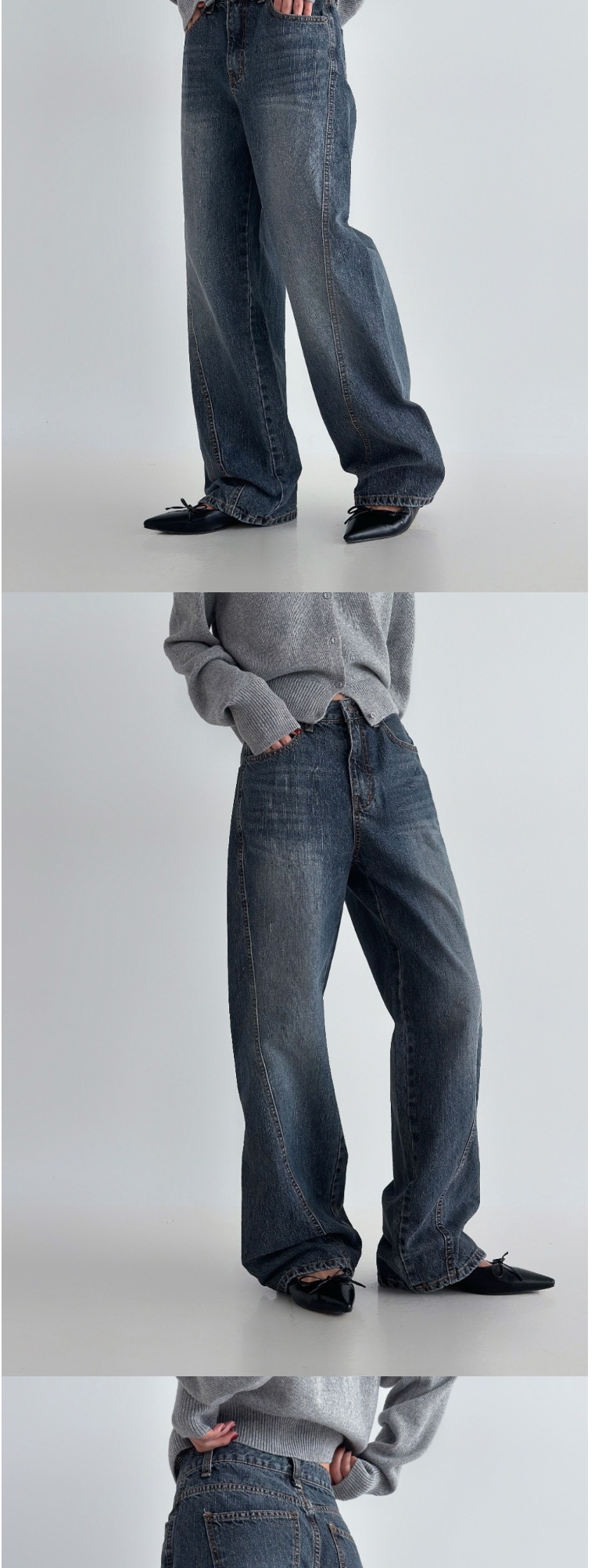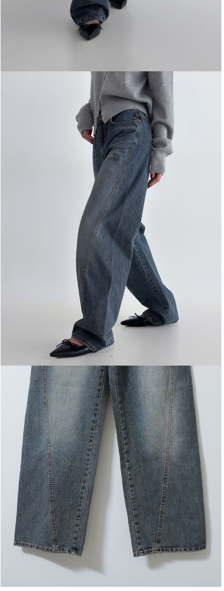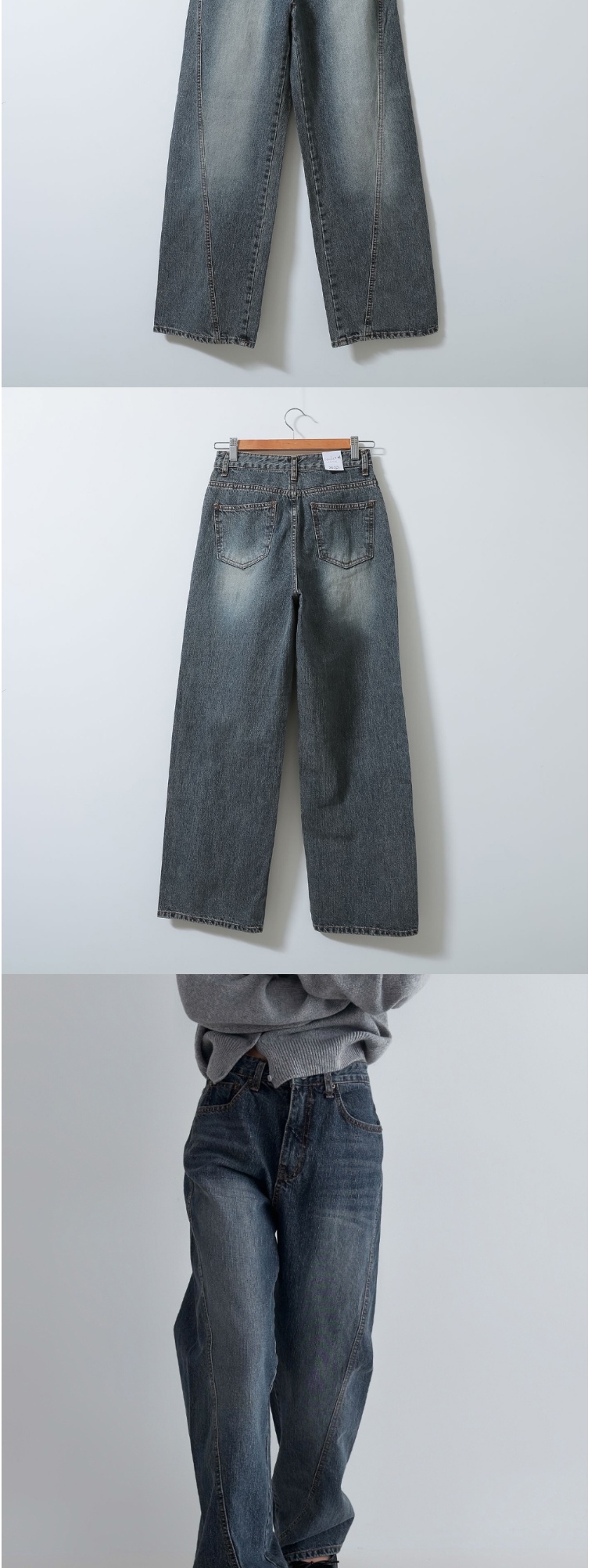 正韓牛仔褲 立體剪裁直筒長褲DOB0896-創翊韓都