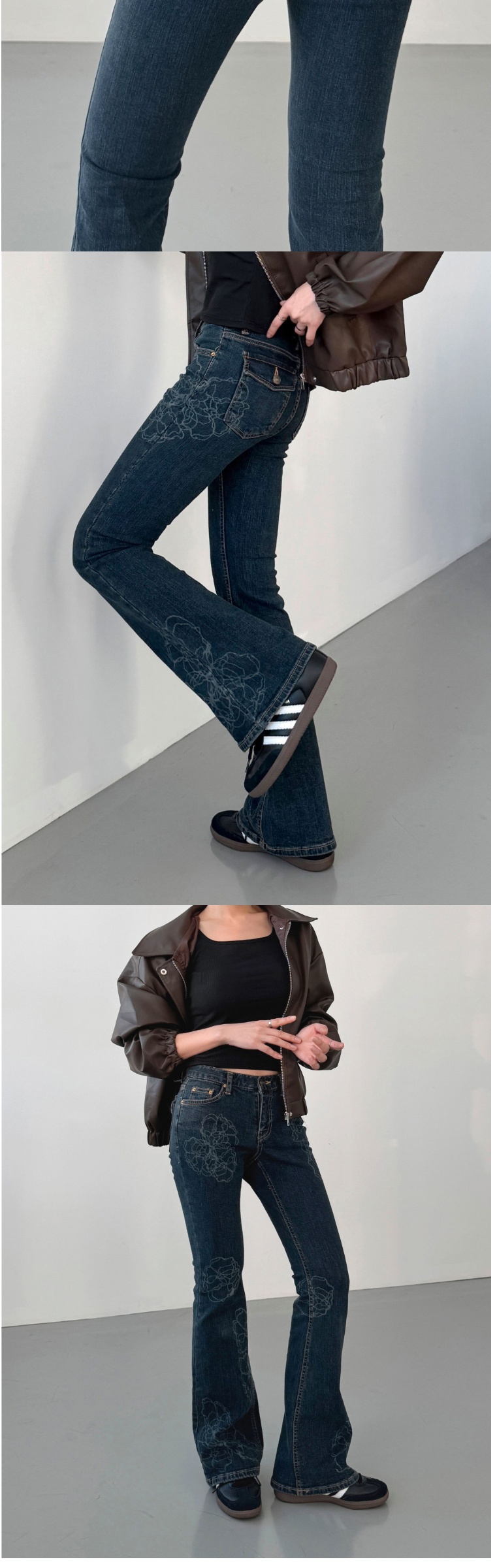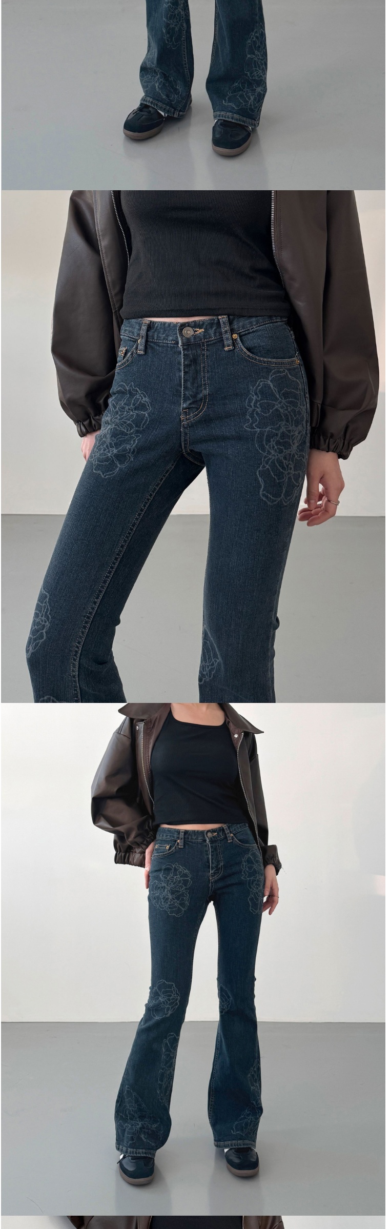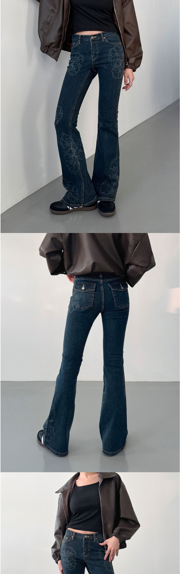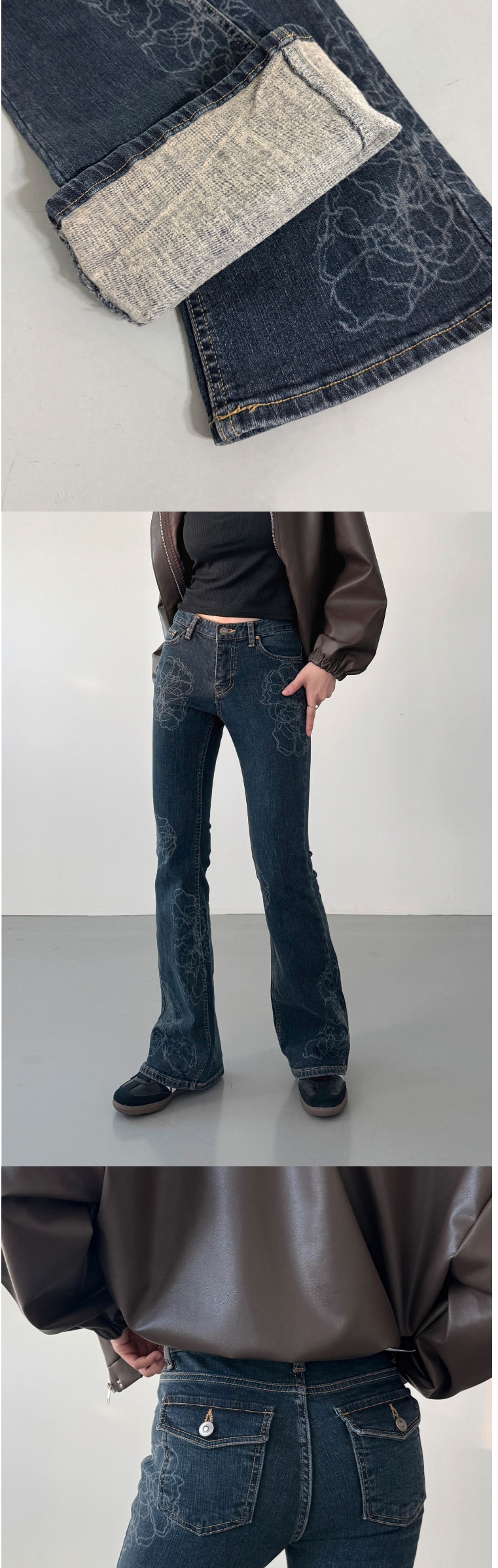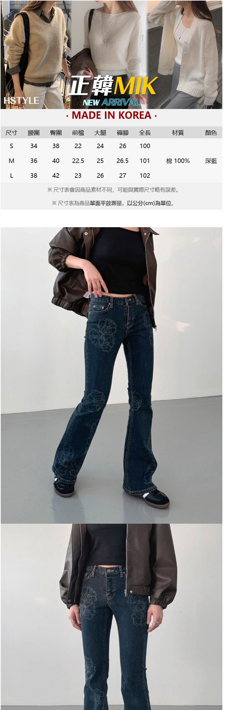 正韓牛仔褲 花朵喇叭長褲DOB9004-創翊韓都
