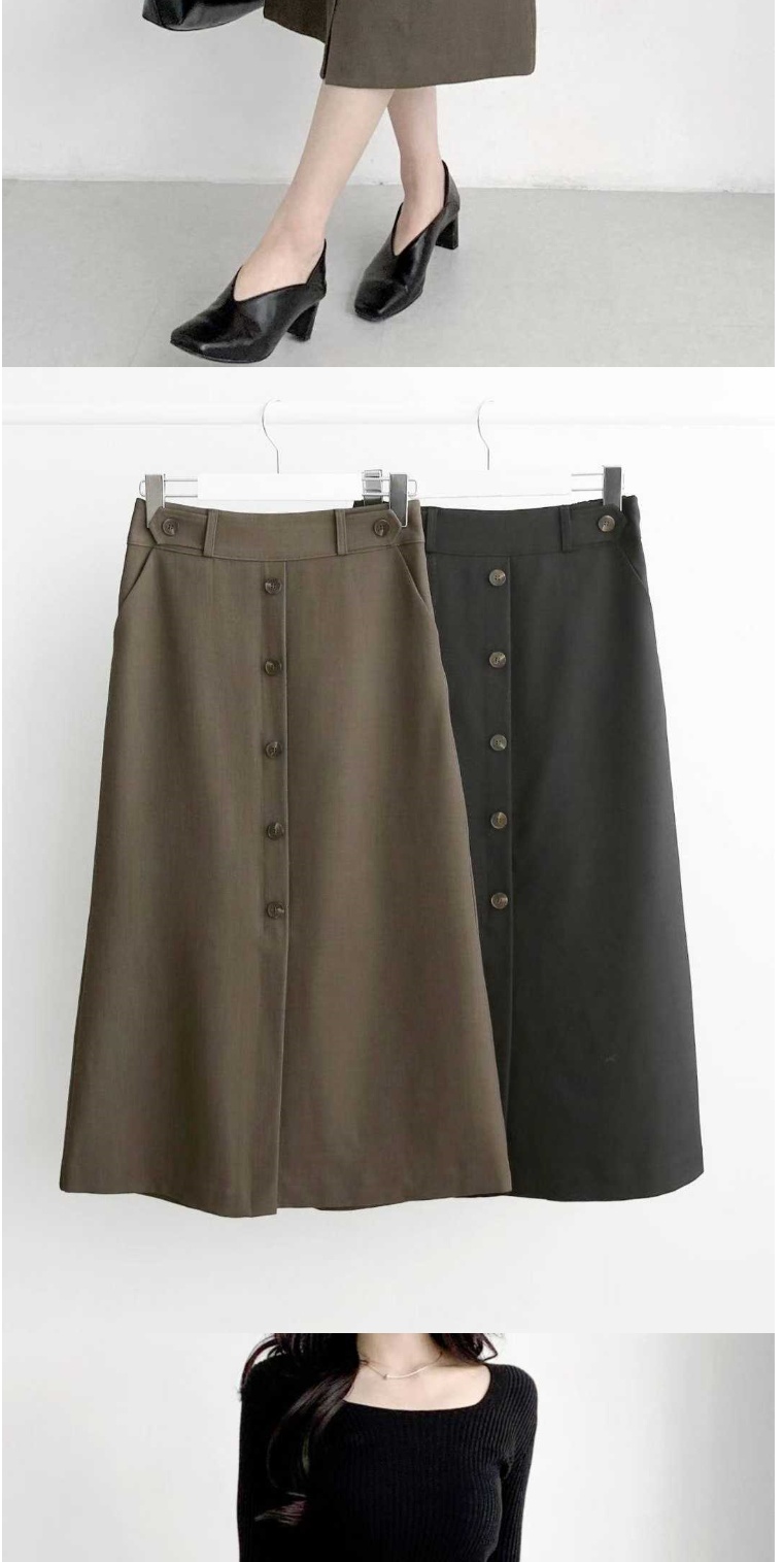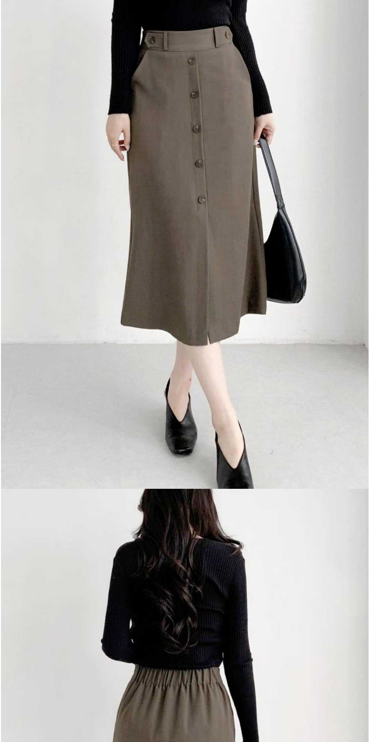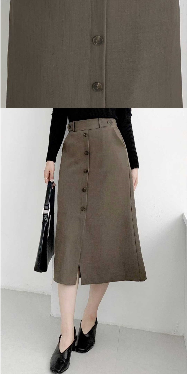 正韓長裙 排釦開衩長裙DOO1005-創翊韓都