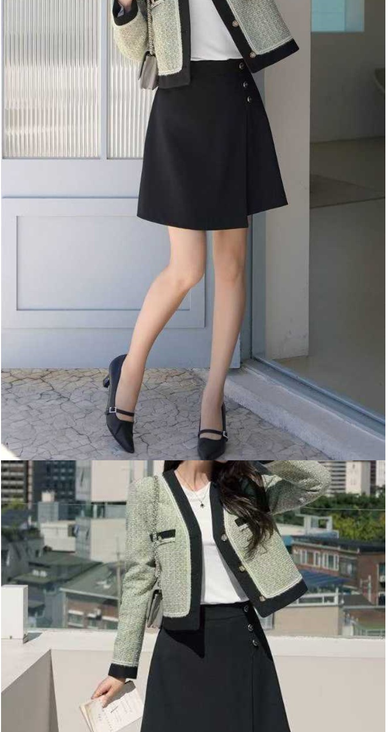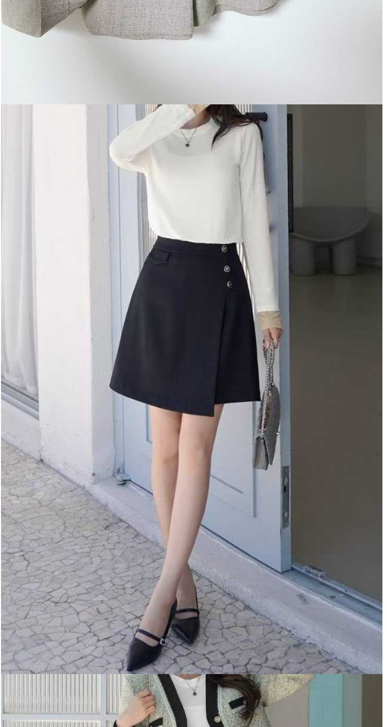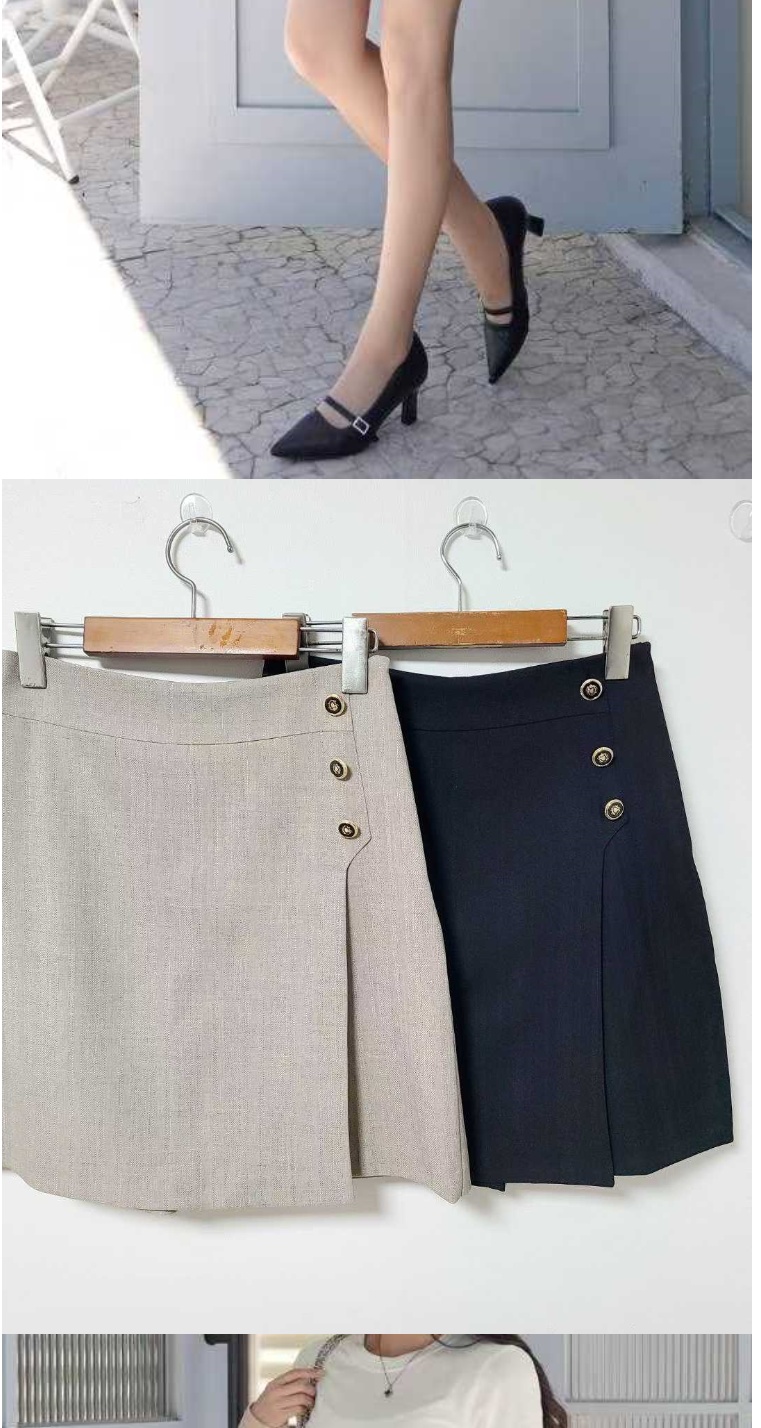 正韓短裙 提花鈕扣褲裙DOO1008-創翊韓都