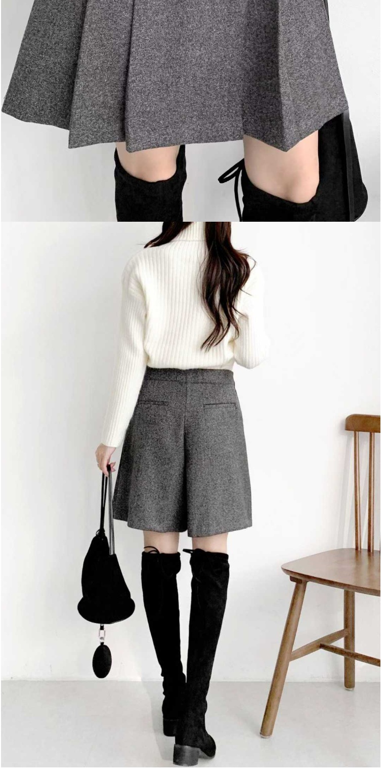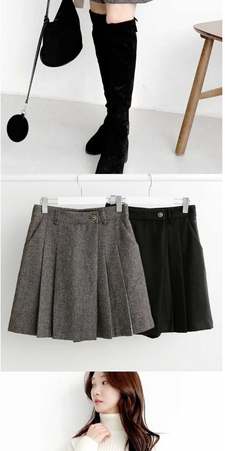 正韓短裙 抓絨百褶褲裙DOO1012-創翊韓都
