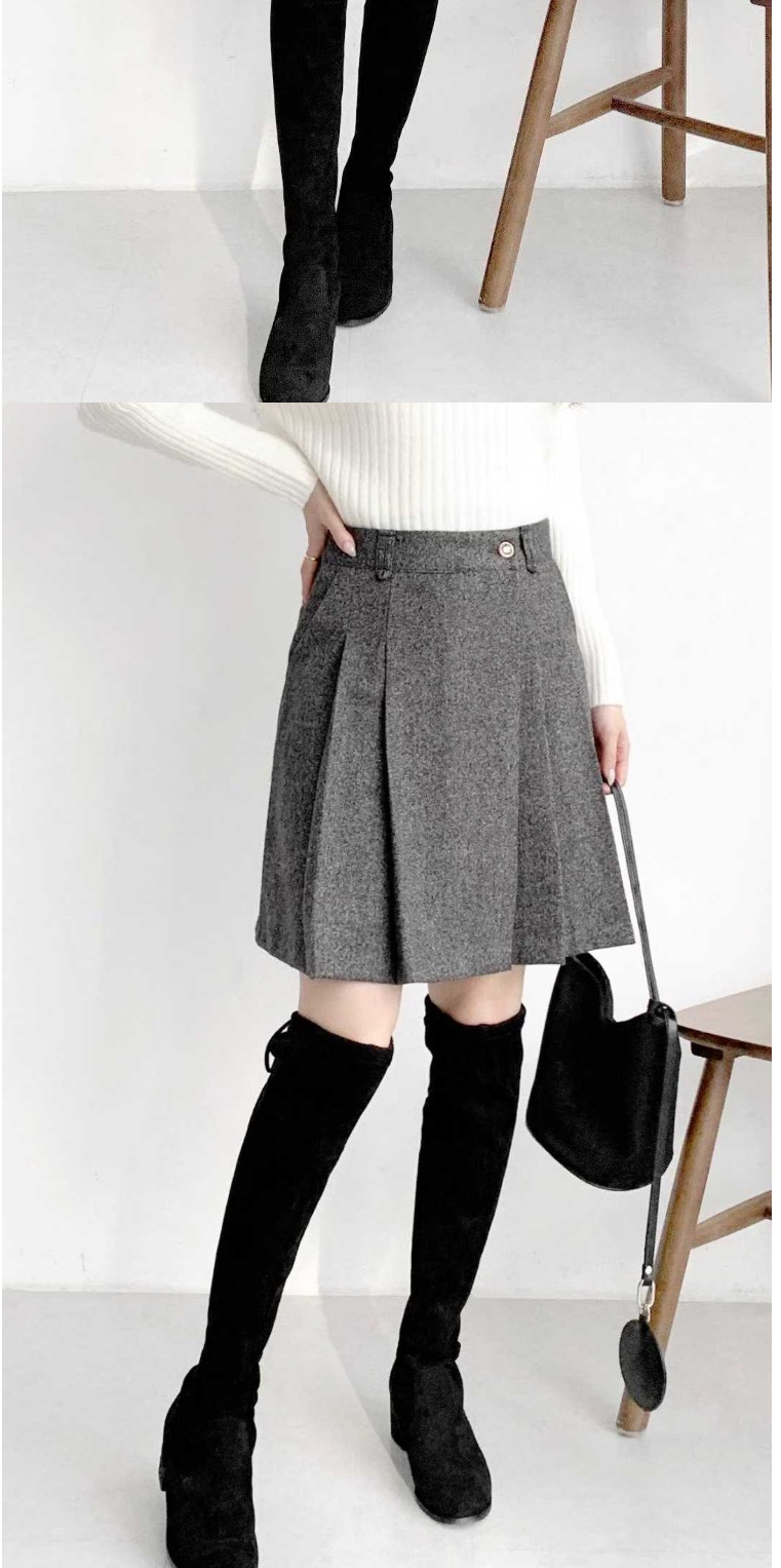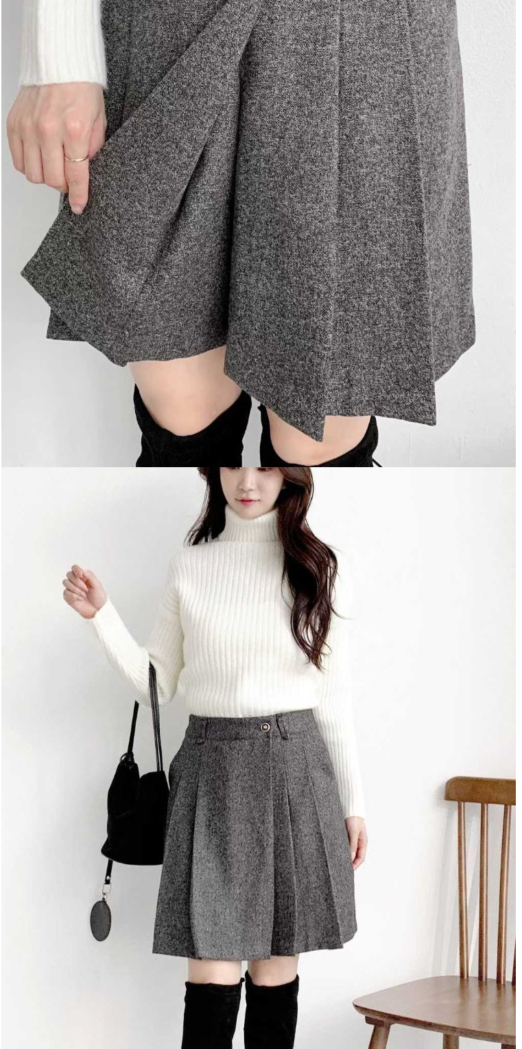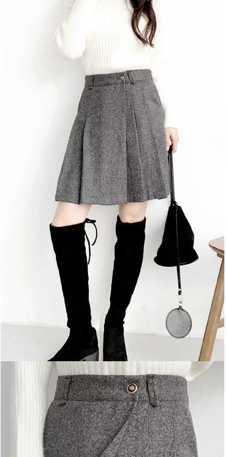 正韓短裙 高腰內襯百摺短裙WHN1014-創翊韓都