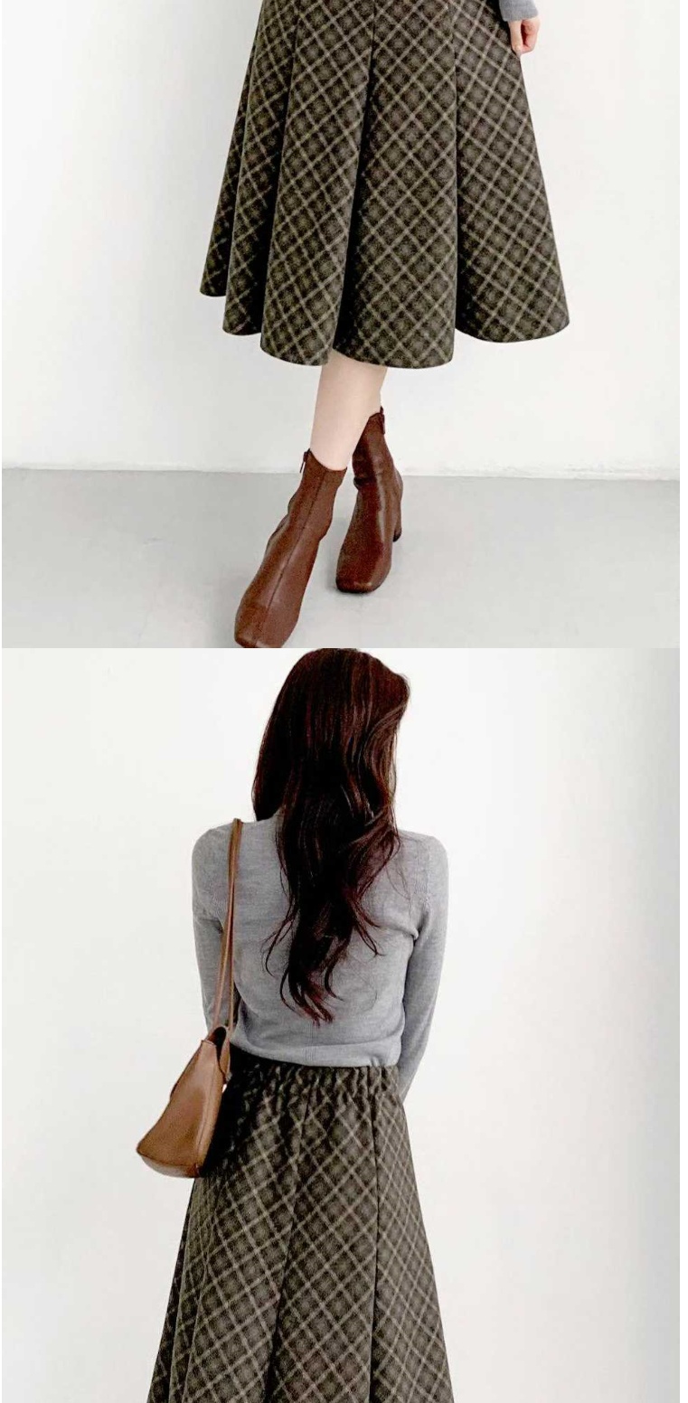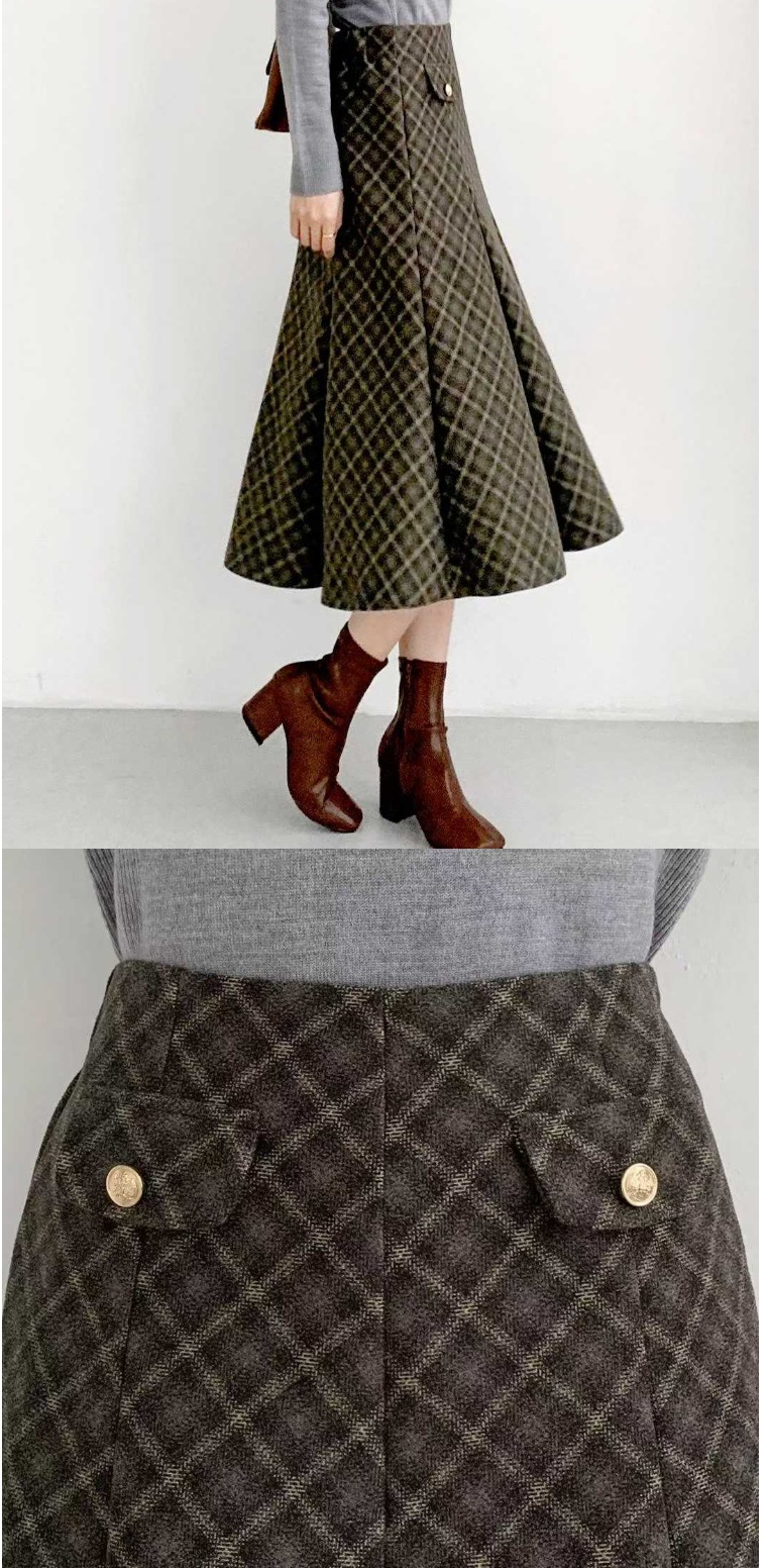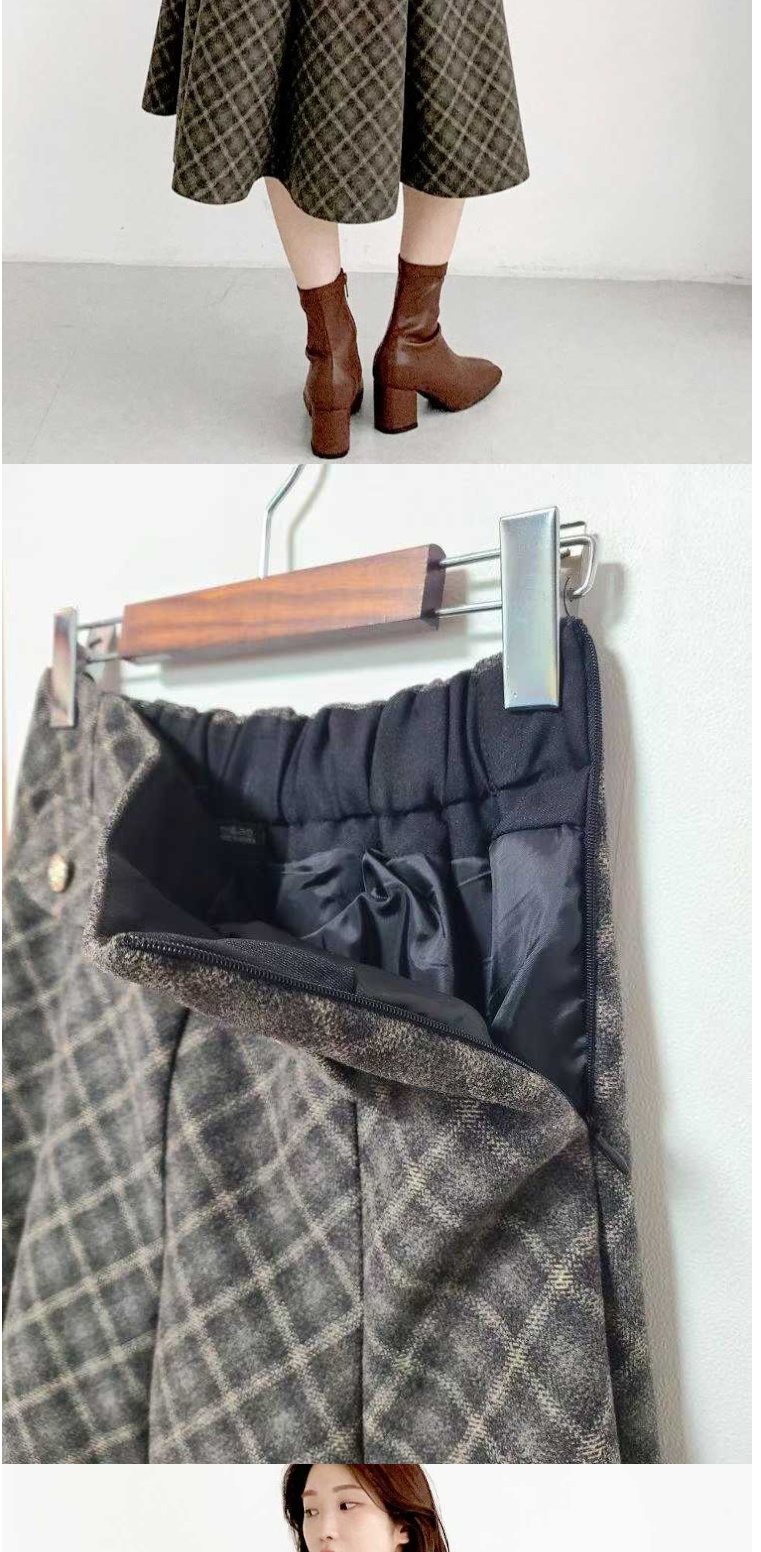 正韓長裙 格紋刷毛喇叭長裙DOO1014-創翊韓都