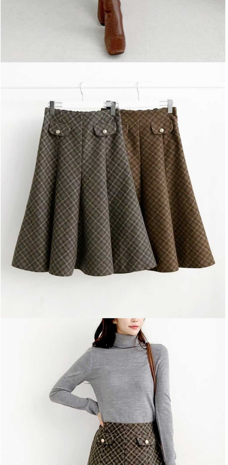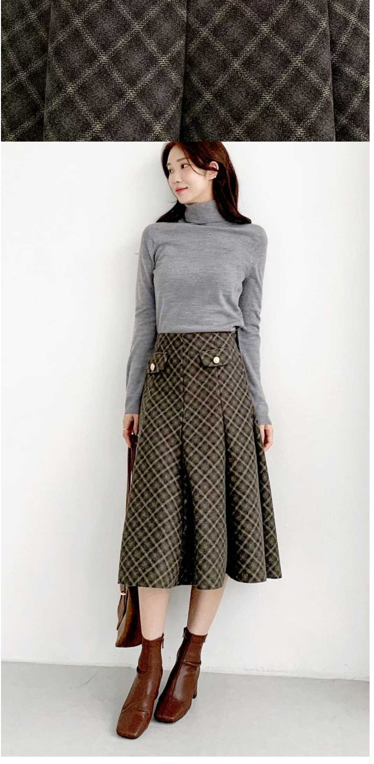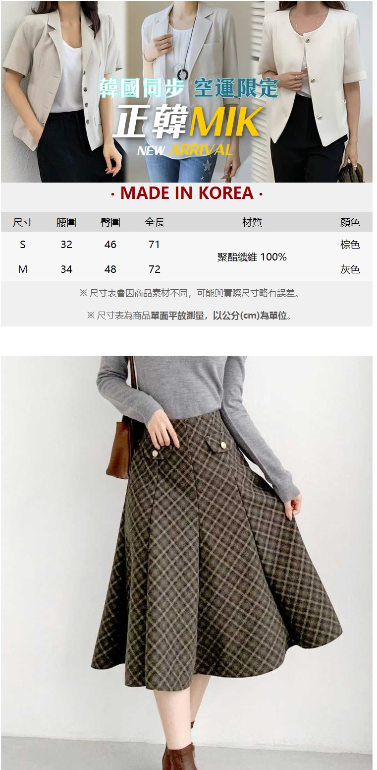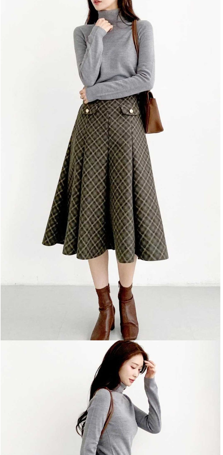 正韓長裙 格紋刷毛喇叭長裙DOO1014-創翊韓都