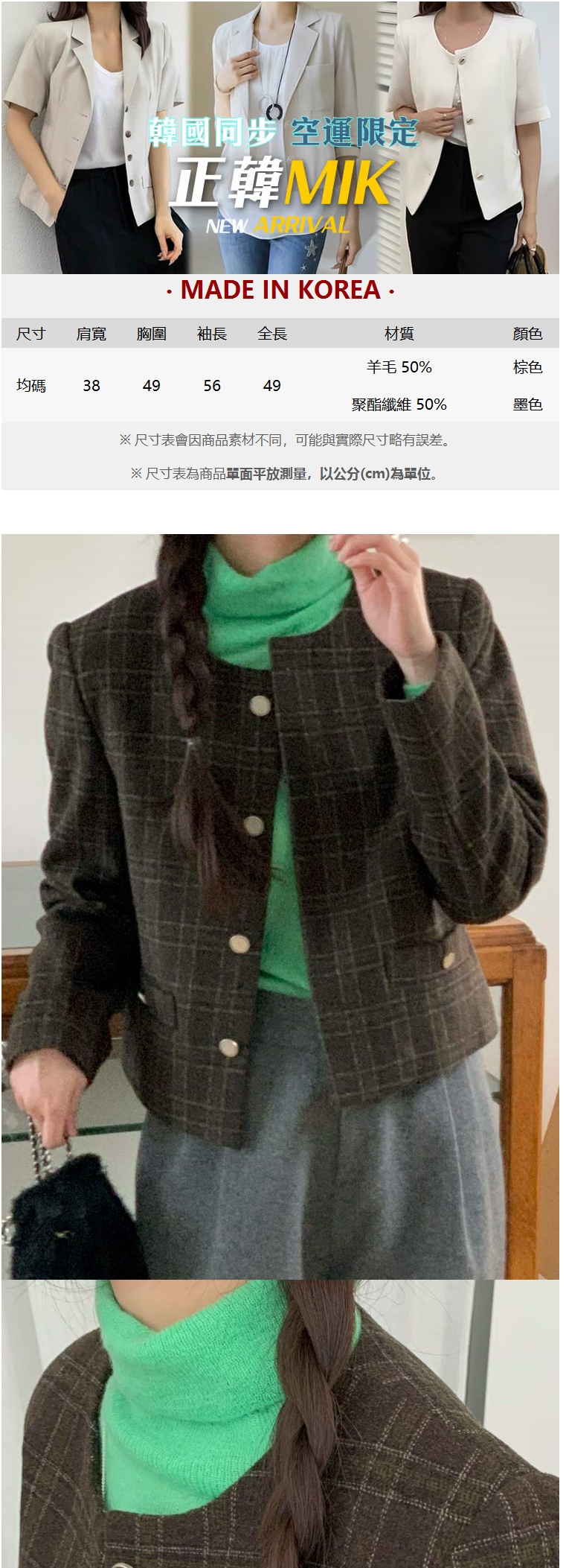 正韓外套 山杜羅羊毛呢短款大衣EPC1076-創翊韓都