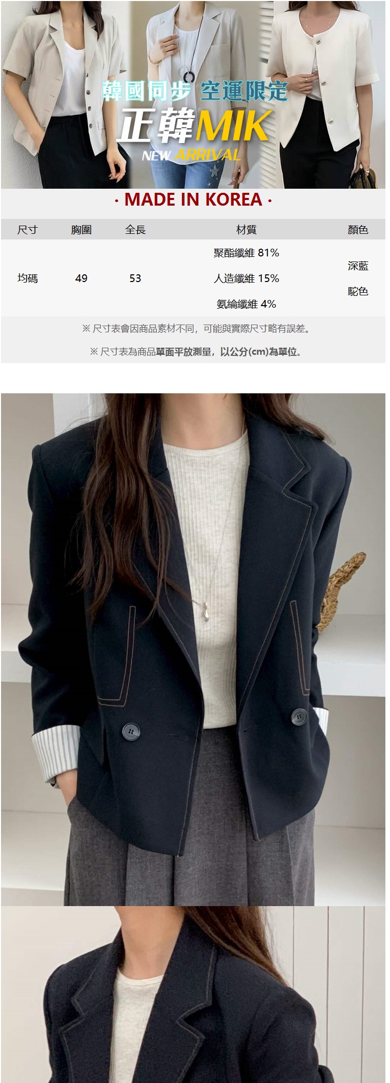 正韓外套 縫線短款外套EPC1079-創翊韓都