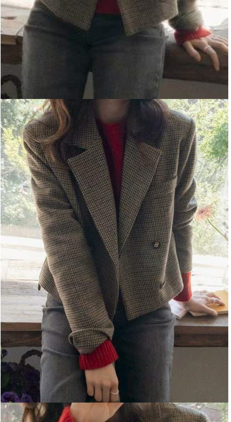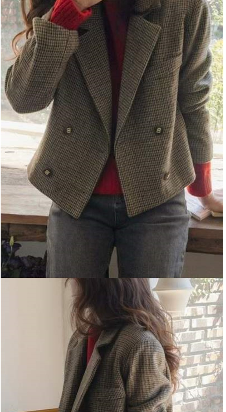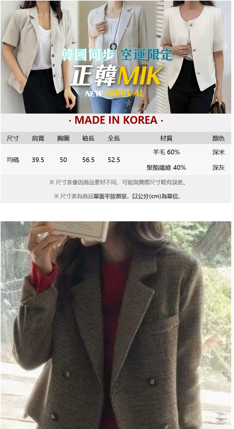 正韓外套 格紋羊毛呢短款大衣EPC1080-創翊韓都