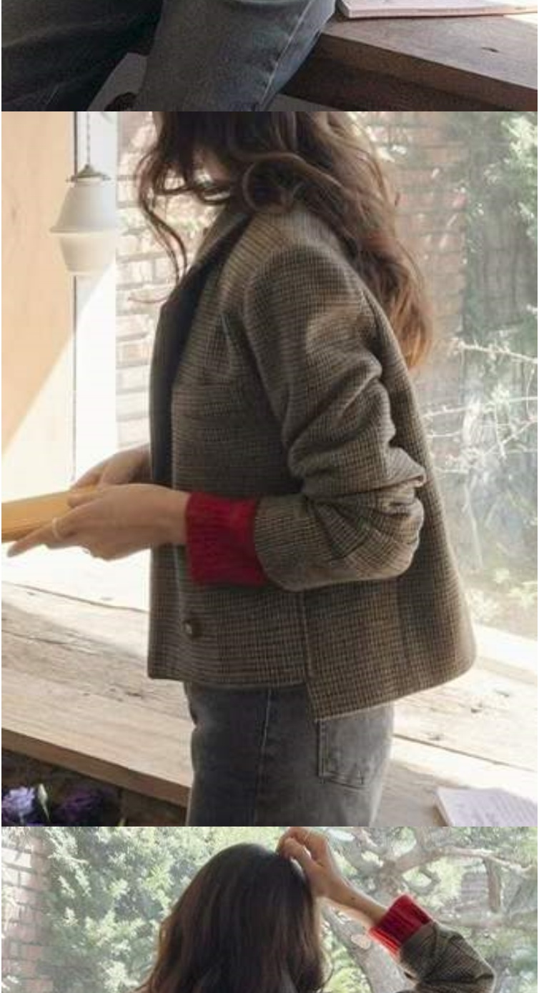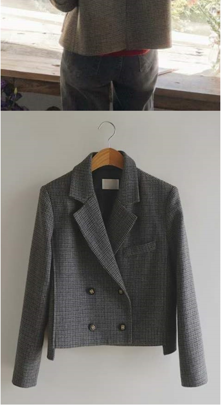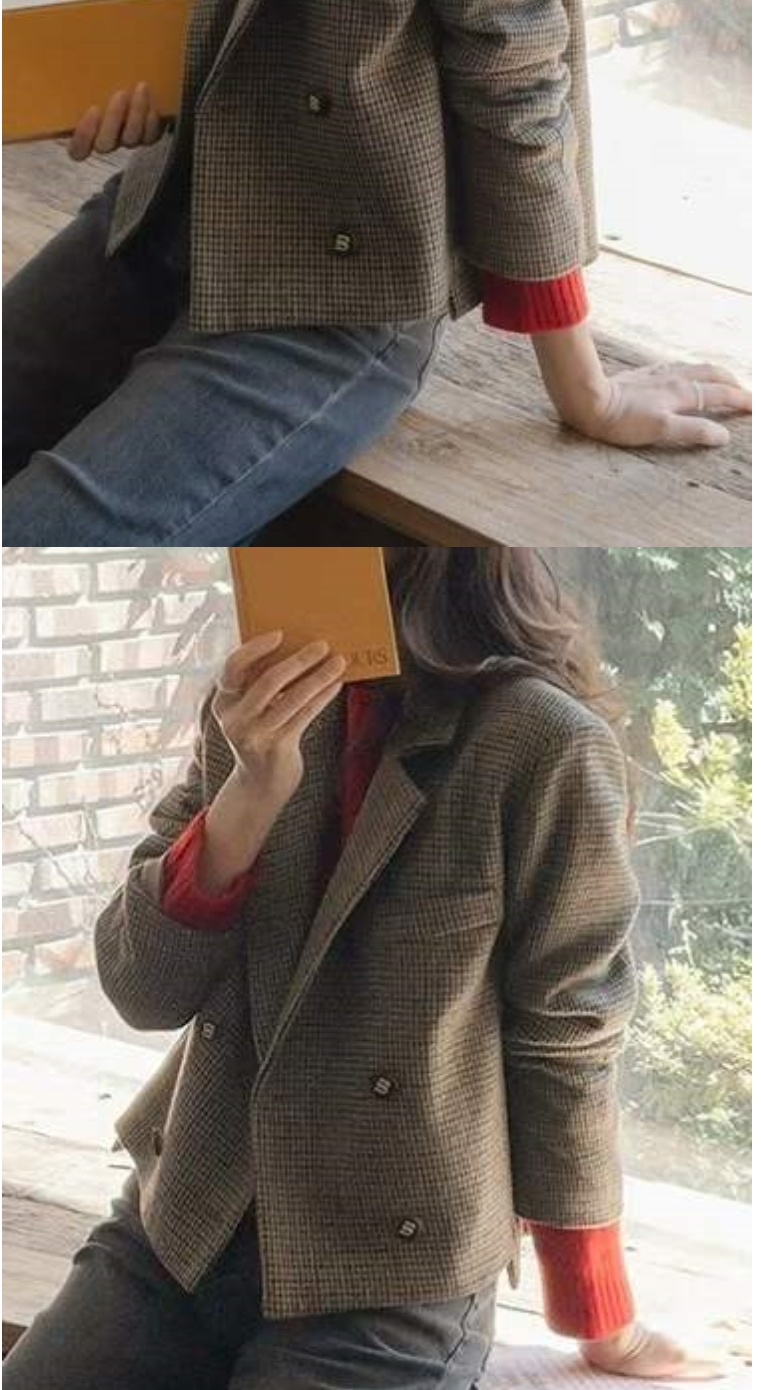 正韓外套 格紋羊毛呢短款大衣EPC1080-創翊韓都