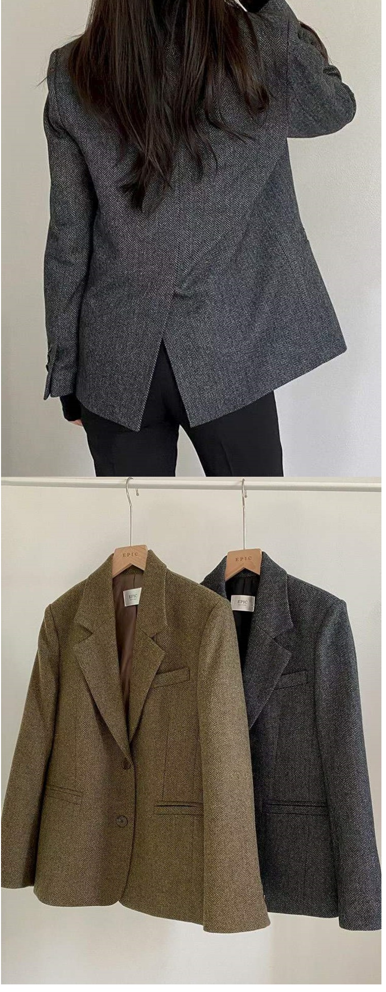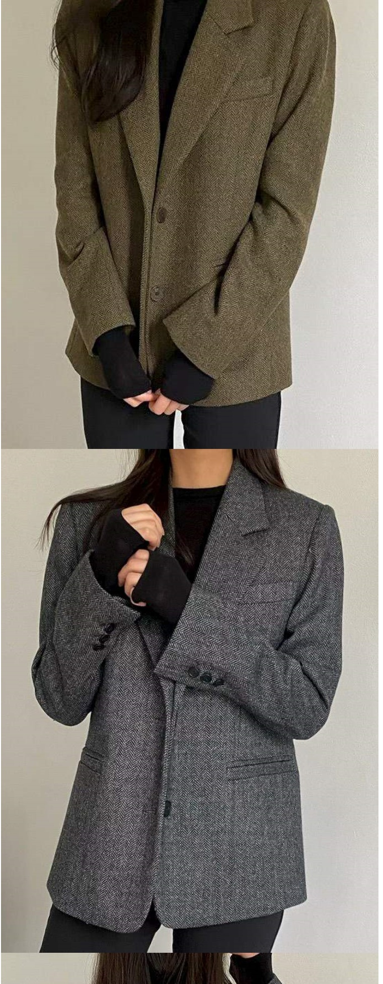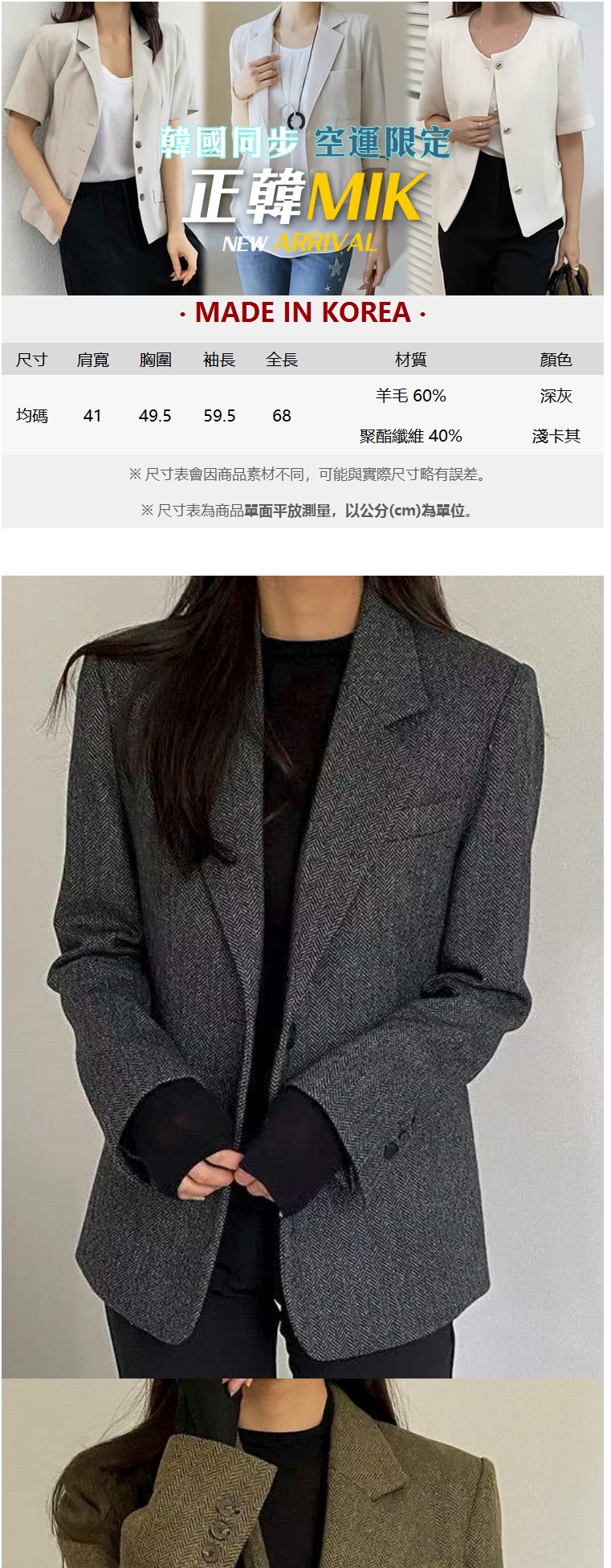 正韓外套 人字紋羊毛西裝外套EPC1081-創翊韓都