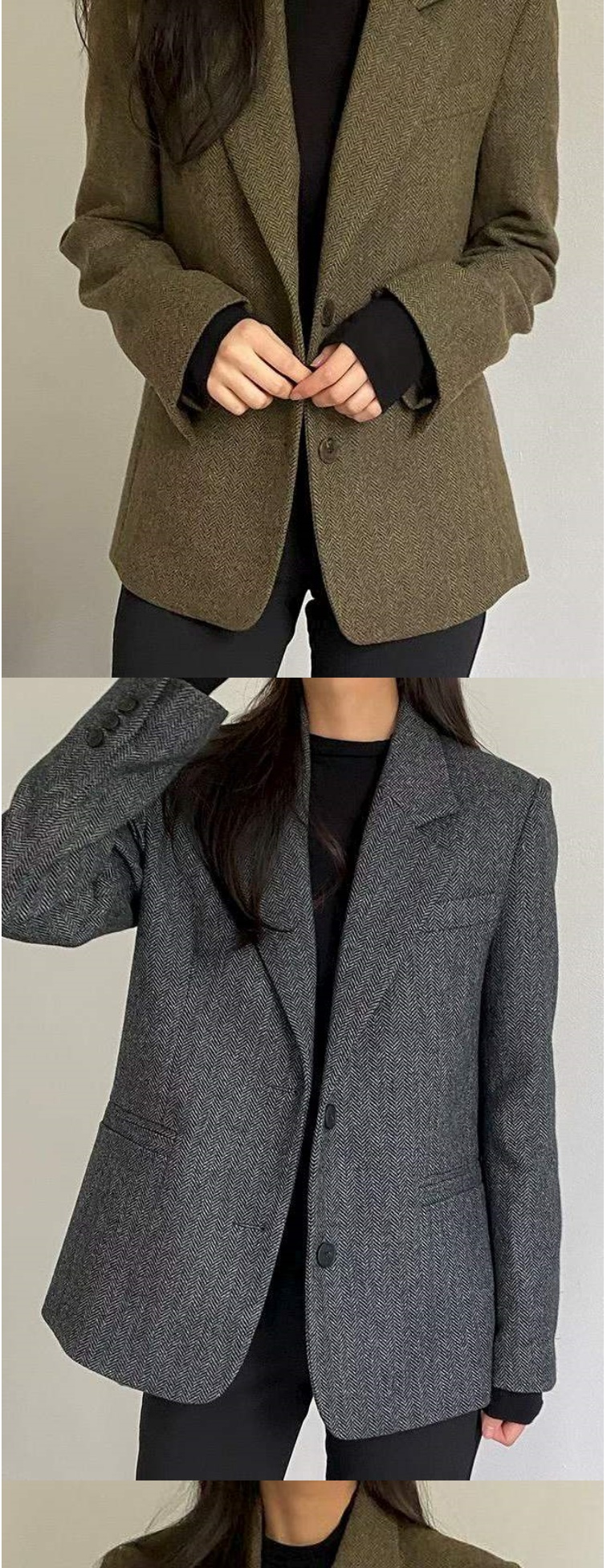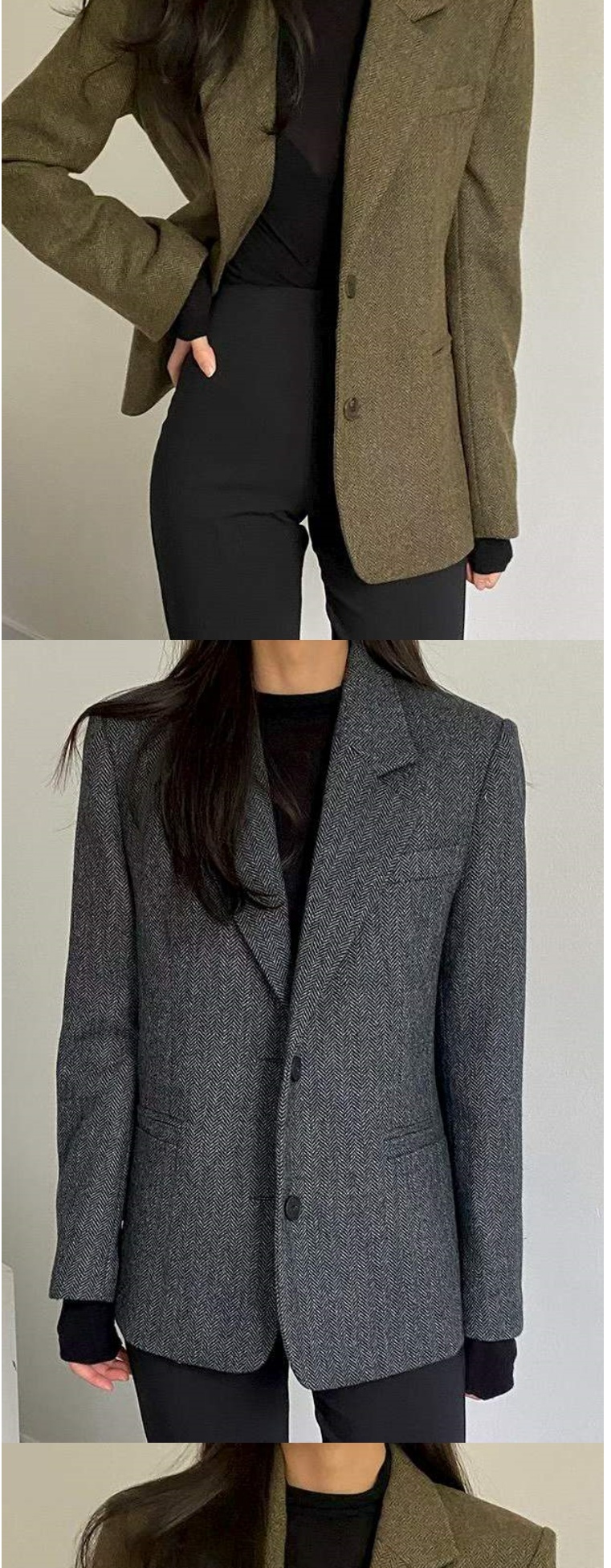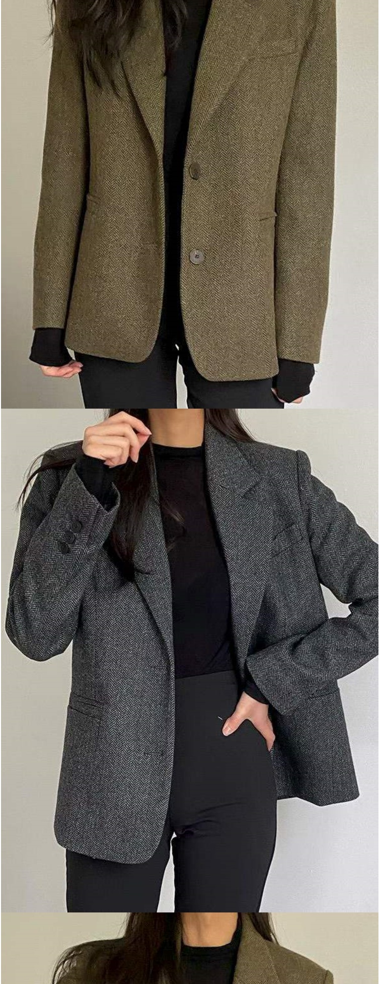 正韓外套 人字紋羊毛西裝外套EPC1081-創翊韓都