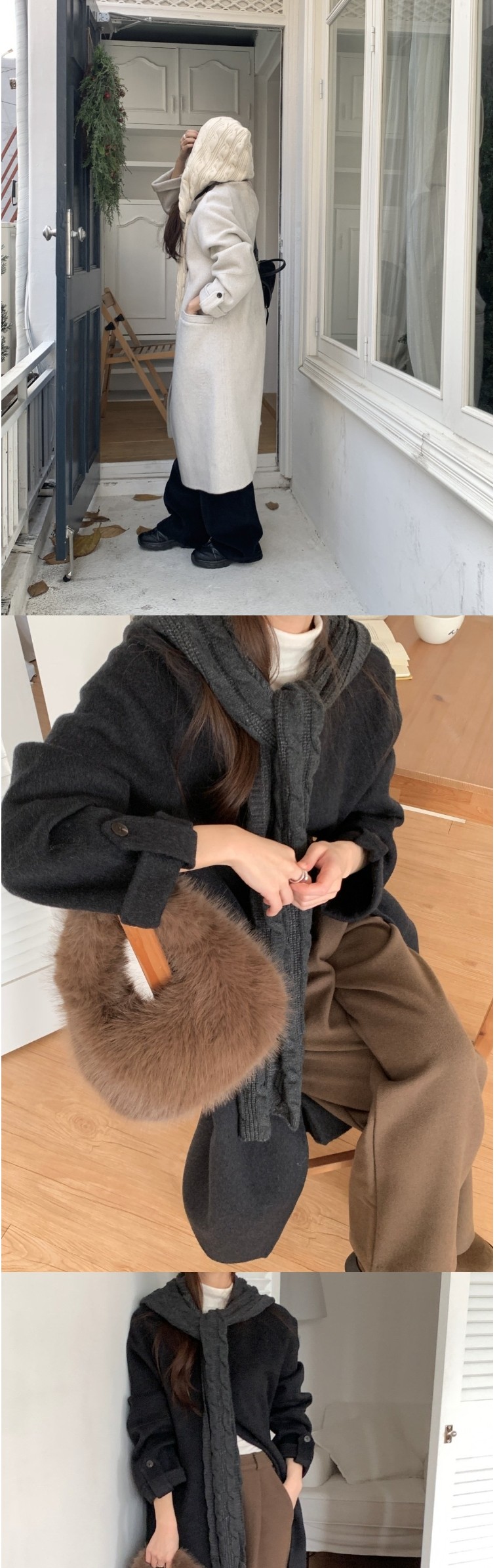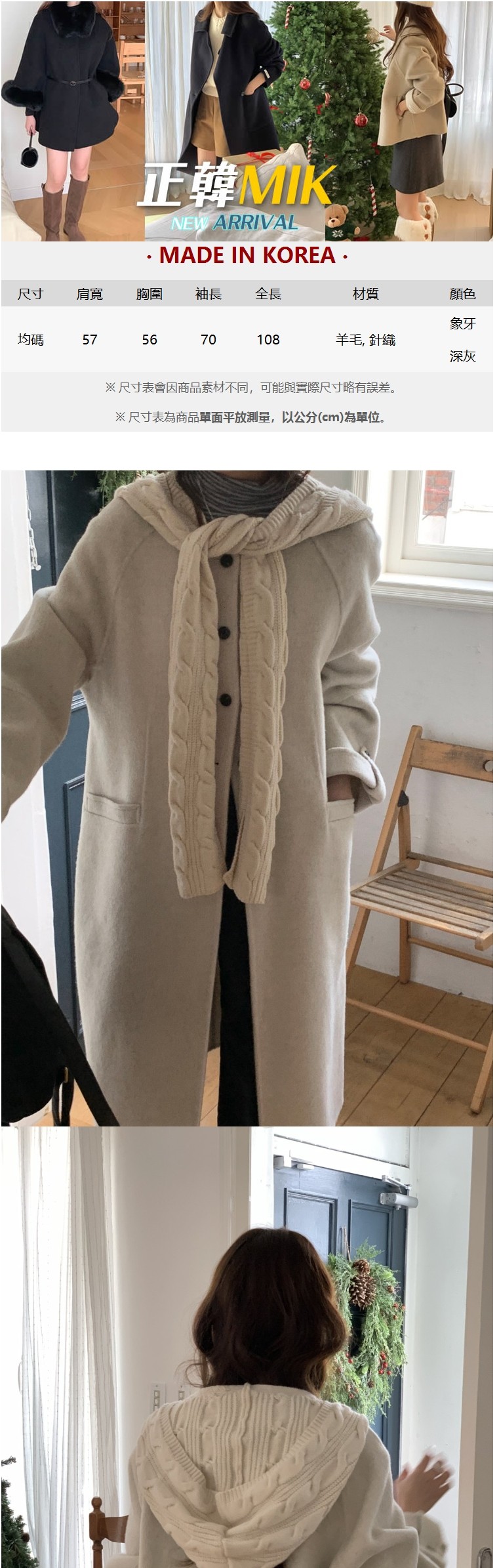 正韓外套 針織連帽羊毛呢長款大衣EPC1095-創翊韓都