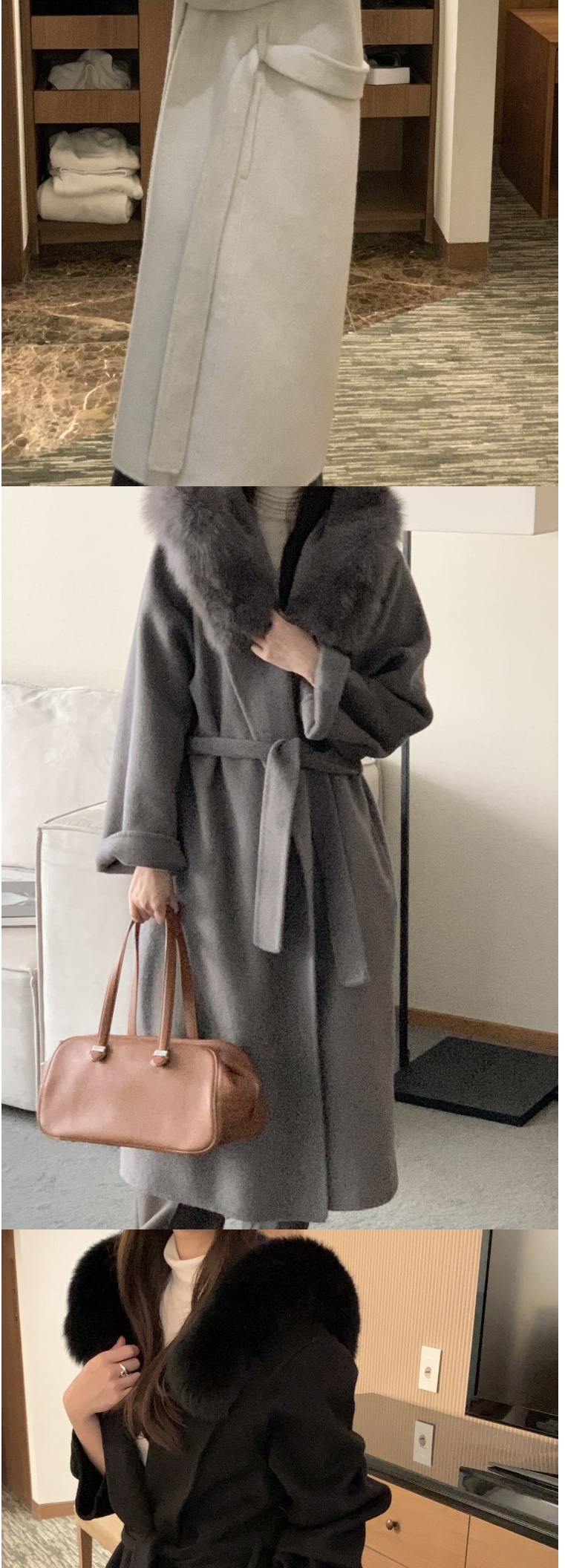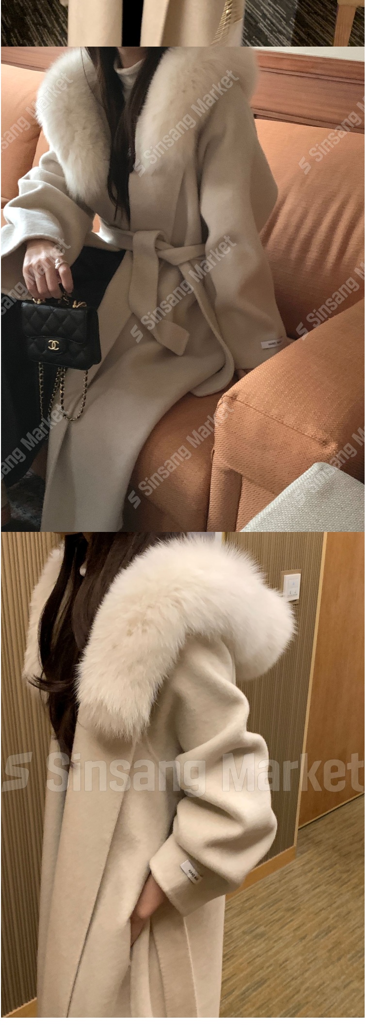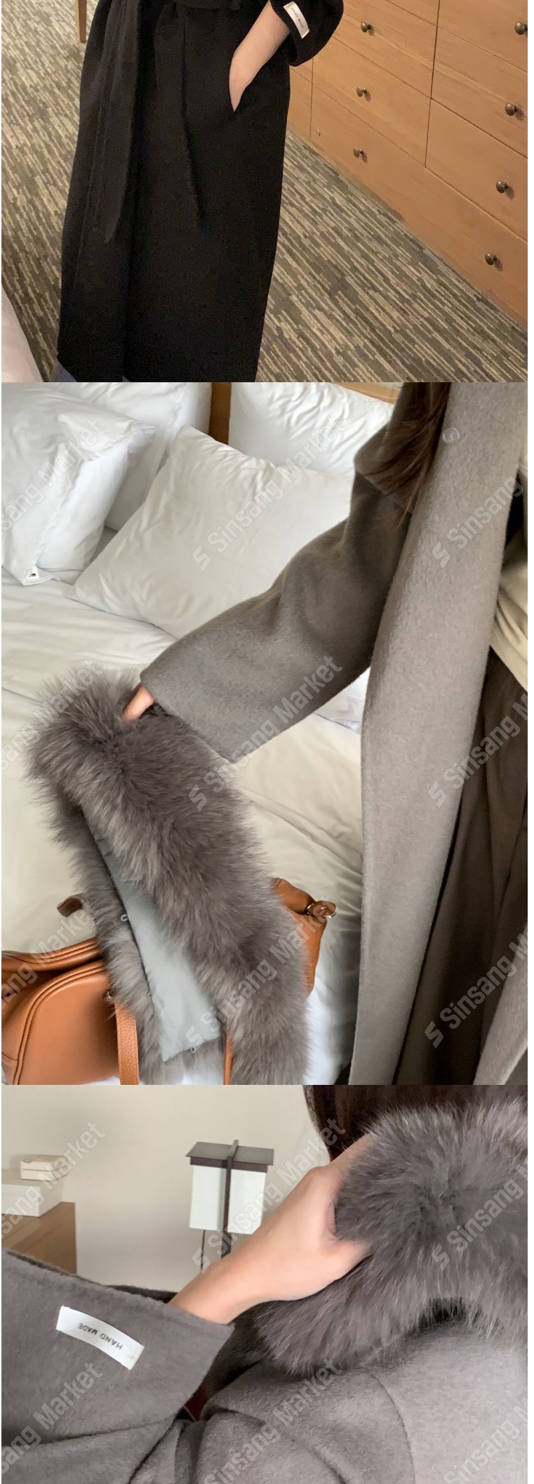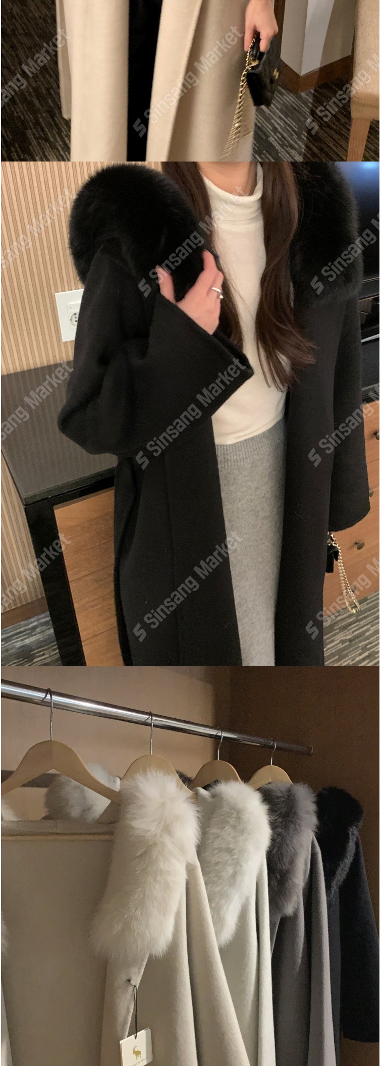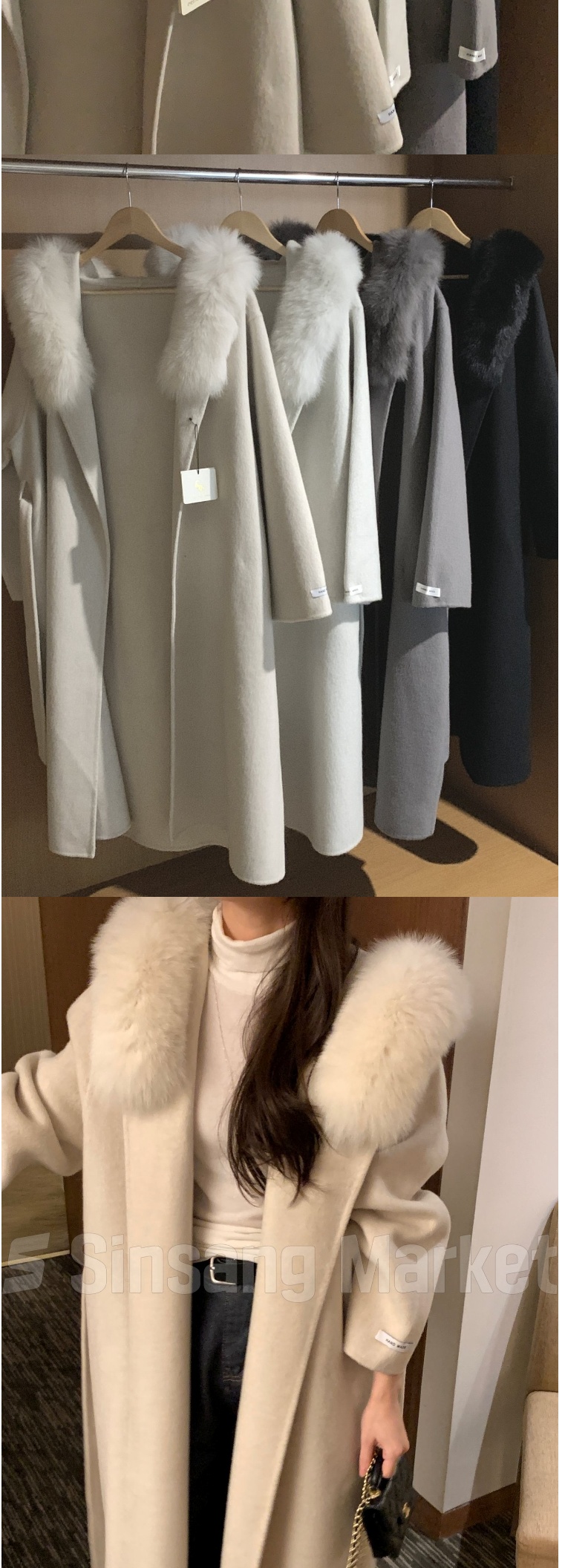 正韓外套 手工毛領羊毛呢長款大衣EPC1100-創翊韓都