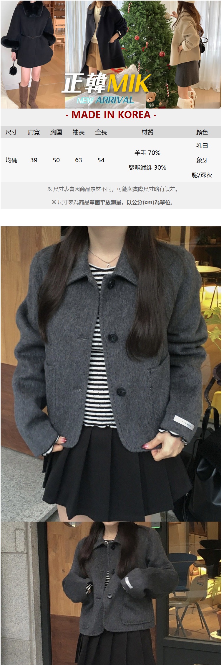 正韓外套 手工羊毛呢短款大衣EPC1101-創翊韓都