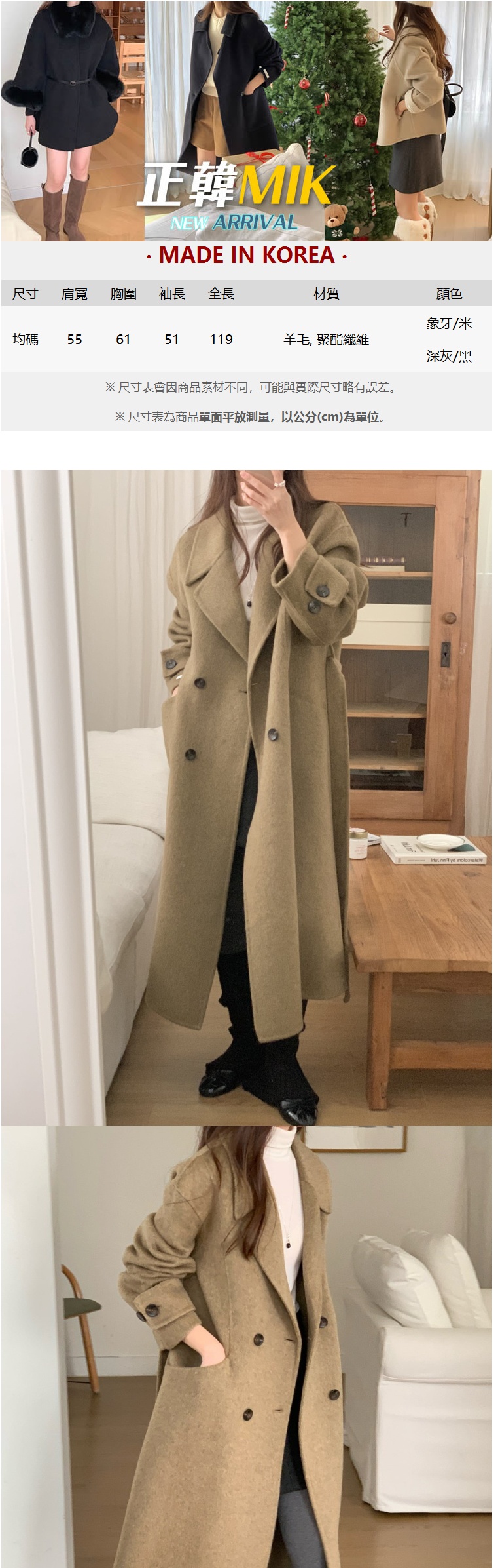 正韓外套 手工羊毛呢長款大衣EPC1102-創翊韓都