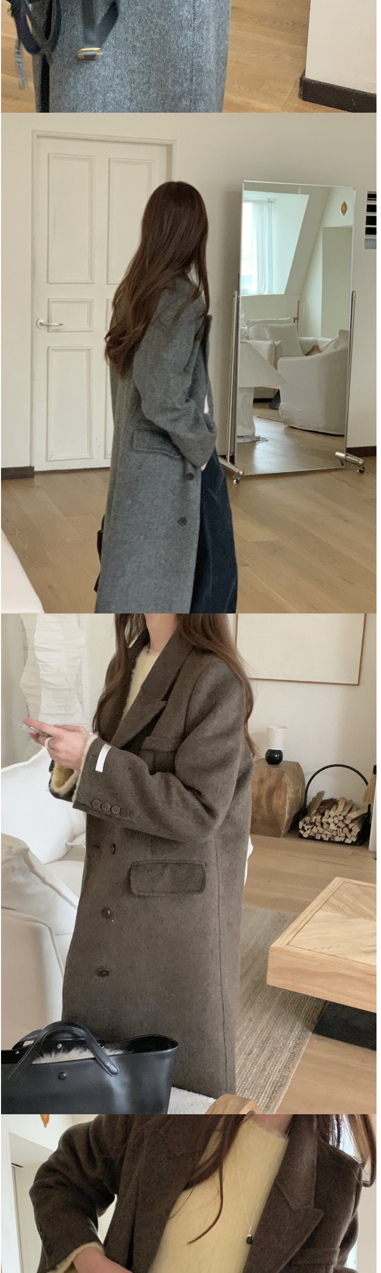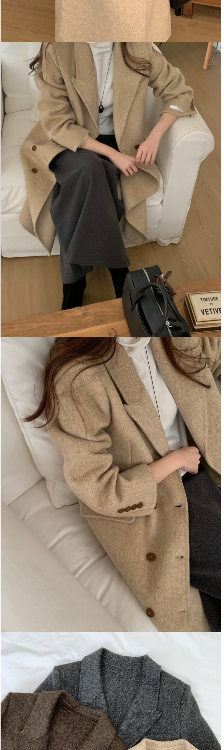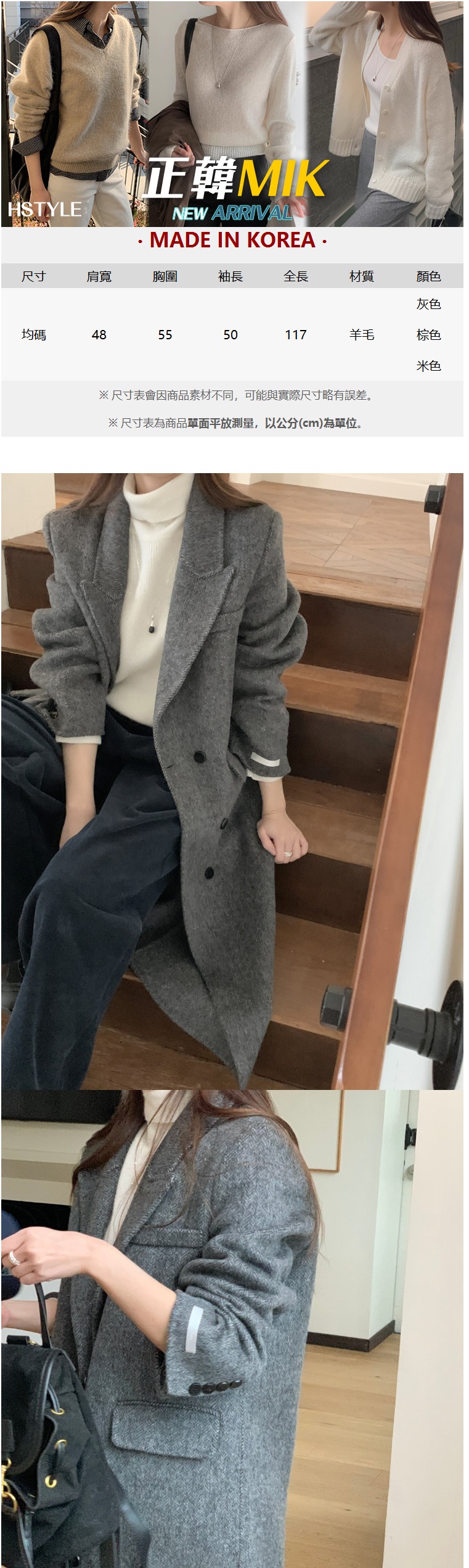 正韓外套 手工人字紋羊毛呢長款大衣EPC1104-創翊韓都