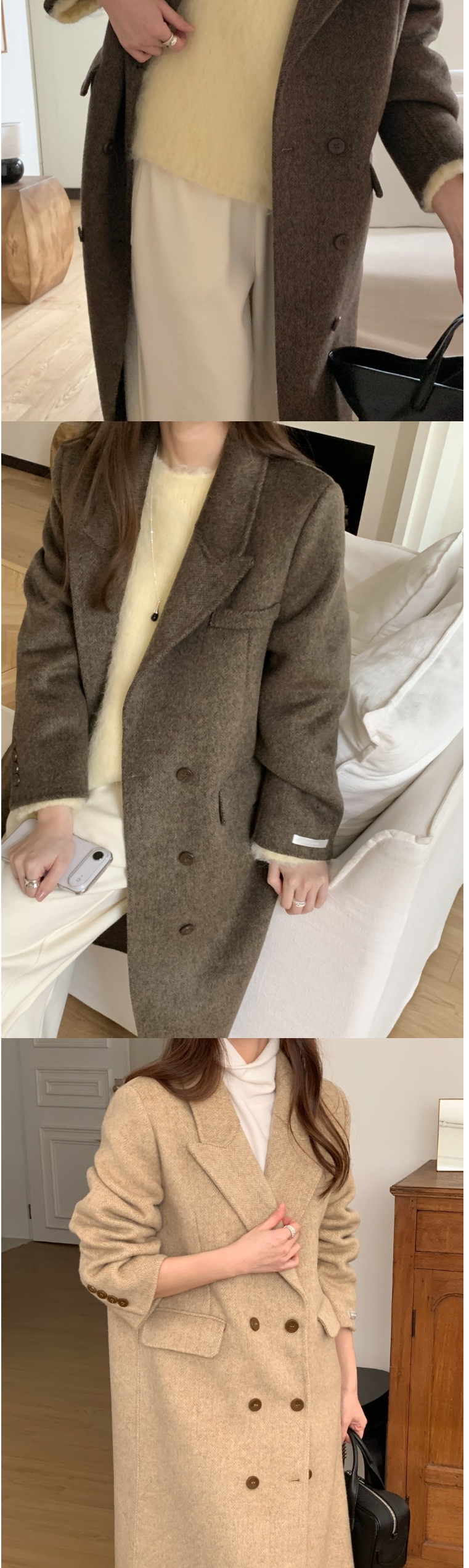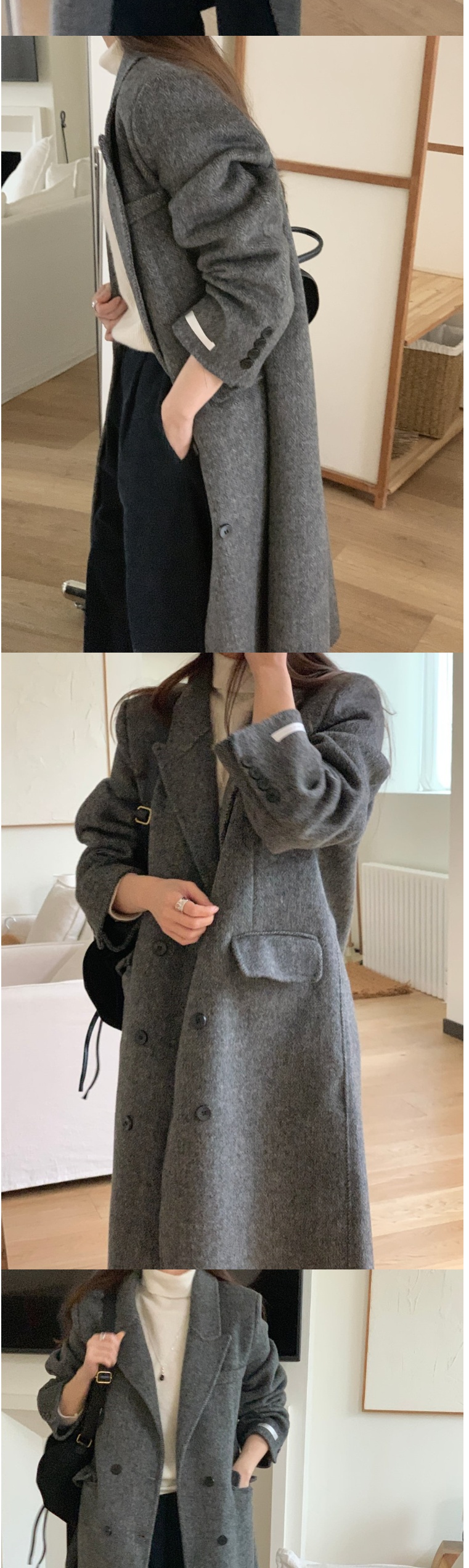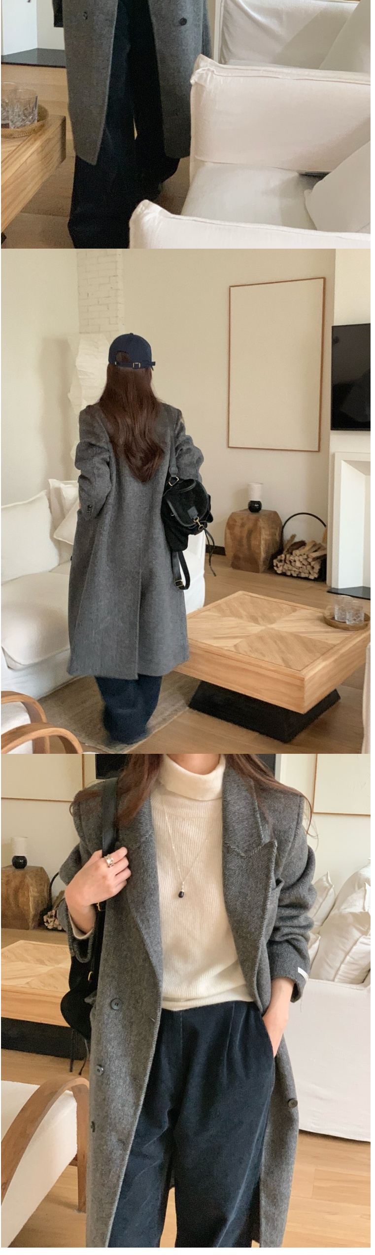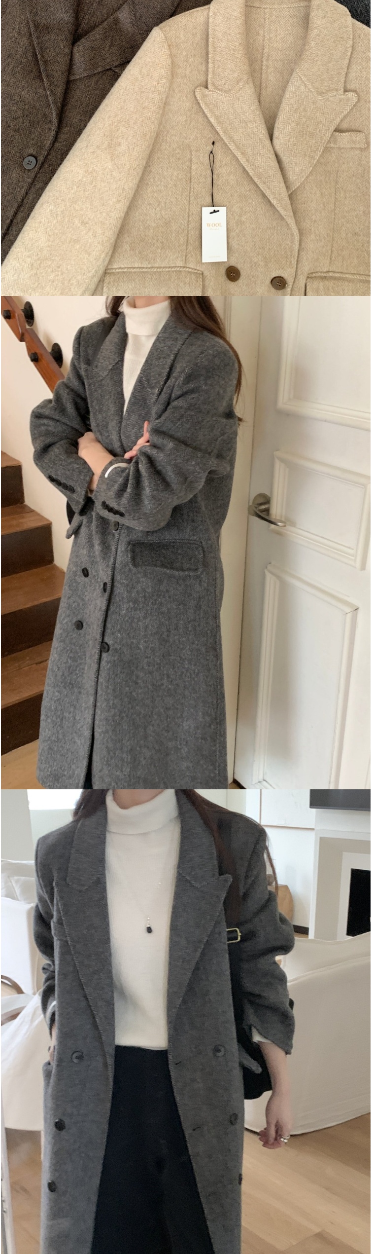 正韓外套 手工人字紋羊毛呢長款大衣EPC1104-創翊韓都
