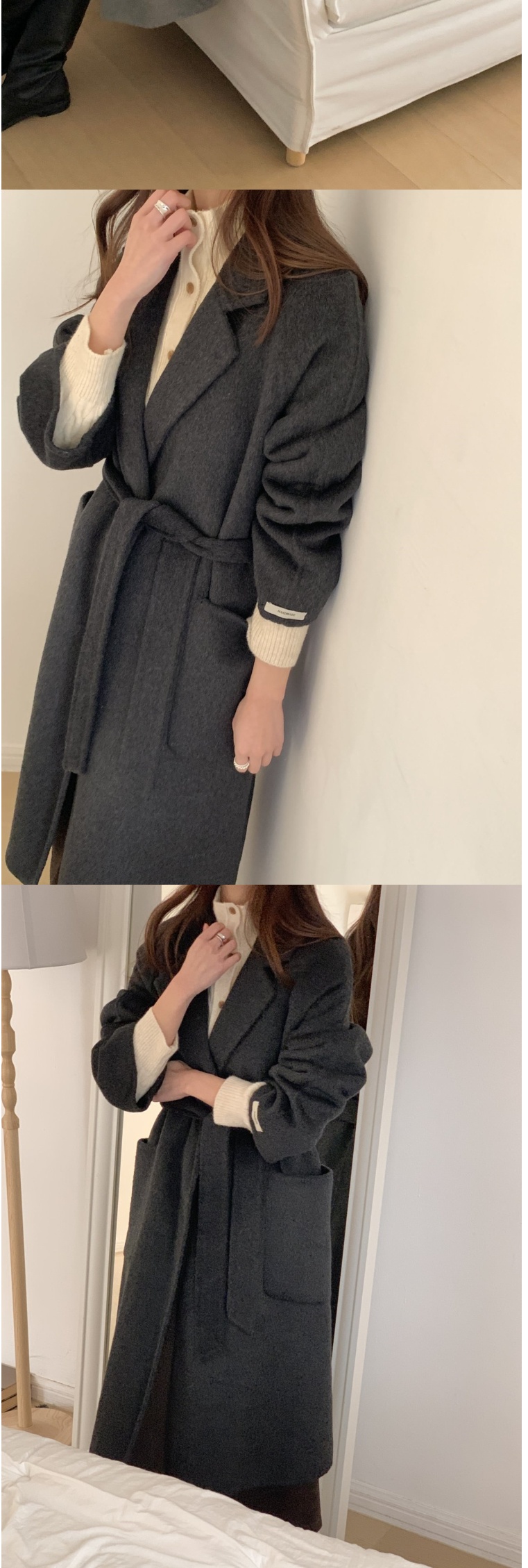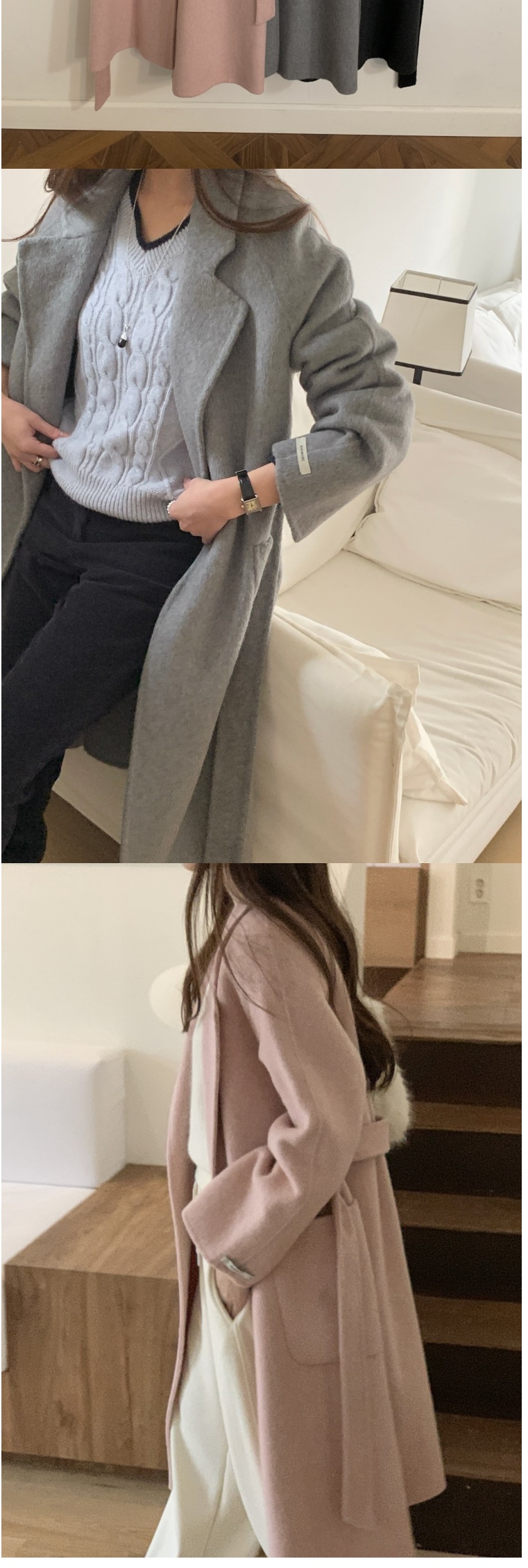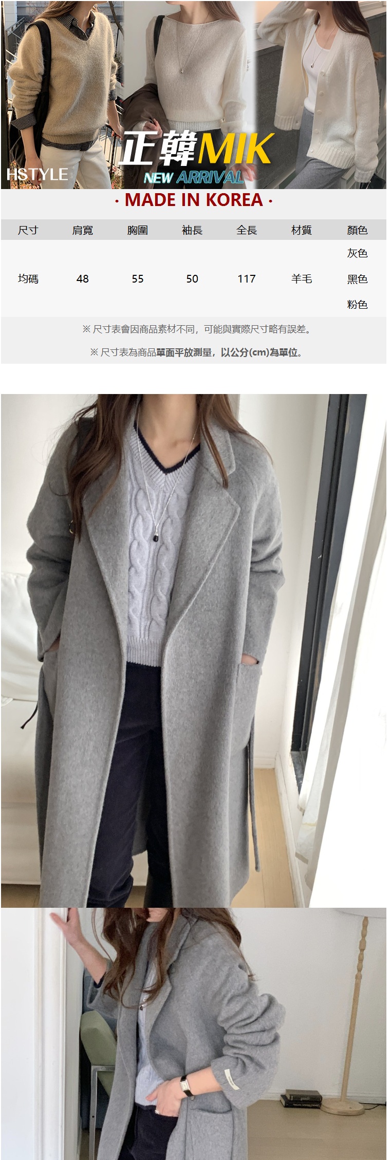 正韓外套 手工腰帶羊毛呢長款大衣EPC1105-創翊韓都