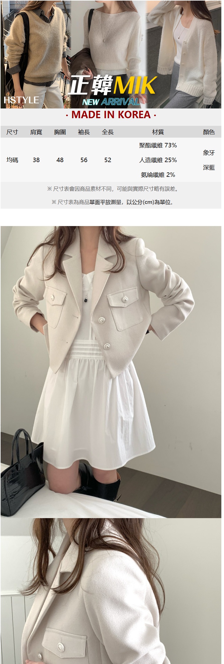 正韓毛呢外套 氣質羊毛毛呢短版大衣WHN1008-創翊韓都