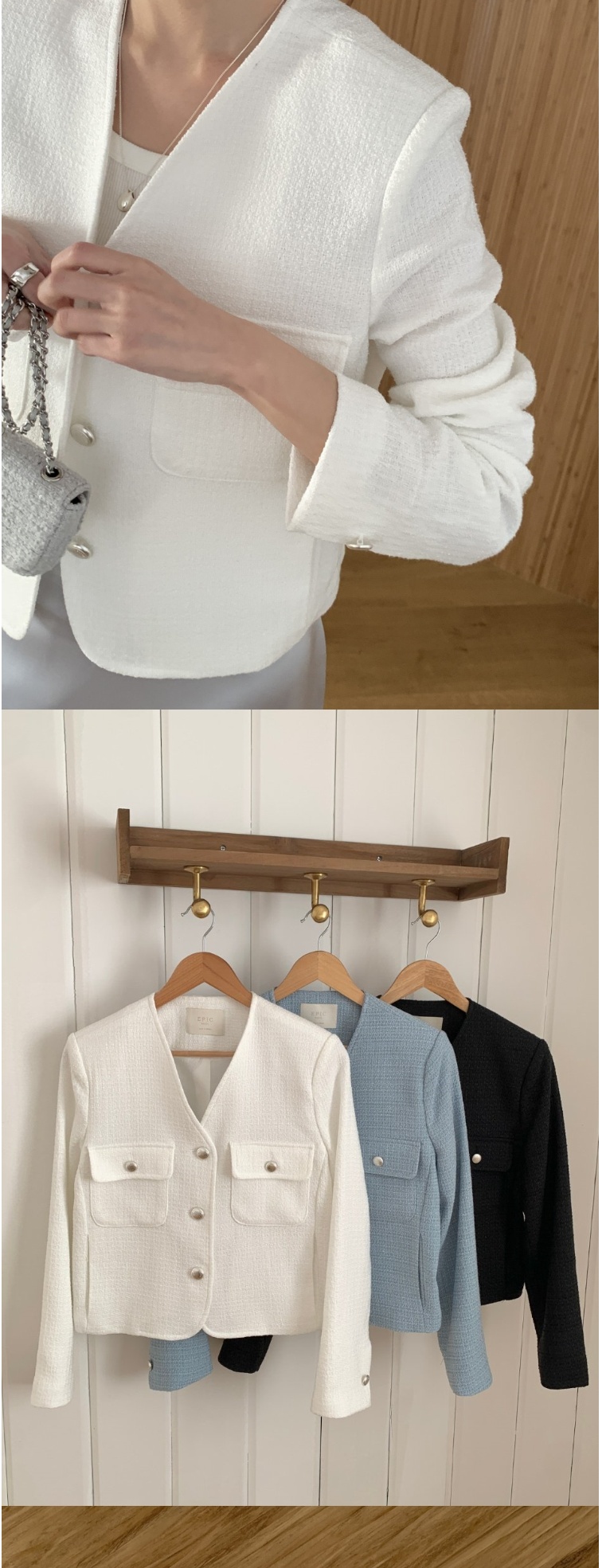 正韓外套 明優伯粗花呢短款外套EPC1114-創翊韓都
