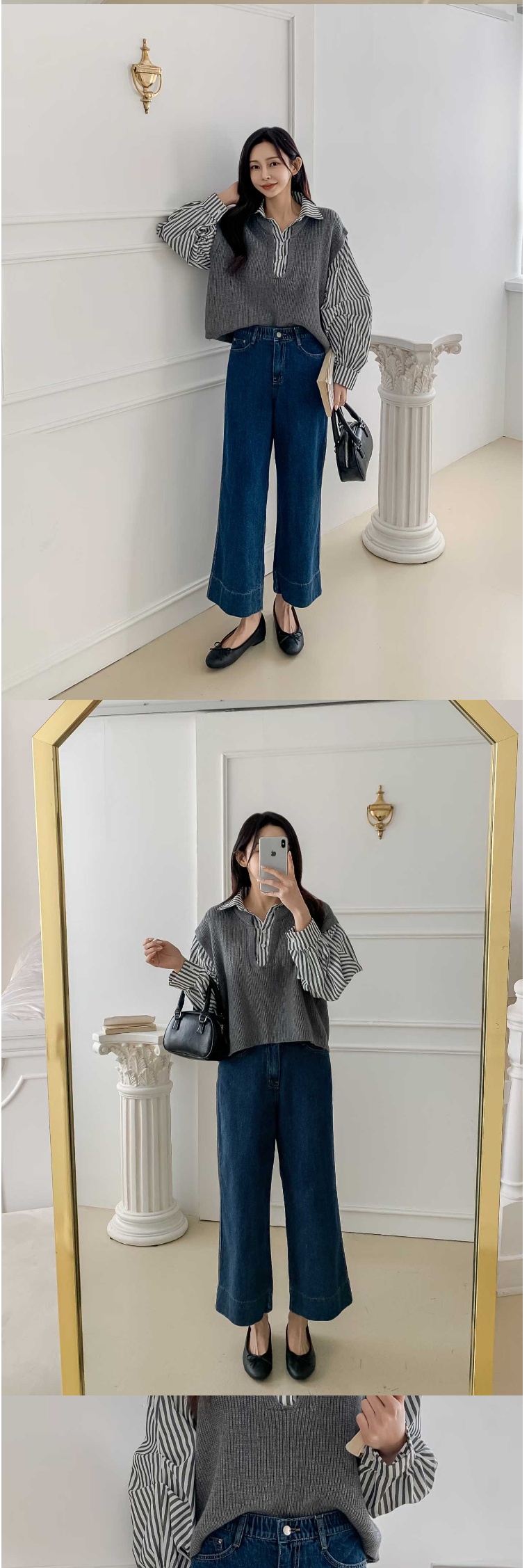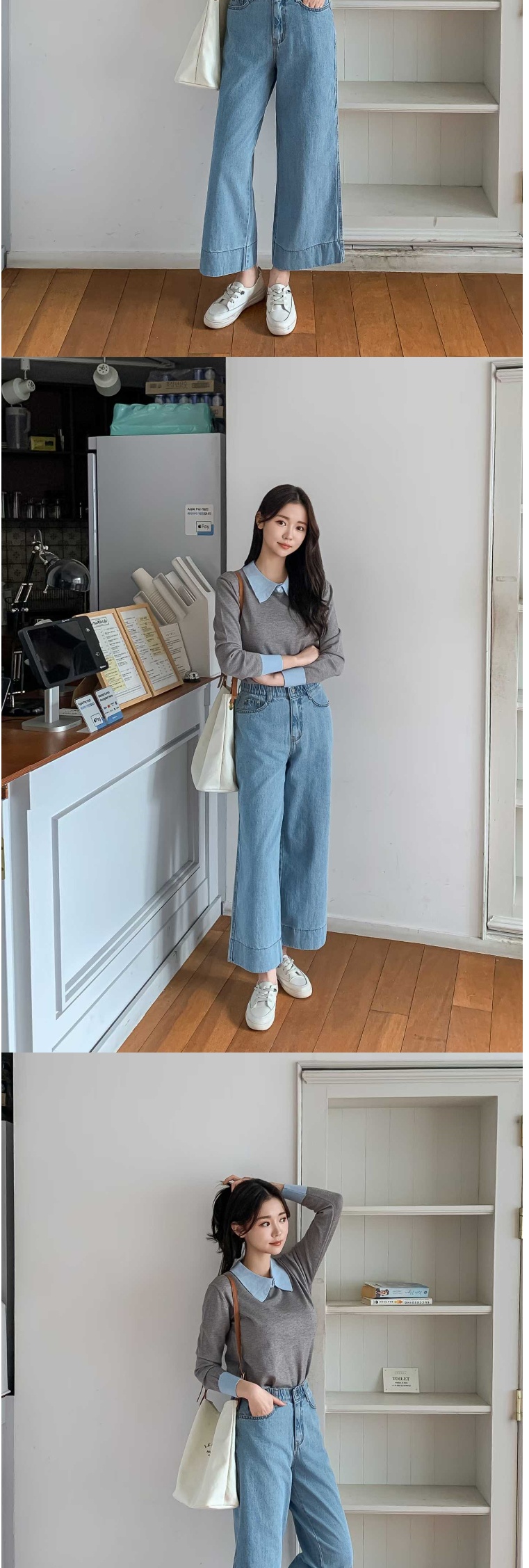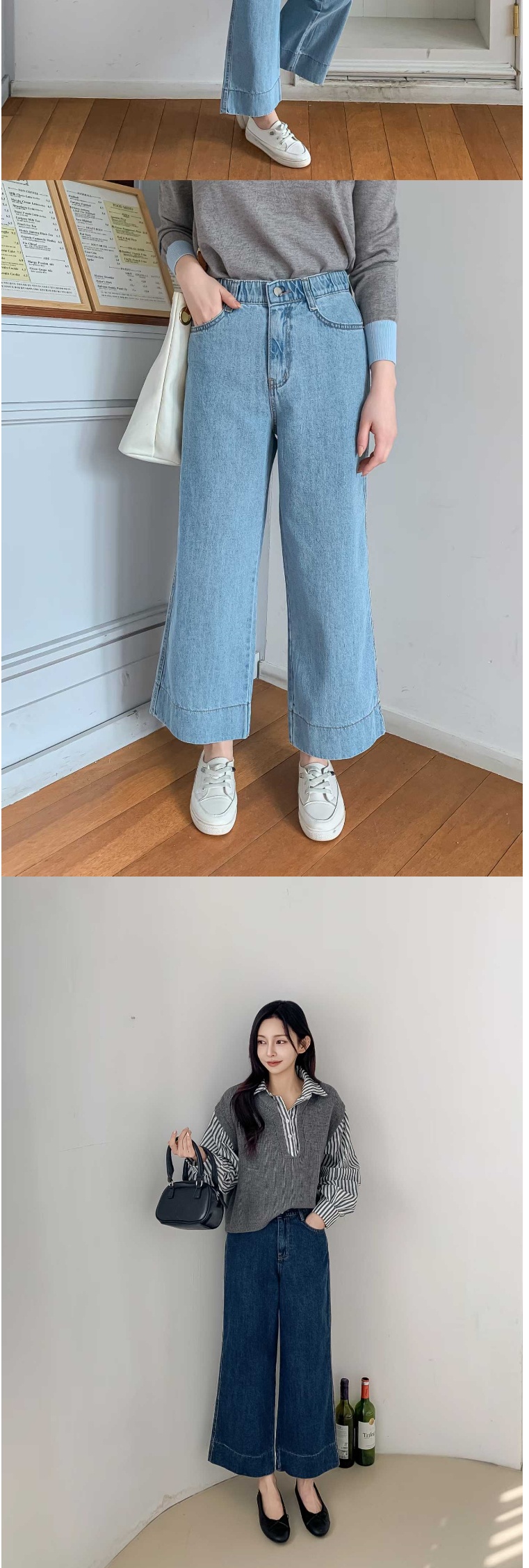 正韓牛仔褲 幸運寬管九分褲ETN6124-創翊韓都