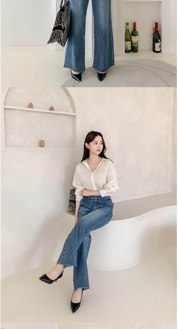 正韓牛仔褲 諾亞剪裁喇叭長褲ETN6127-創翊韓都
