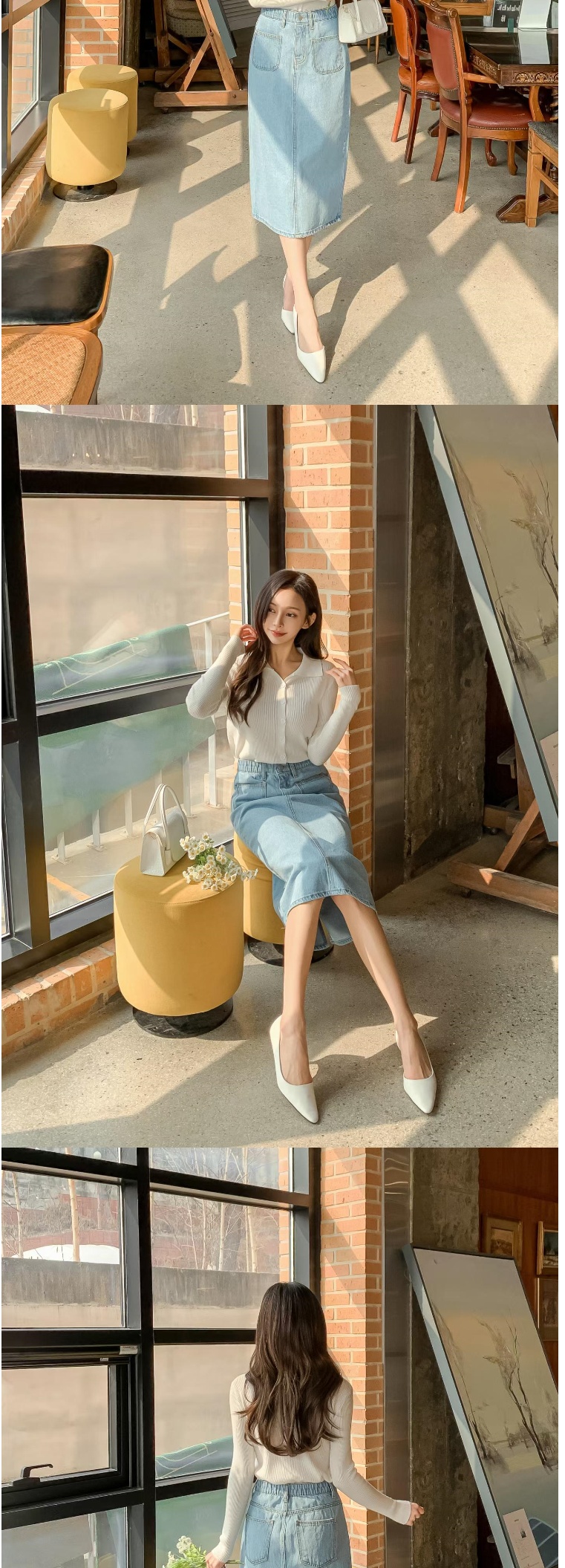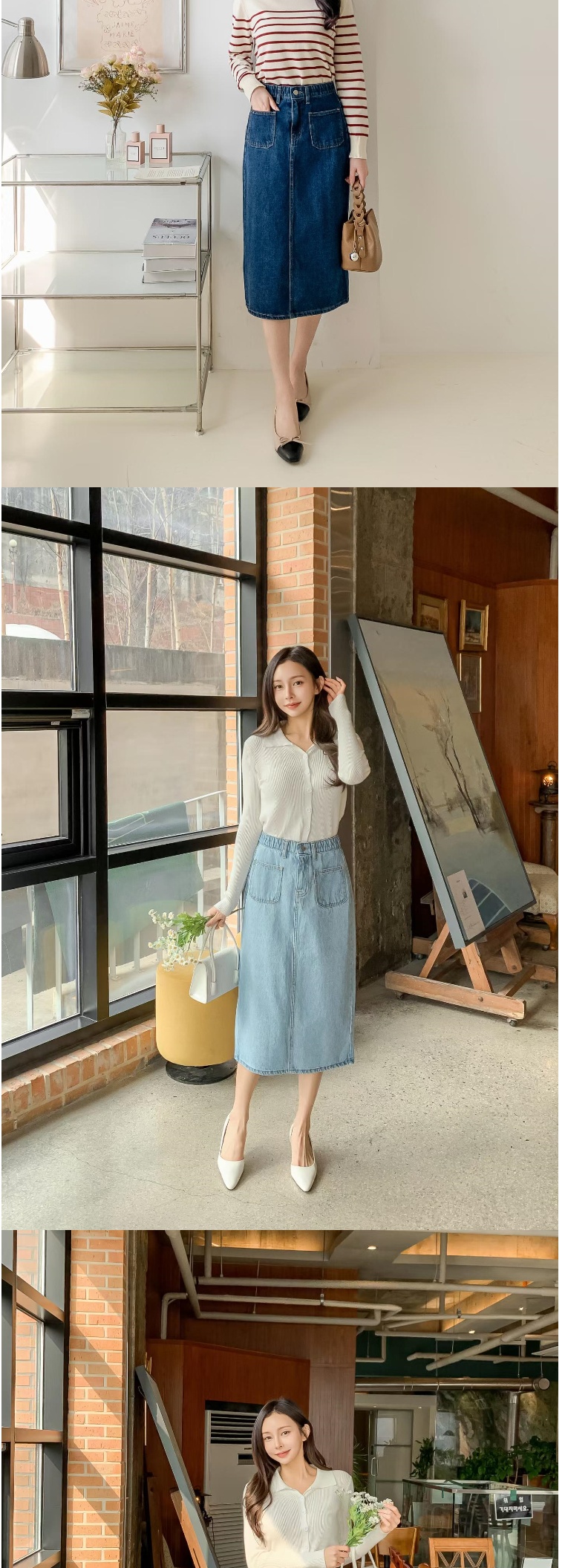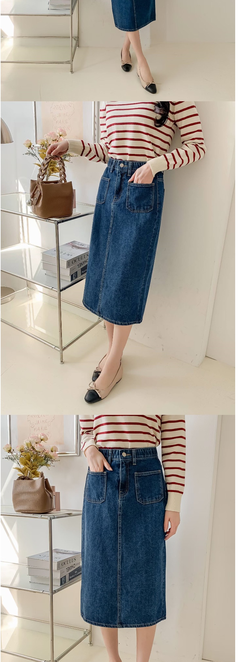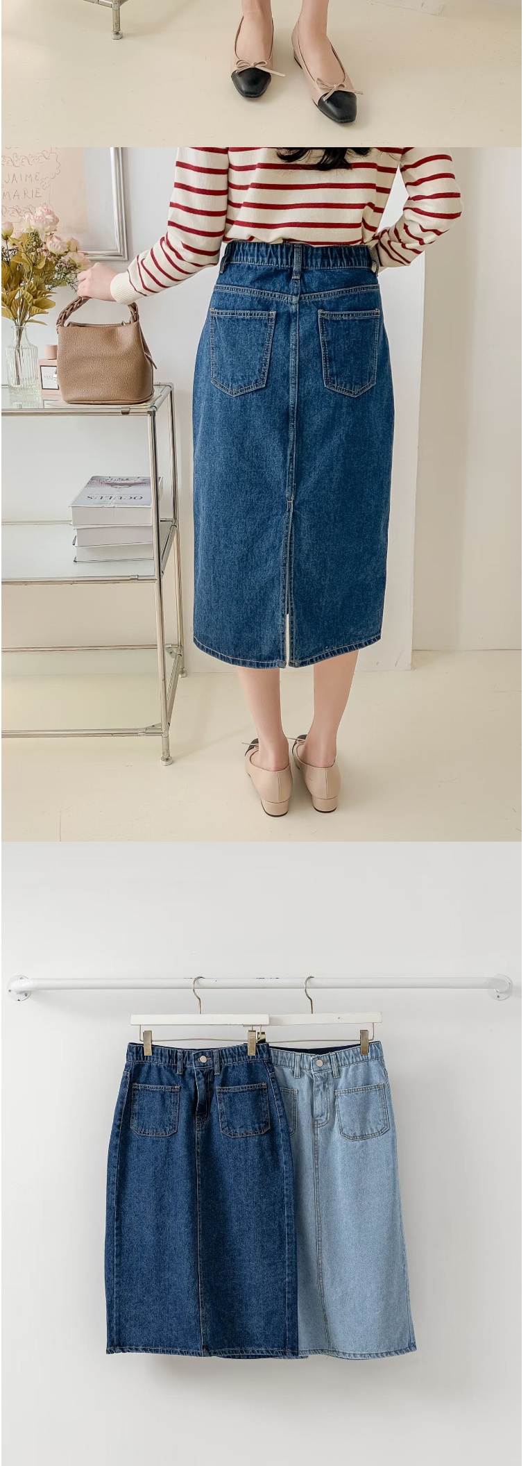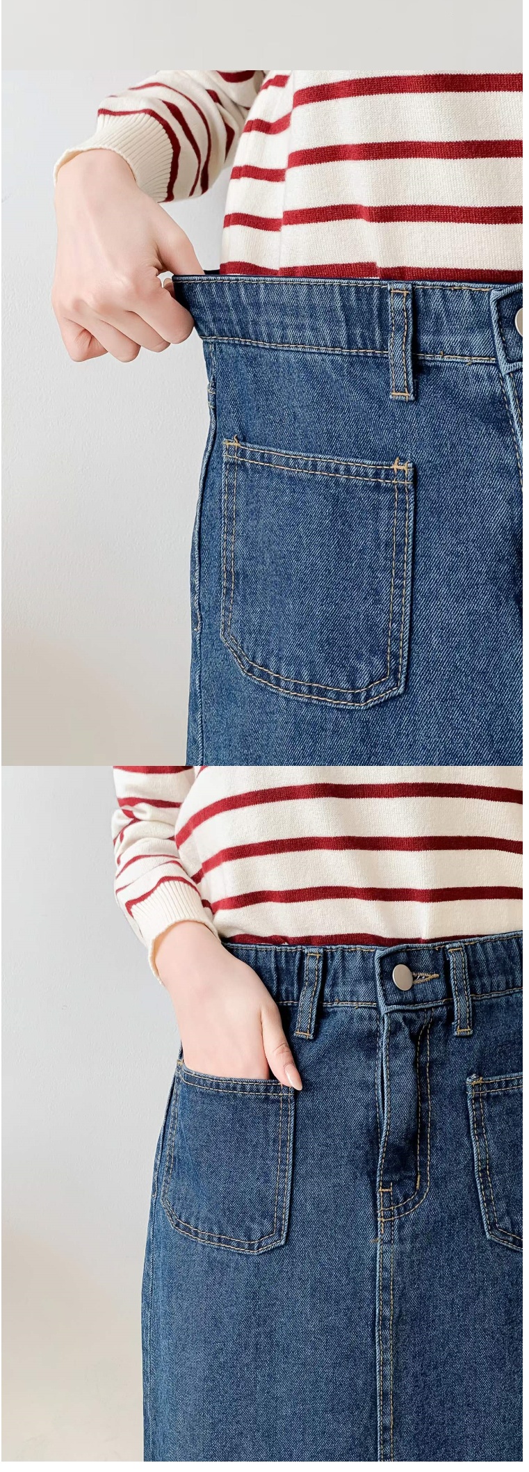 正韓長裙 前口袋後開叉牛仔長裙ETN6128-創翊韓都