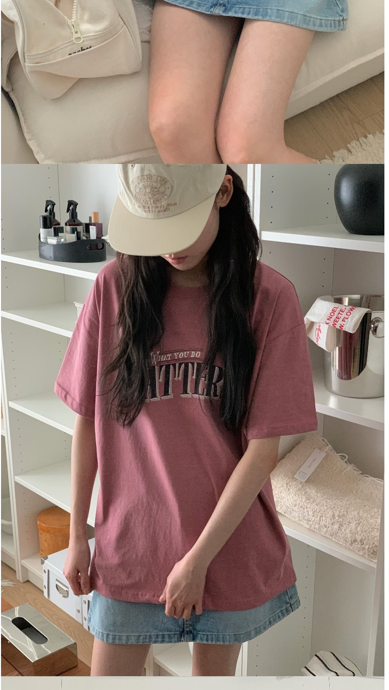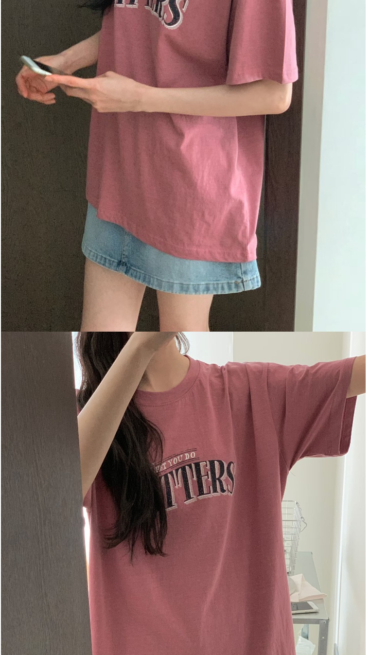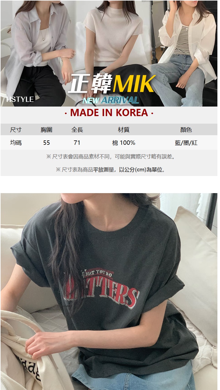 T恤 簡約字母寬鬆五分袖T恤ODD1006-創翊韓都現貨