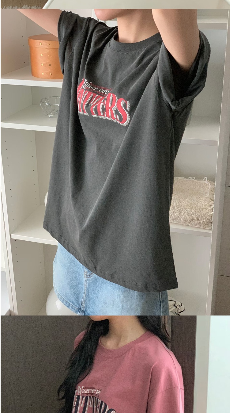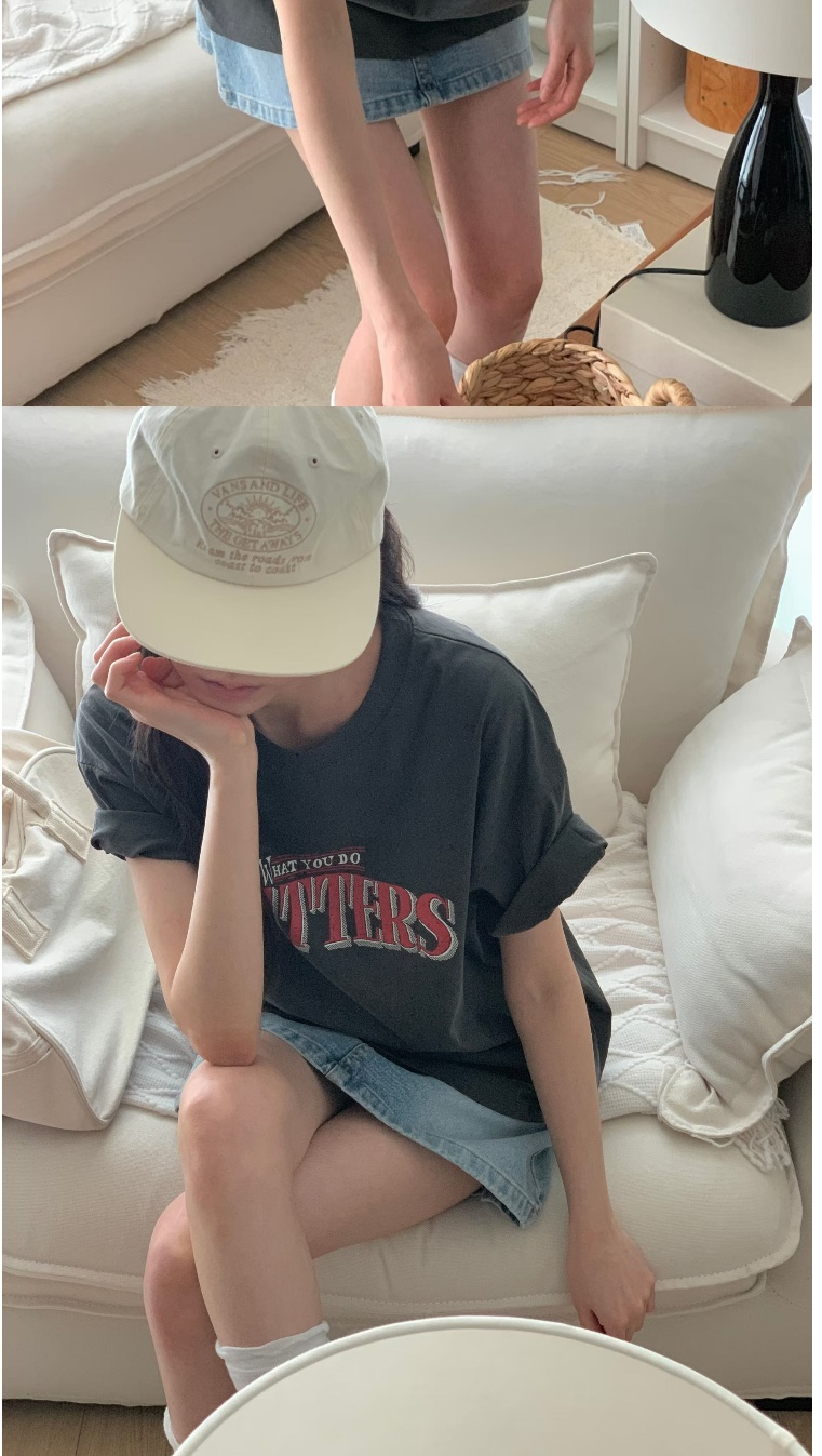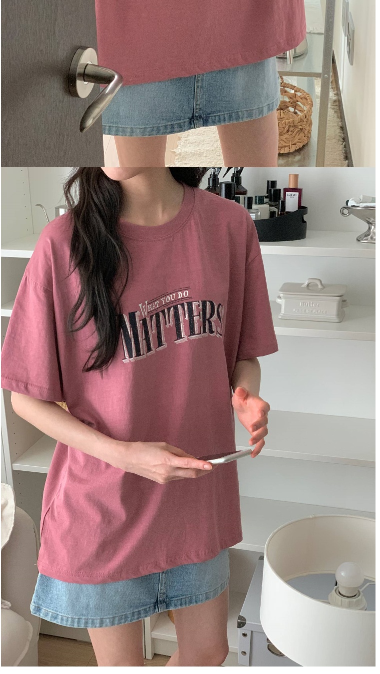 T恤 簡約字母寬鬆五分袖T恤ODD1006-創翊韓都現貨
