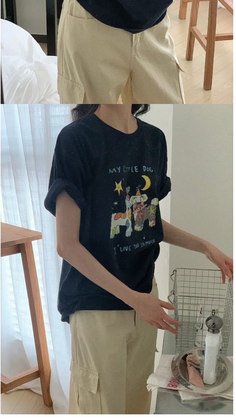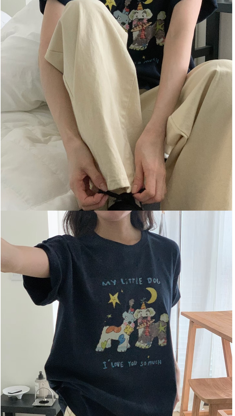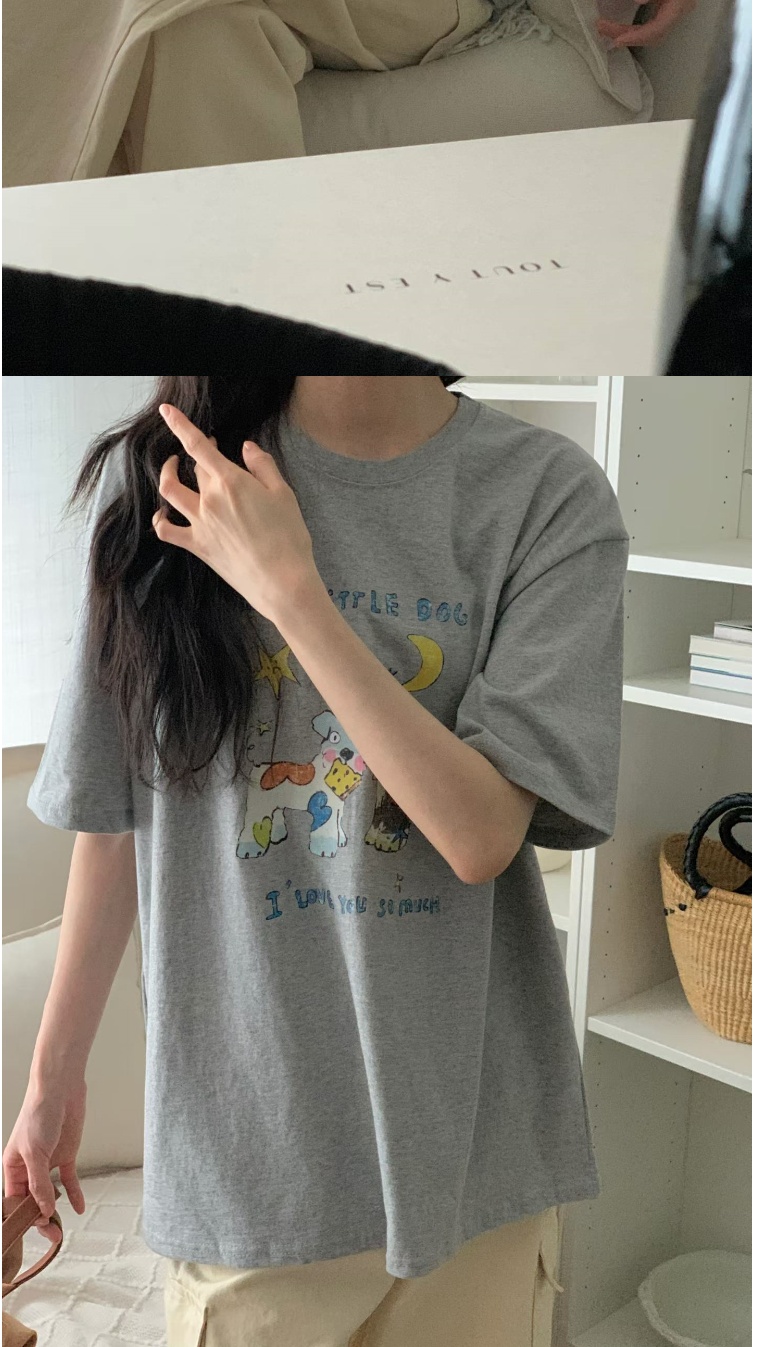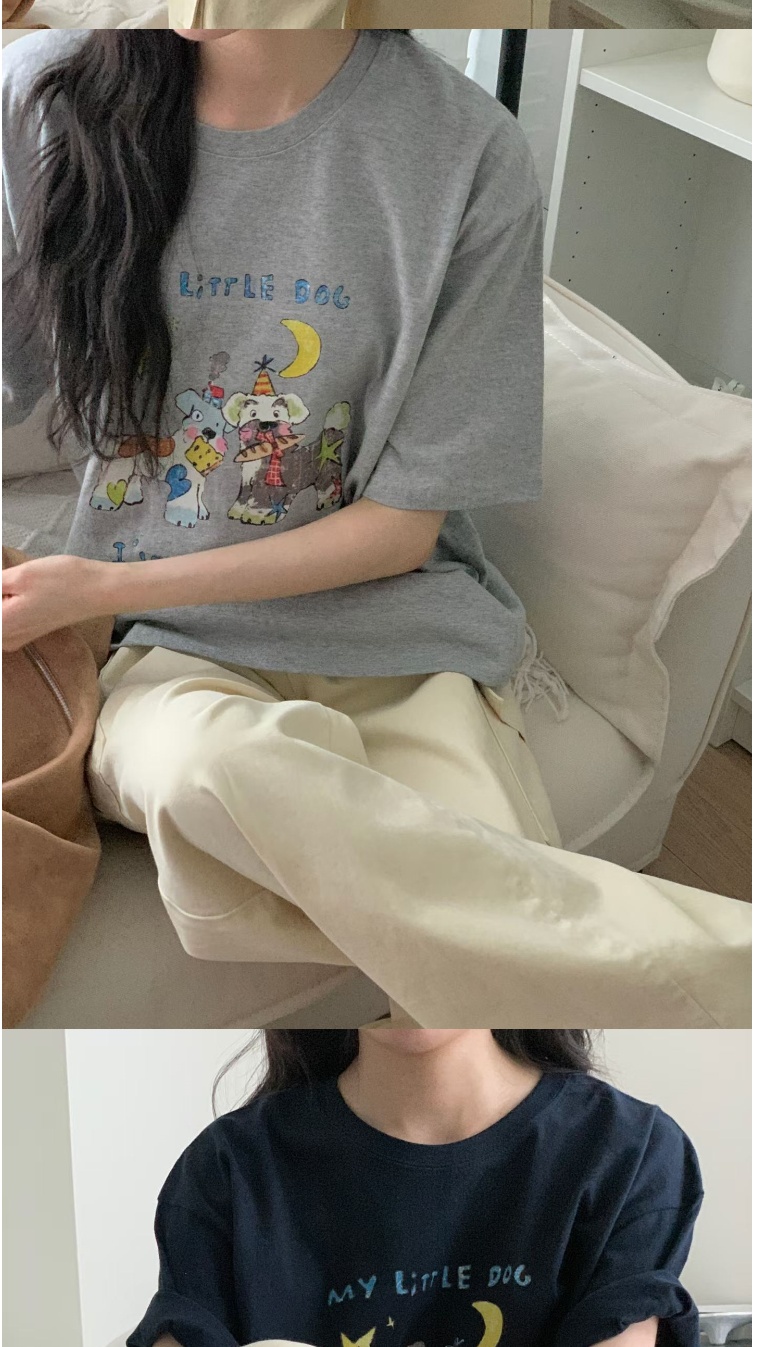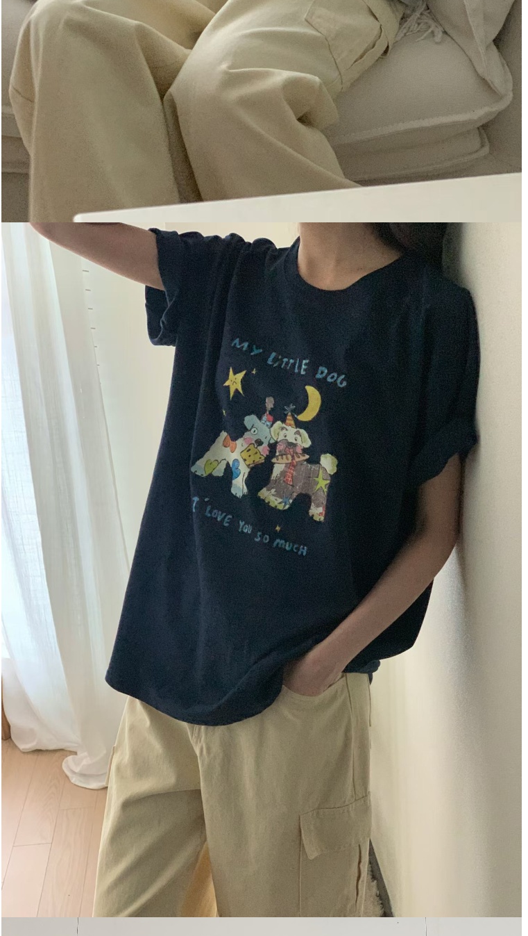 正韓女上衣 狗狗五分袖T恤FIE1185-創翊韓都