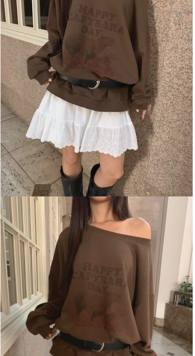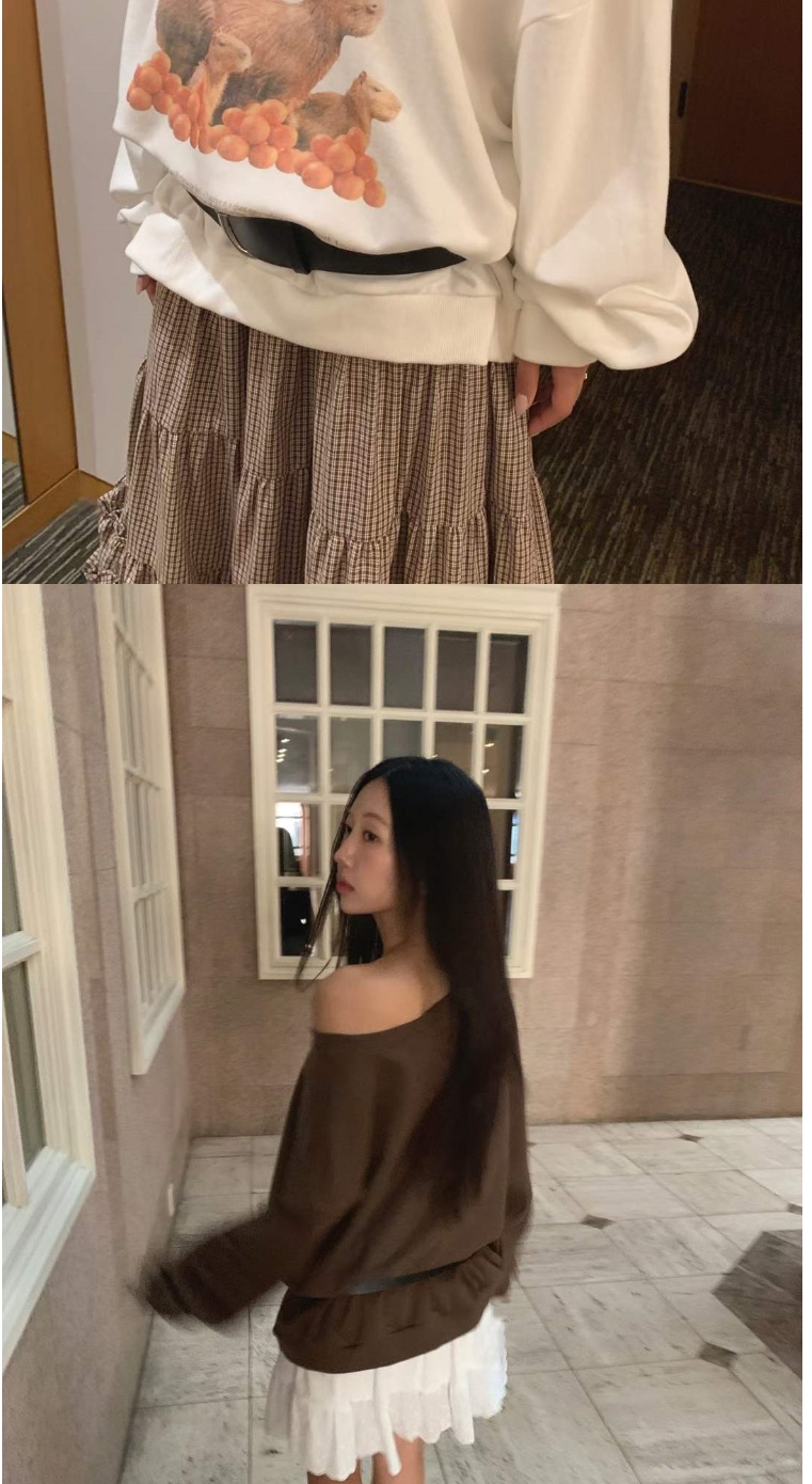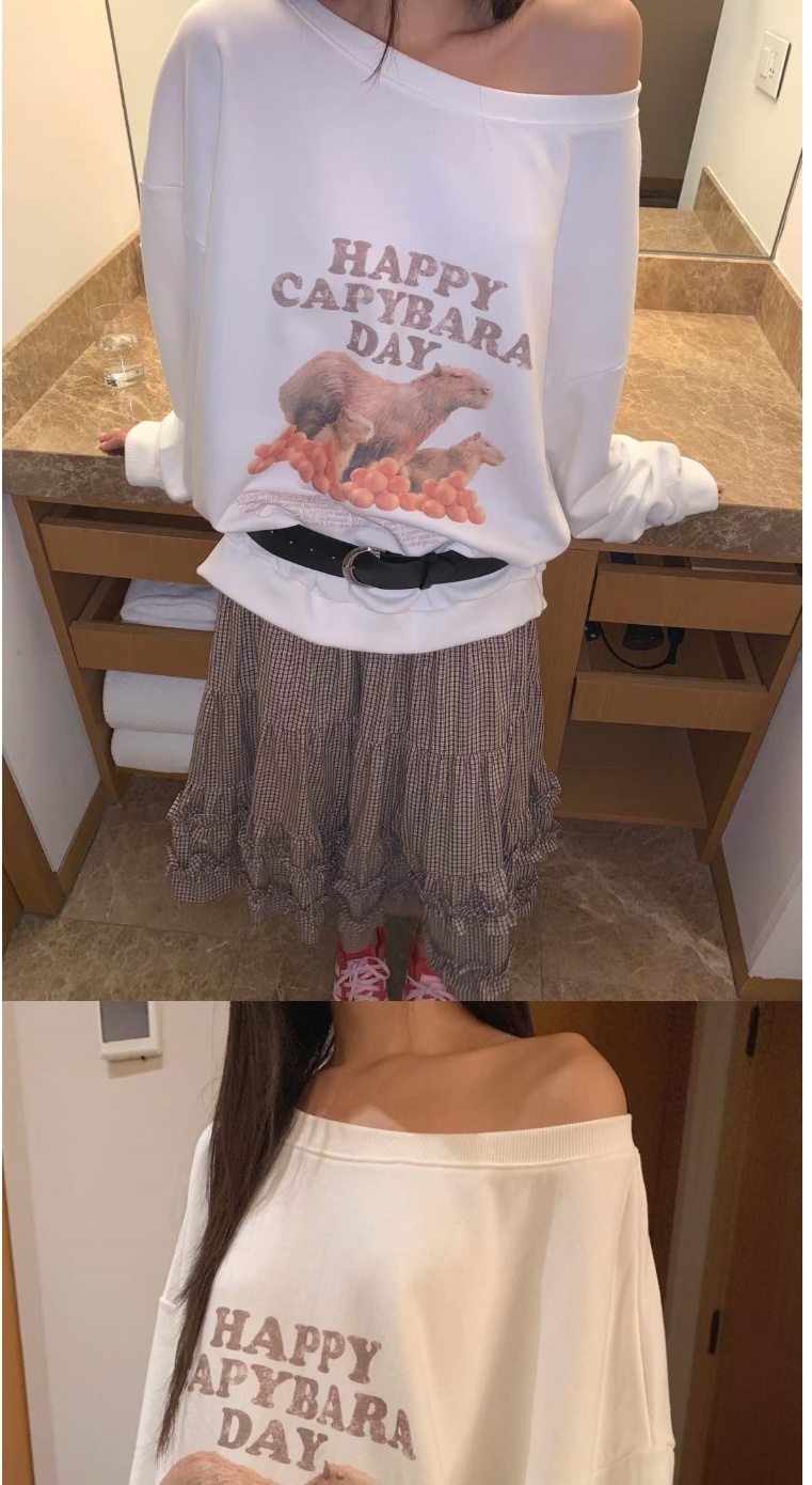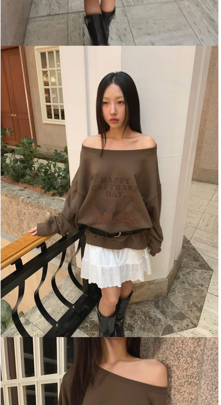 正韓女上衣 露肩刷毛長袖T恤FOM1108-創翊韓都