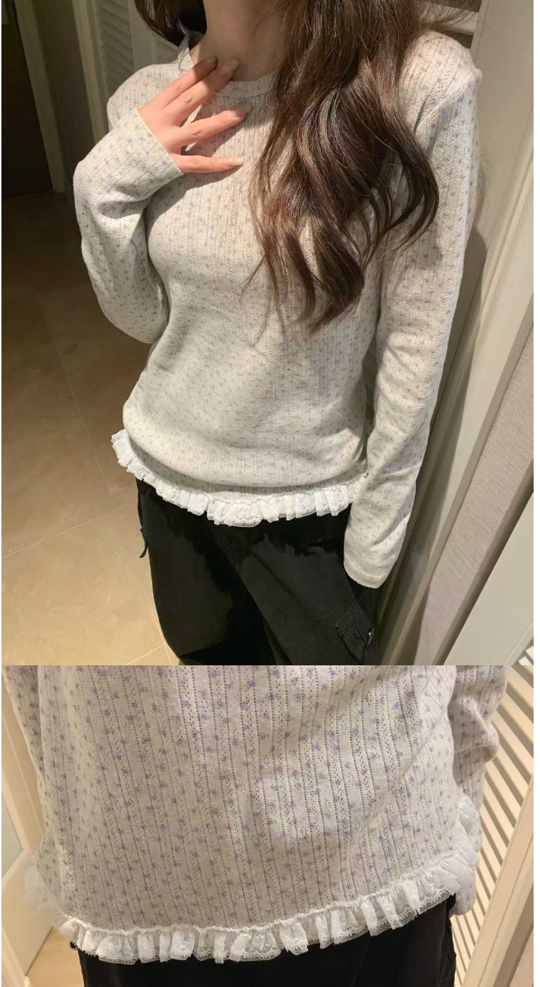 正韓女上衣 蕾絲花卉長袖T恤FOM1119-創翊韓都